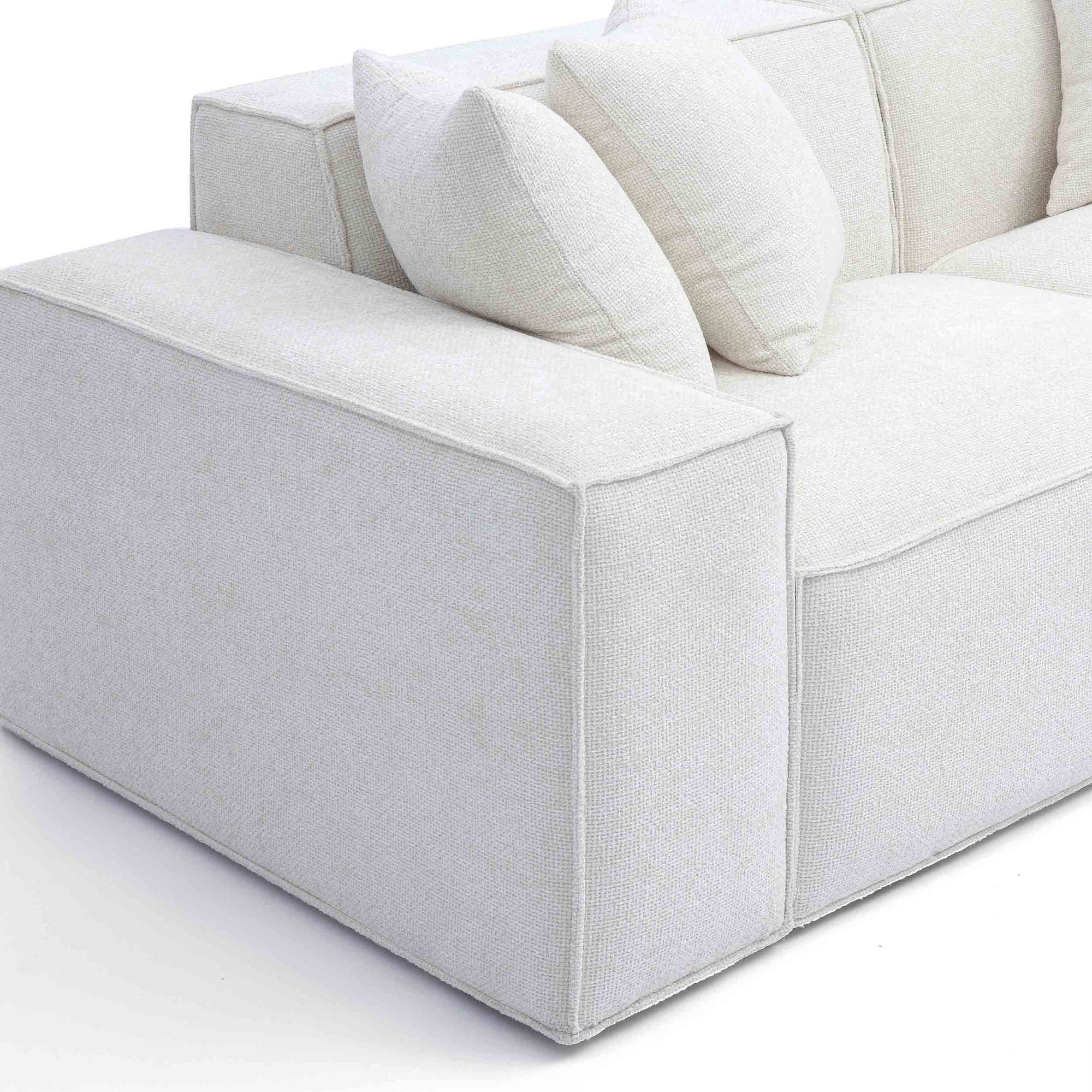 The Mindy Loveseat combines cozy texture and modular style as part of the Mindy Modular collection. Upholstered in soft chenille basketweave with thick stitching, it provides deep seating and plush cushions for comfort. Built-in alligator clips allow easy configuration, making it simple to pair with other pieces from the collection. This loveseat adds both style and functionality to any living space.