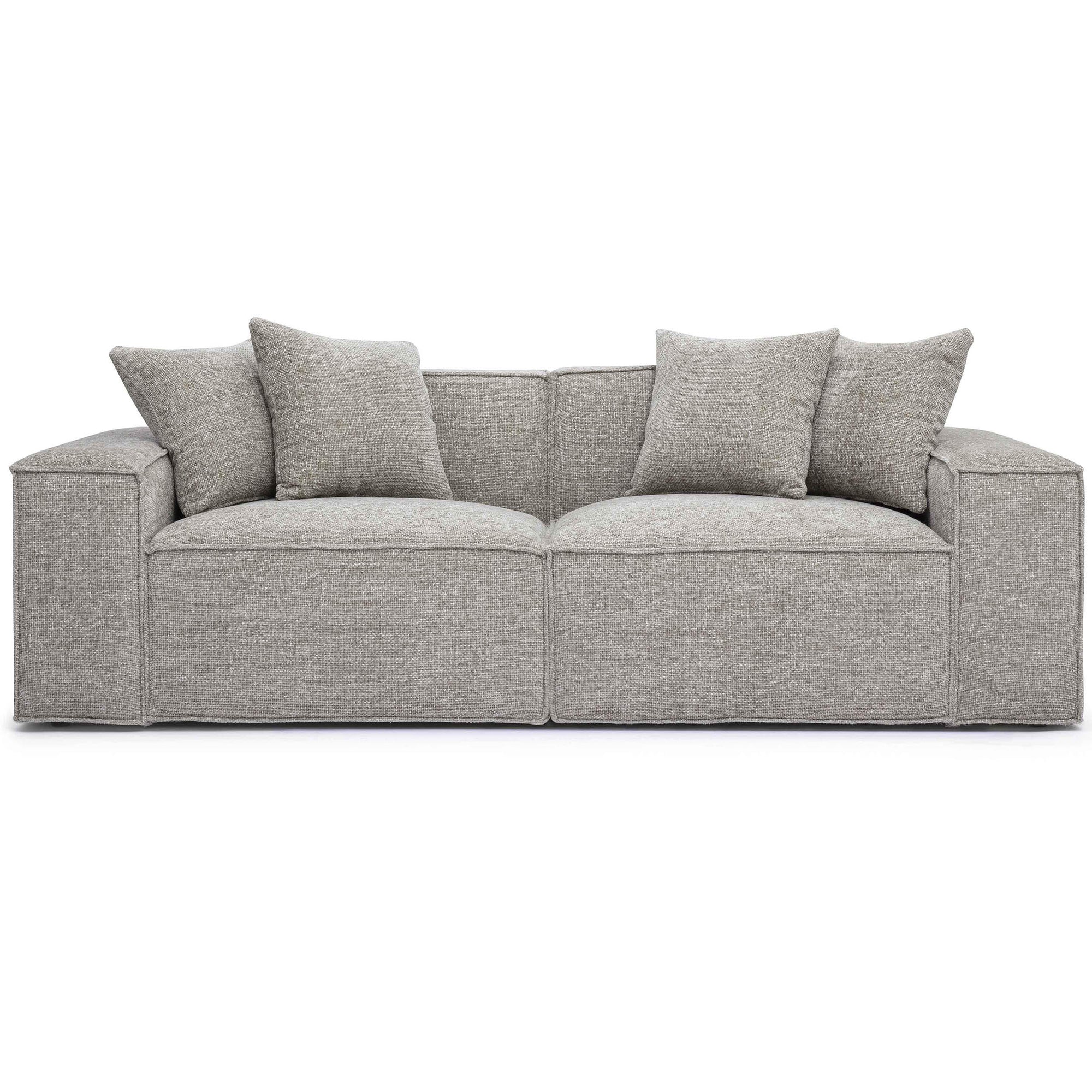 The Mindy Loveseat offers modular versatility and cozy texture as part of the Mindy Modular collection. Upholstered in soft chenille basketweave with thick stitching, it features deep seating and plush cushions for comfort. Built-in alligator clips allow easy configuration, making it simple to pair with other pieces from the collection. This loveseat adds both style and functionality to any living space.