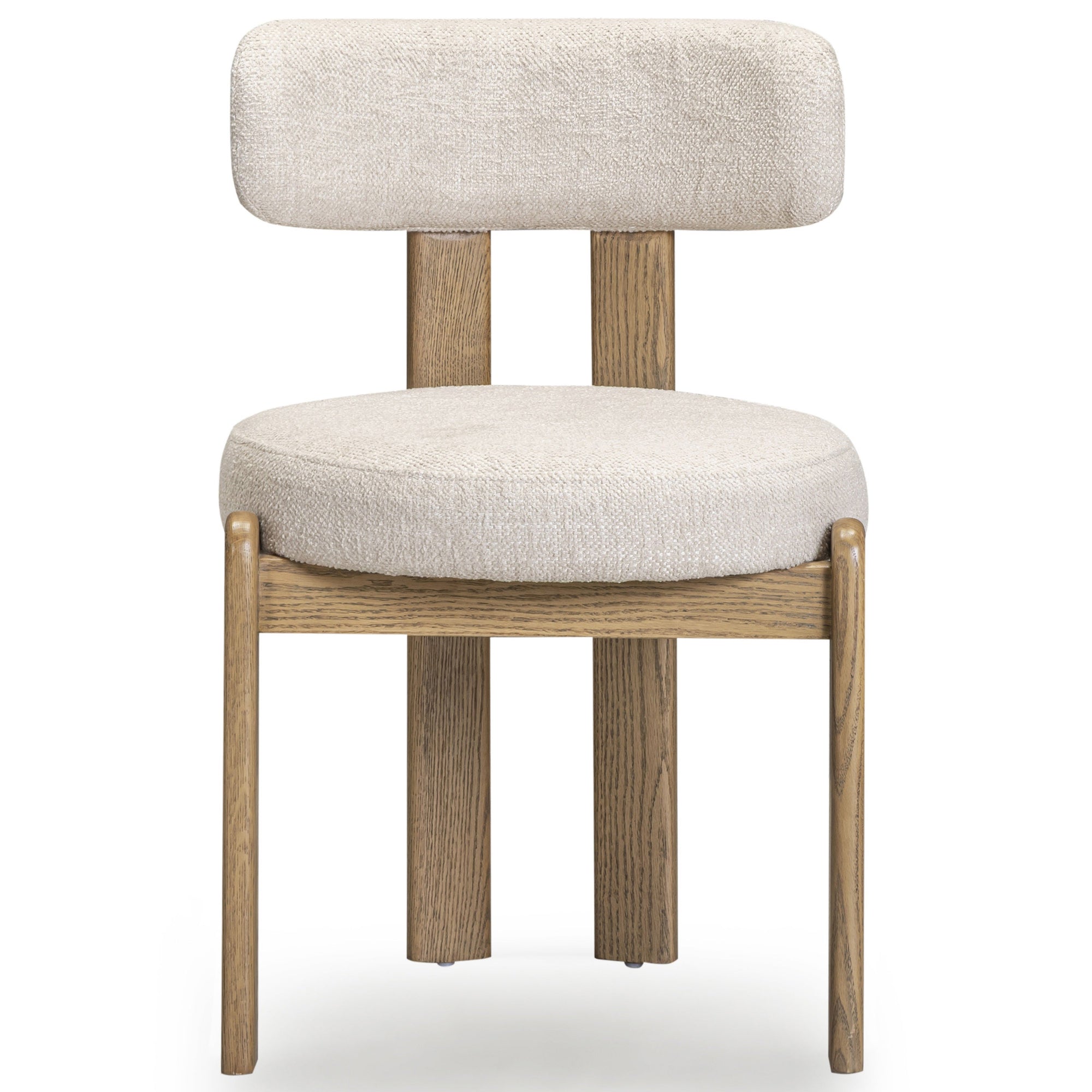The Odessa Dining Chair delivers retro flair with its Memphis-inspired curves and sleek silhouette. Expertly crafted with a solid oak wood frame, this chair blends durability with style. The seat is upholstered in wipeable, water-repellent performance fabric and filled with high-density foam, making it a comfortable and low-maintenance choice for busy dining spaces.
