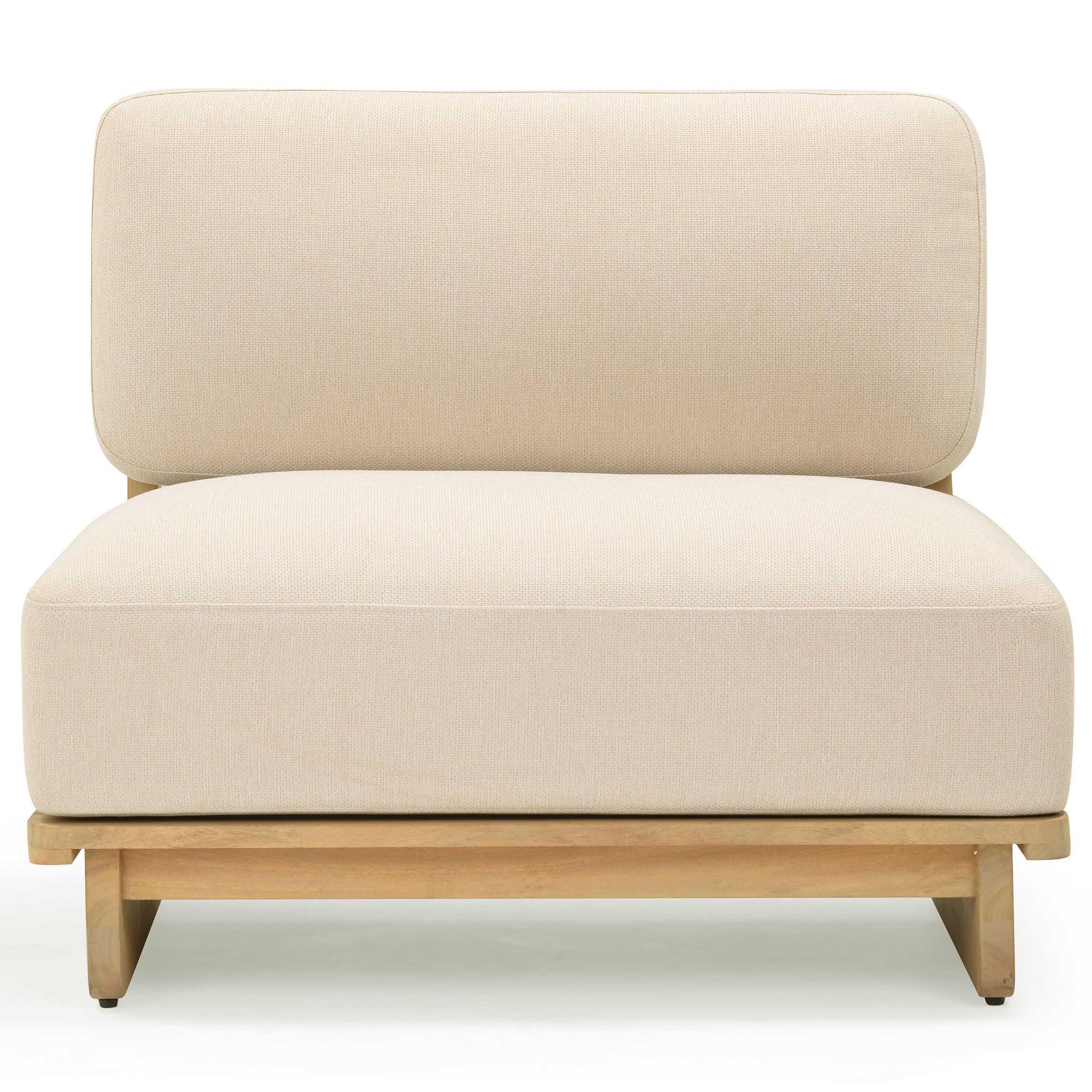 The Reavan Outdoor Lounge Chair combines effortless design with all-weather comfort. Featuring a teak-look eucalyptus frame, plush high-density foam cushions, and wind-resistant pillow straps, it provides lasting support and style for any patio or outdoor space. Perfect for pairing with the Reavan Lounge Sofa or enjoying individually, this chair elevates outdoor living.