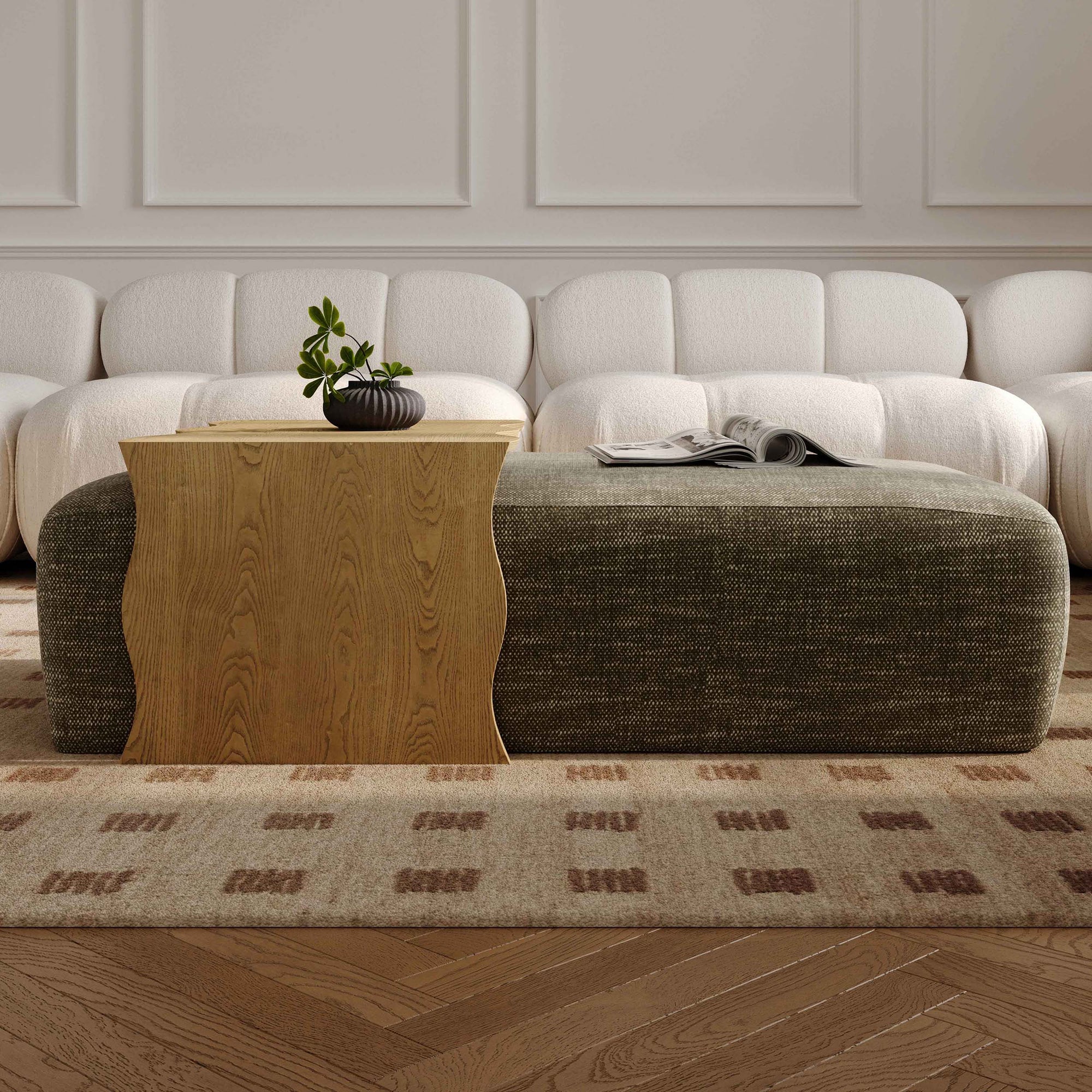The Spencer Ottoman with Bridge Table combines comfort and functionality in a single piece. This versatile set includes a spacious ottoman and a bridge table, perfect for living rooms or lounge areas. The ottoman is wrapped in soft, easy-care performance fabric and supported by a sturdy foam pad, offering a comfortable seating experience. Hidden casters make it easy to move around, while the included table provides a convenient surface for drinks, snacks, or decor. Designed to support up to 572 lbs, it seamlessly blends practicality with style.