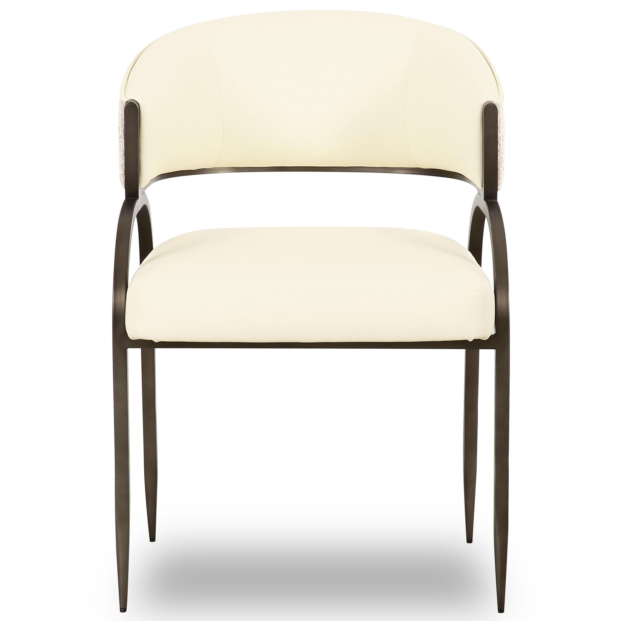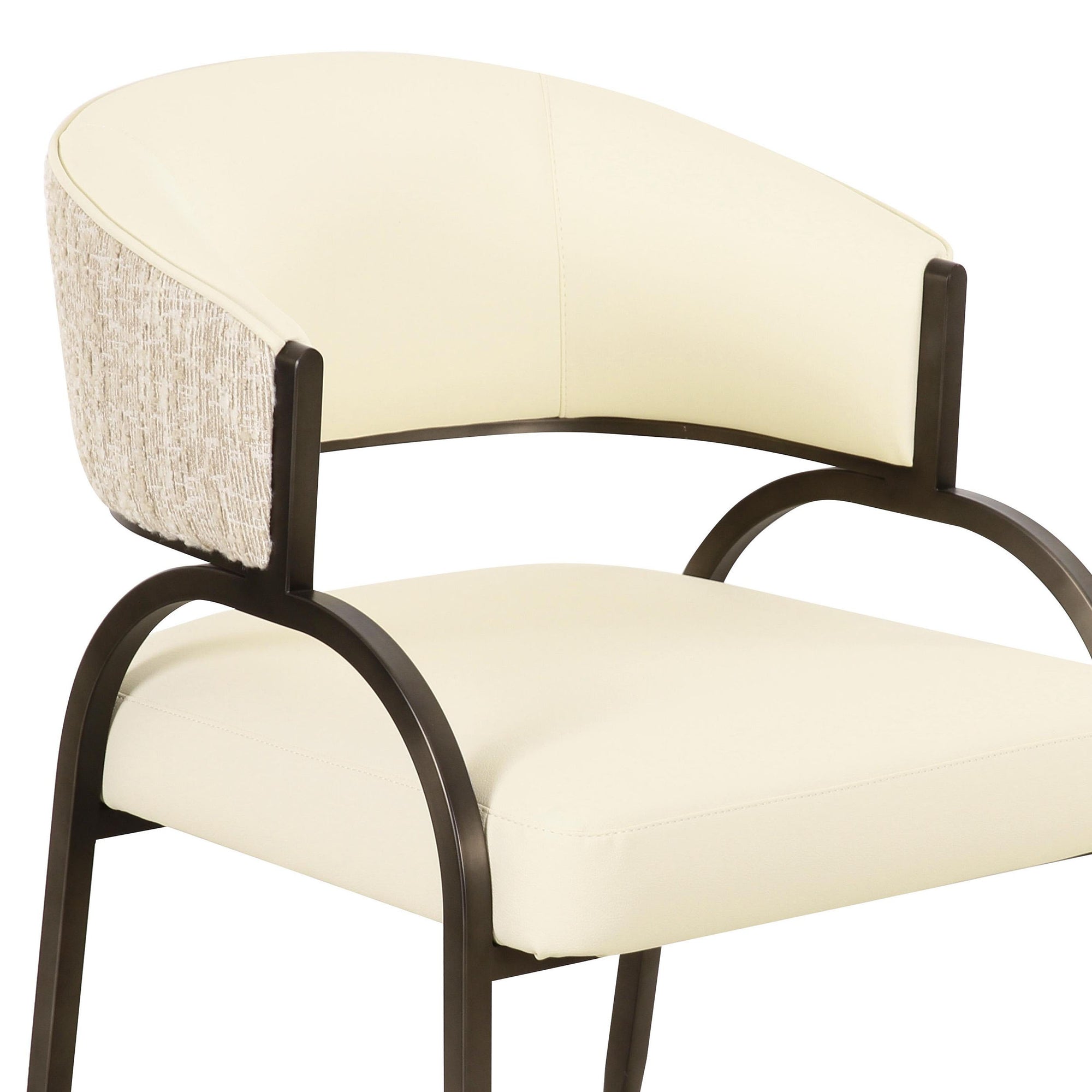 The Tatum 2-Tone Dining Chair pairs sleek black iron with easy-to-clean cream vegan leather and textured fabric for a stylish yet practical seating option. Designed for stress-free use, these dining chairs feature liquid-repellent performance upholstery, sculptural silhouettes, and durable construction, bringing modern contrast and elevated comfort to any dining space.
