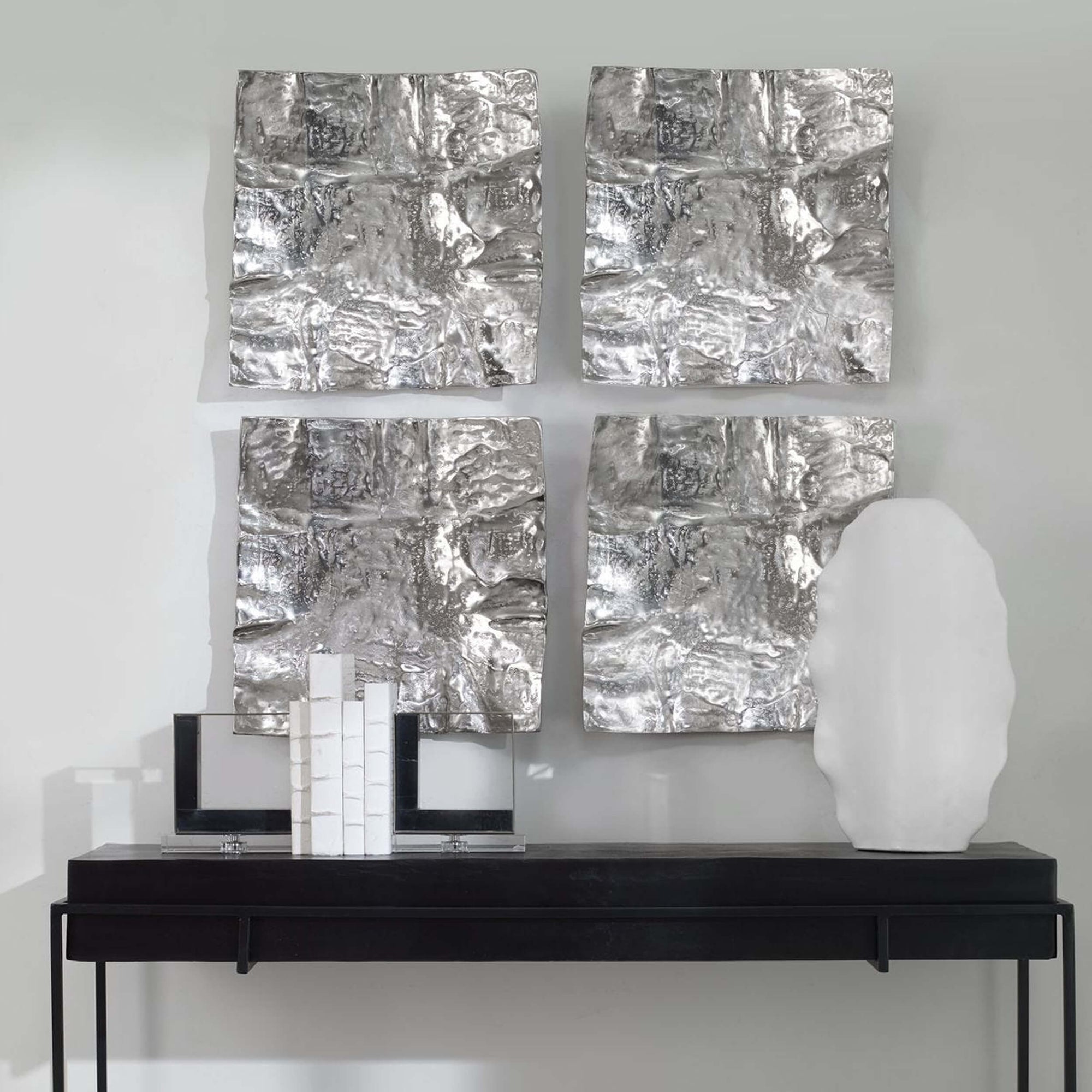 Handcrafted from cast aluminum, the Archive Metal Wall Decor brings sculptural artistry to your walls. Its heavily textured, organic form is finished in sleek nickel plating, creating subtle shine and depth that catches the light from every angle. Designed as a statement piece or part of a curated arrangement, this versatile wall accent features a circular hanger on the back, allowing for countless hanging options and creative configurations. Whether styled solo or layered with other pieces, it adds modern character and tactile interest to any room, from living spaces to entryways. Durable craftsmanship and an expressive silhouette make this wall decor a timeless accent with gallery-worthy appeal.