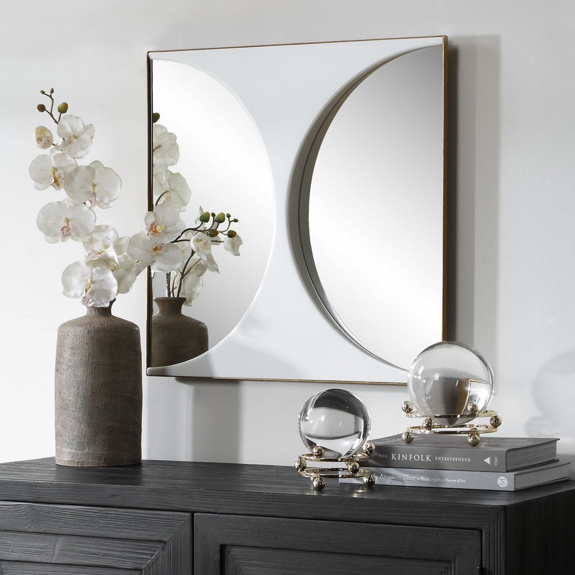 The New Moon Mirrored Wall Decor serves as a modern statement piece that fuses artistry with reflection. Featuring a sculptural geometric design layered over a reflective background, this square fixture adds depth and visual interest to any wall. With the versatility to be hung either horizontally or vertically, it creates a unique focal point in entryways, living rooms, or hallways.