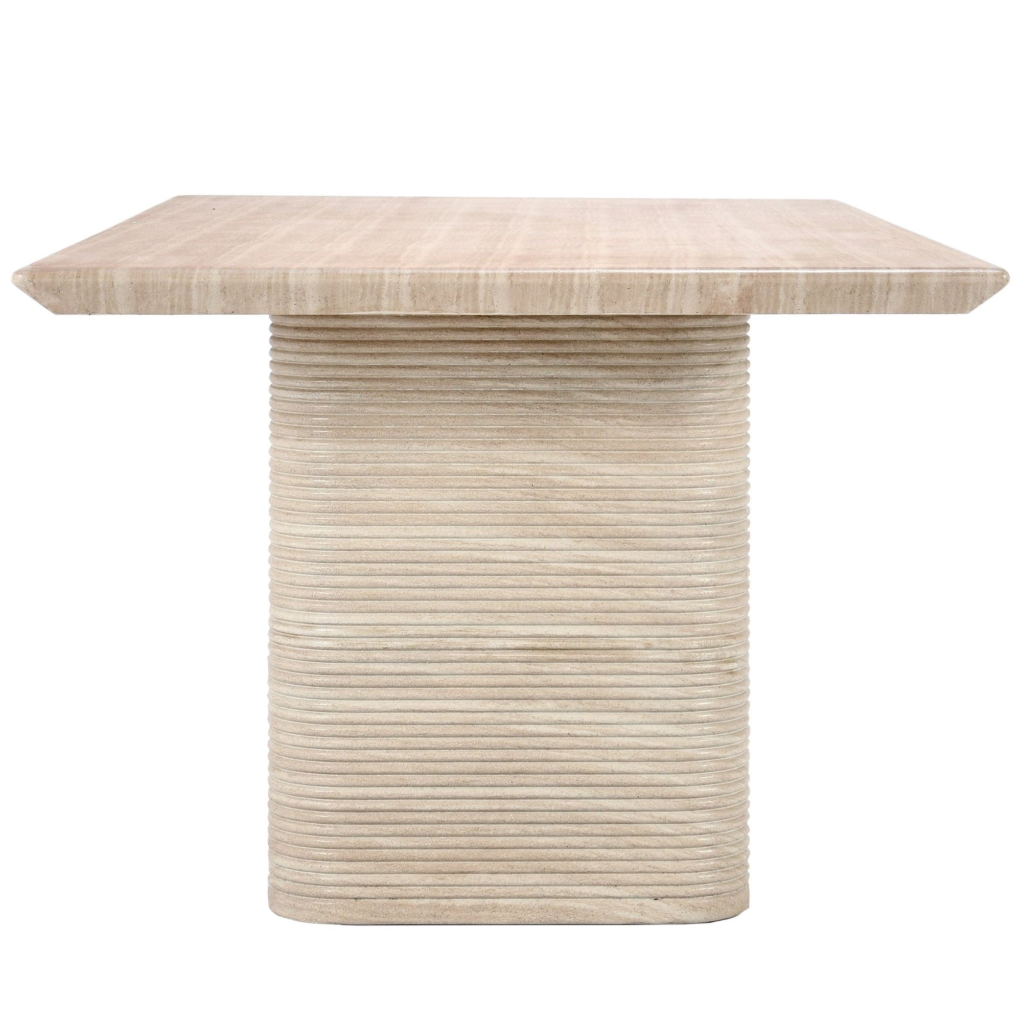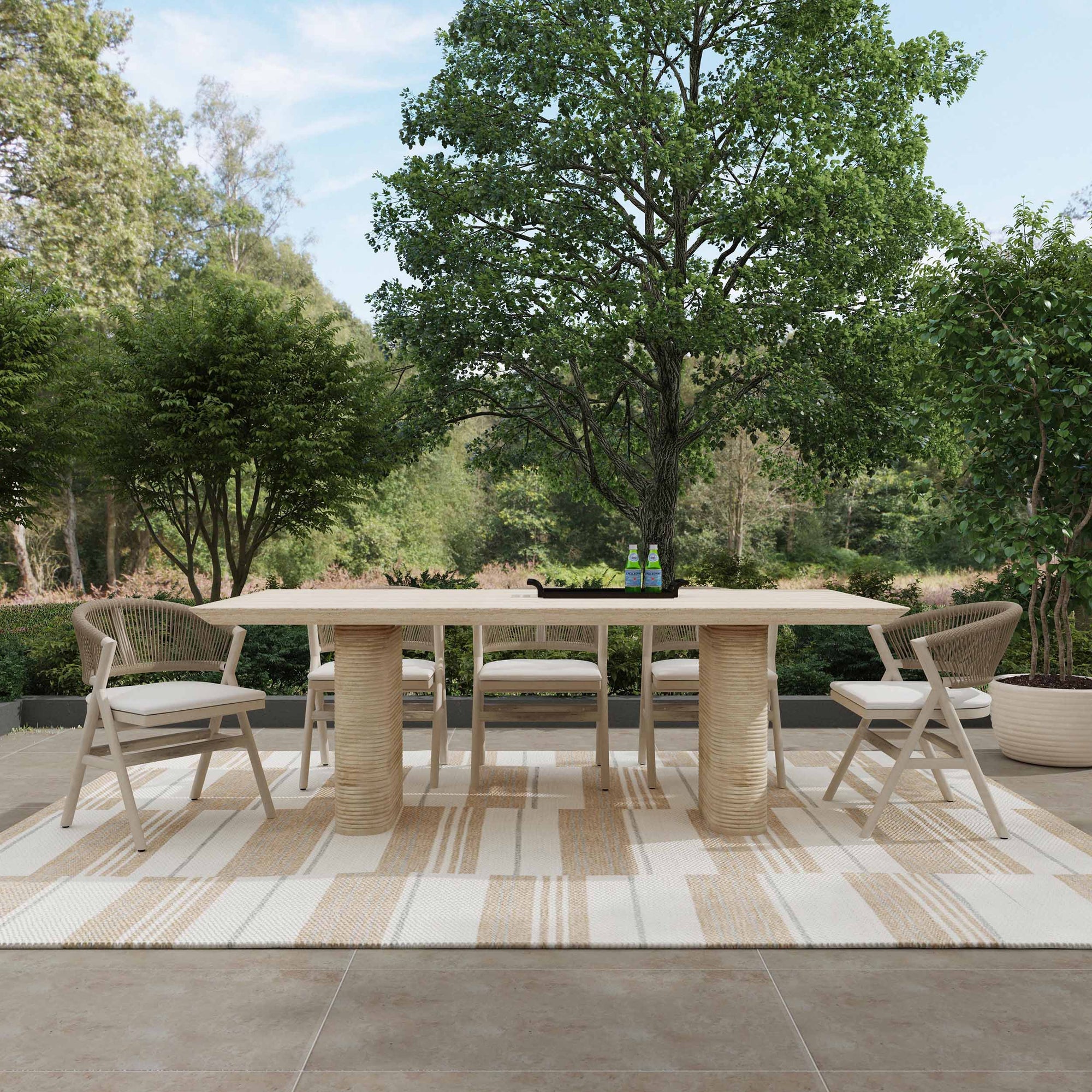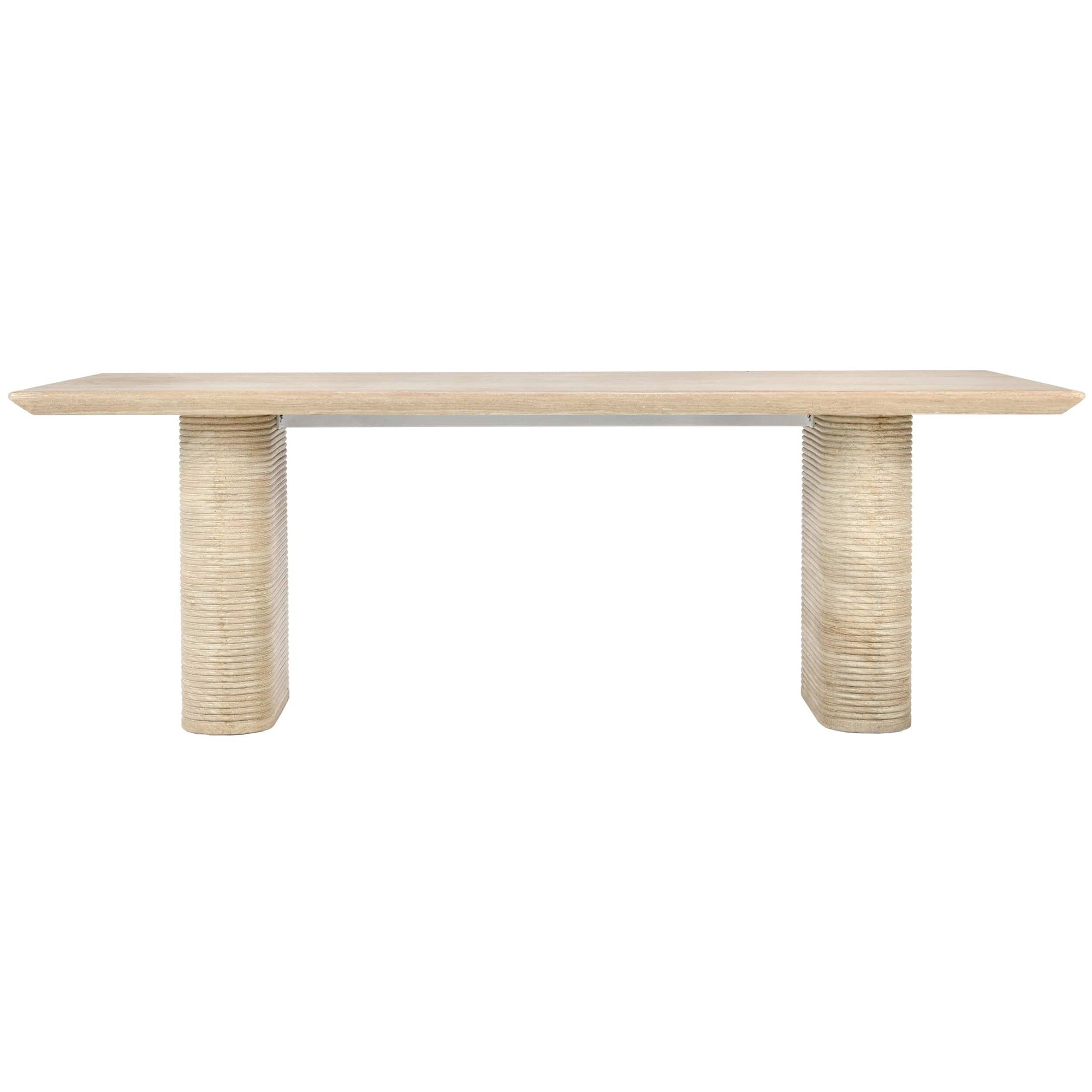 The Aiden Outdoor Rectangular Dining Table is where modern artistry meets lasting strength. Sculpted from glass fiber reinforced concrete, its sleek lines and textured base create a striking silhouette. Featuring two oversized, rounded pedestal legs with a unique horizontal ribbed texture, this piece is topped with a smooth surface to turn every meal into a moment of beauty.