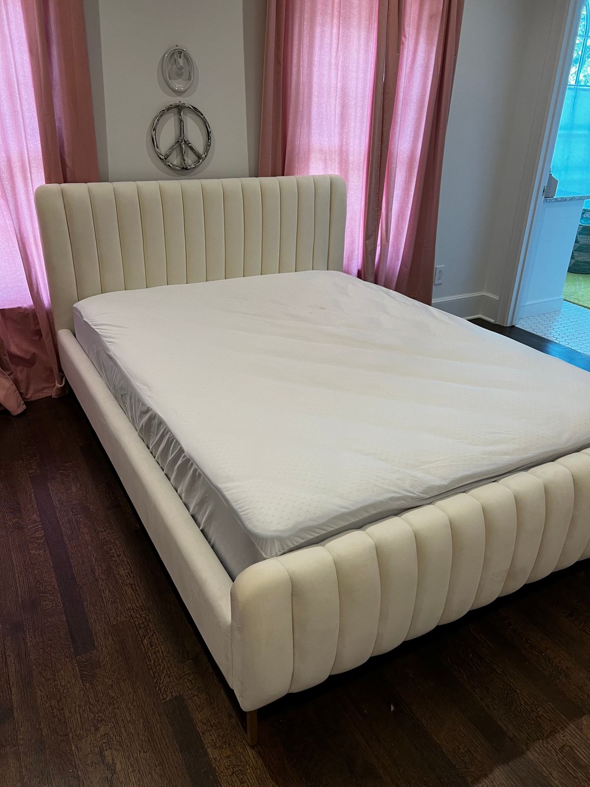 My teen daughter chose this stylish frame for her big girl bedroom. It’s a lovely bed with comfortable cushioning and elegant legs. She loves it and I think she will for the next 7 years til she heads to college.