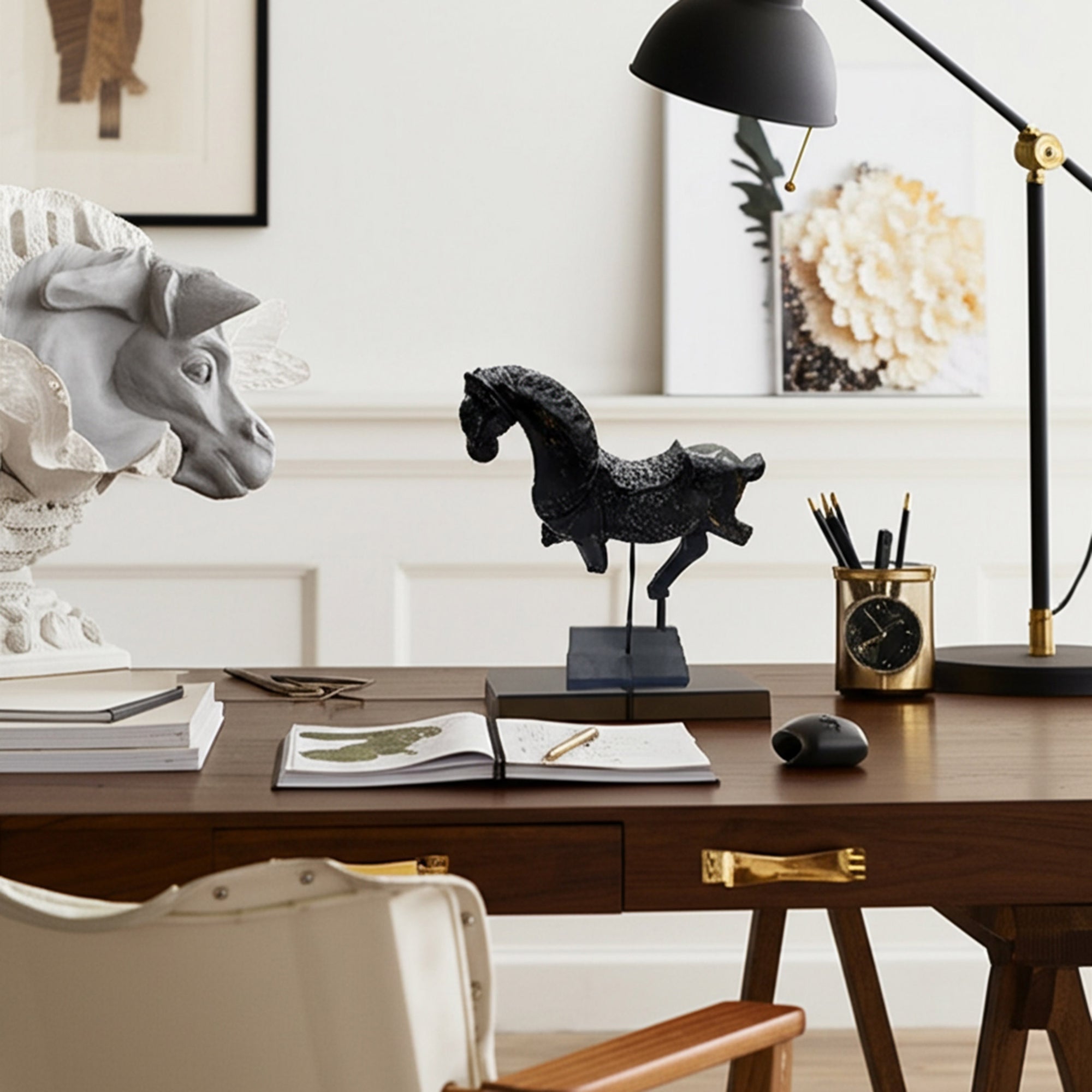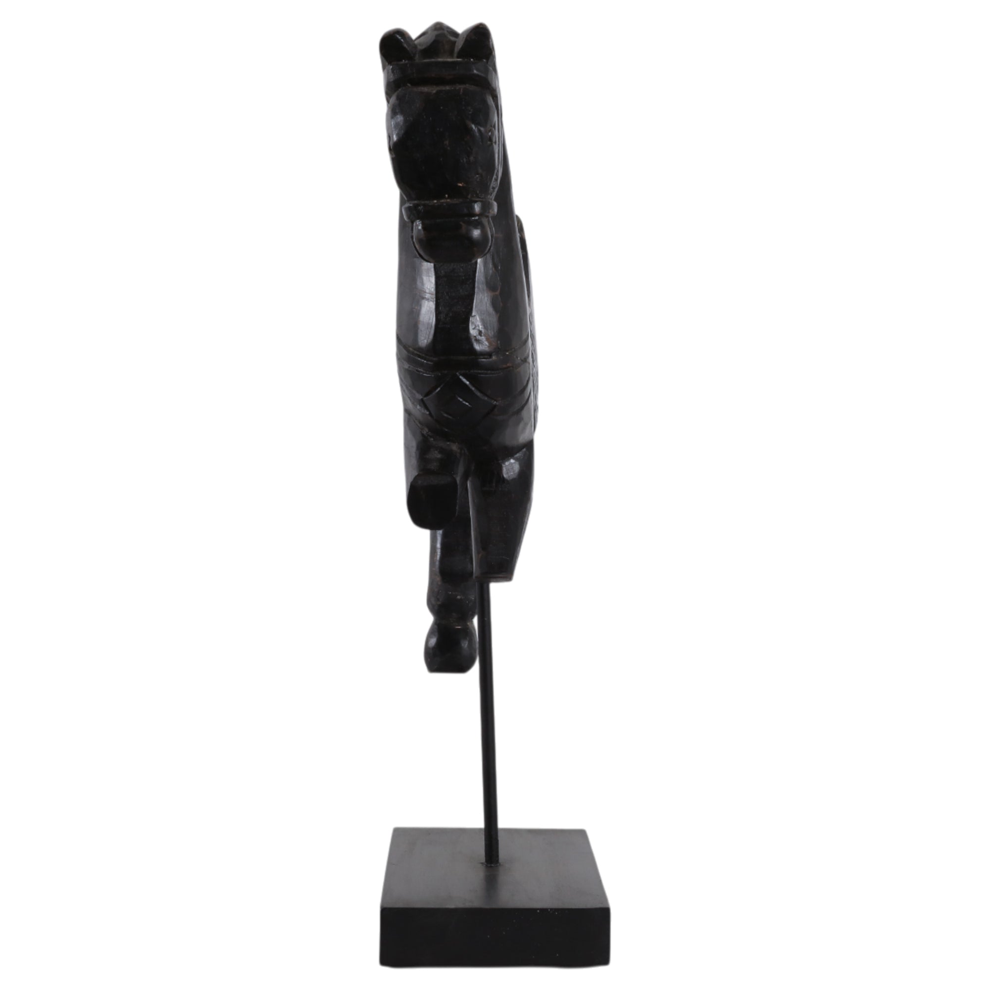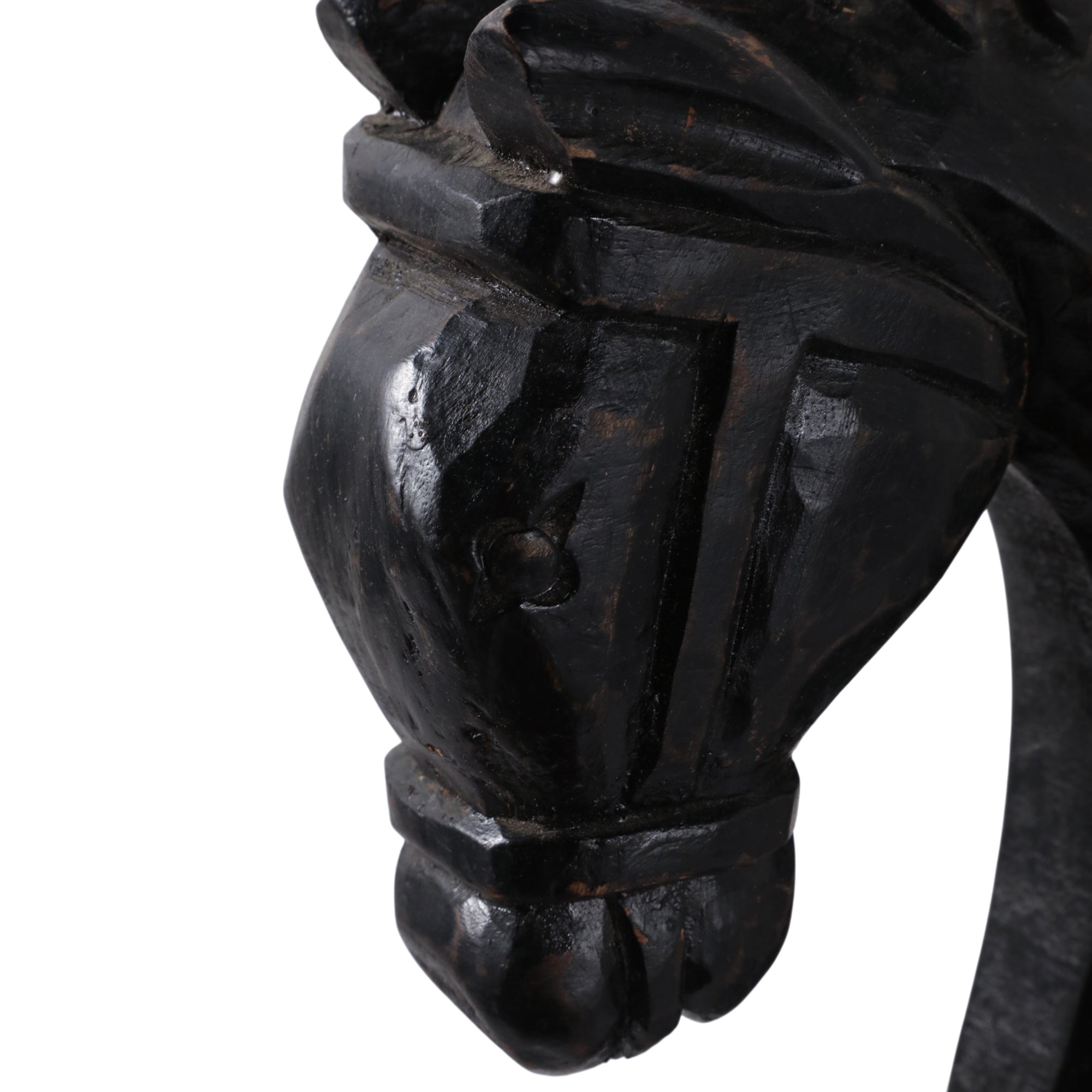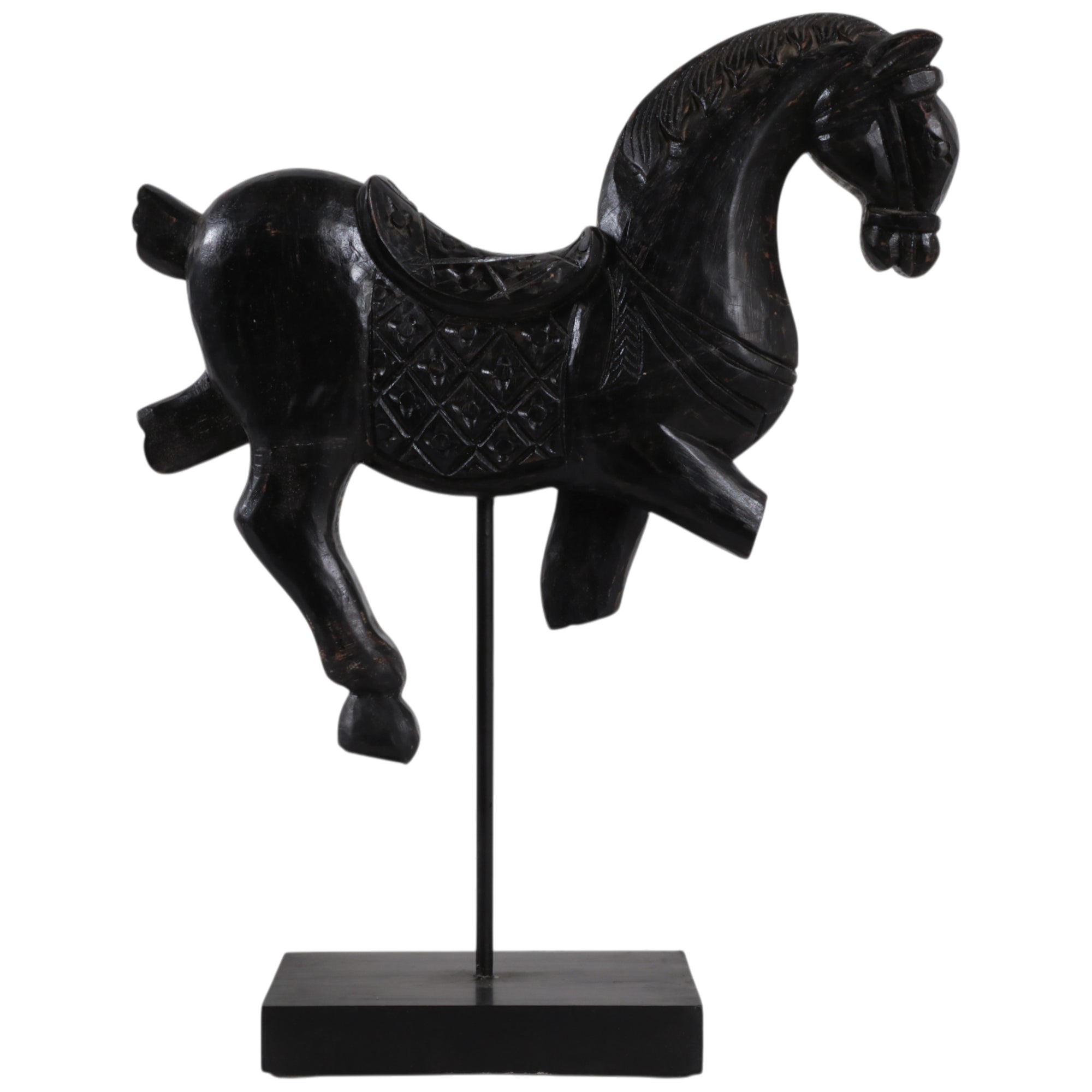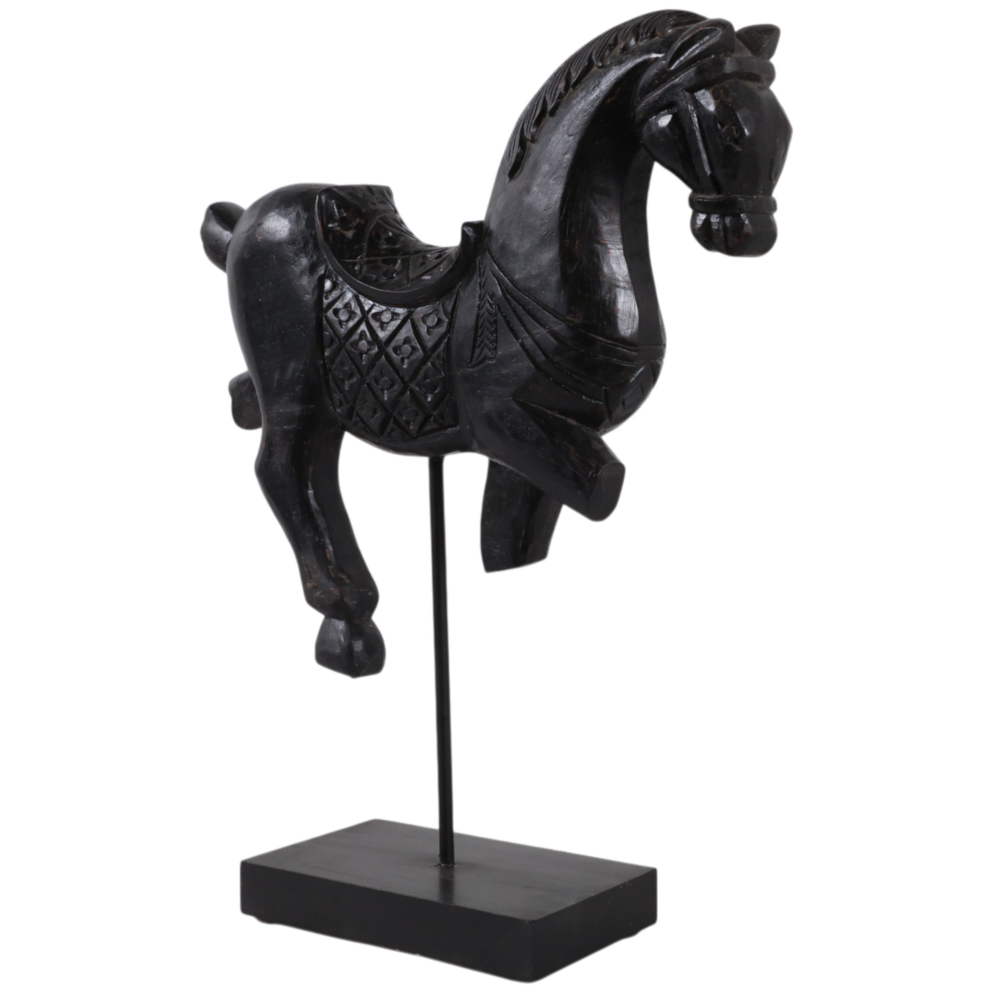 Add rustic sophistication to your space with the Antiqued Horse on Stand. Hand-carved from durable mango wood, this striking sculpture showcases exceptional artisan craftsmanship, capturing the strength and grace of the horse in exquisite detail. Supported by a sleek iron base, it combines sturdiness with refined design, making it a bold statement piece for any room. Ideal for display on shelves, consoles, or mantels, this sculpture brings timeless charm and a touch of rustic elegance to contemporary, traditional, or eclectic interiors.