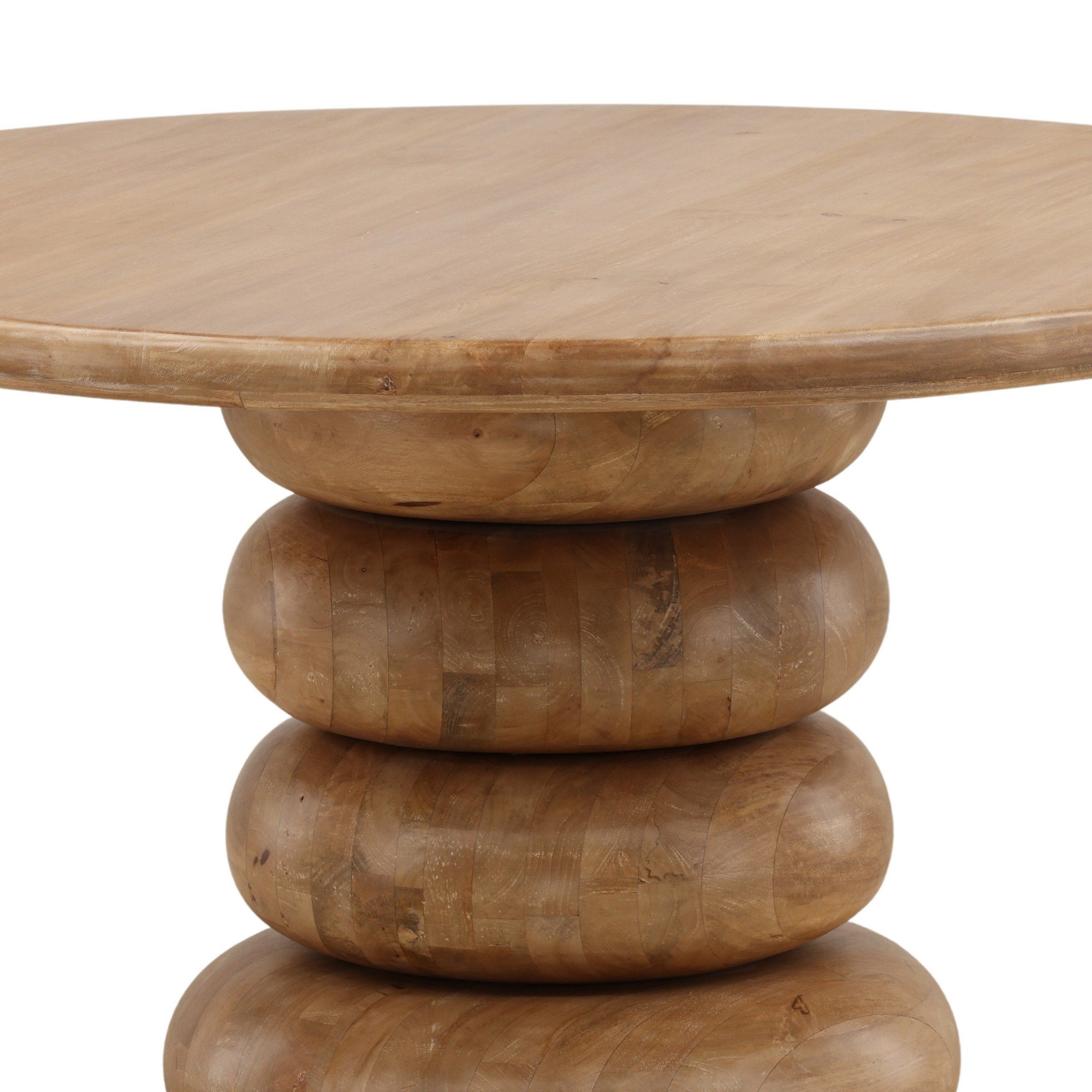 The Anele Dining Table blends timeless craftsmanship with natural charm. Made from solid mango wood, its round tabletop and sturdy pedestal base bring warmth and organic texture to your dining space. Each piece showcases unique wood grain variations that enhance its character and authenticity.