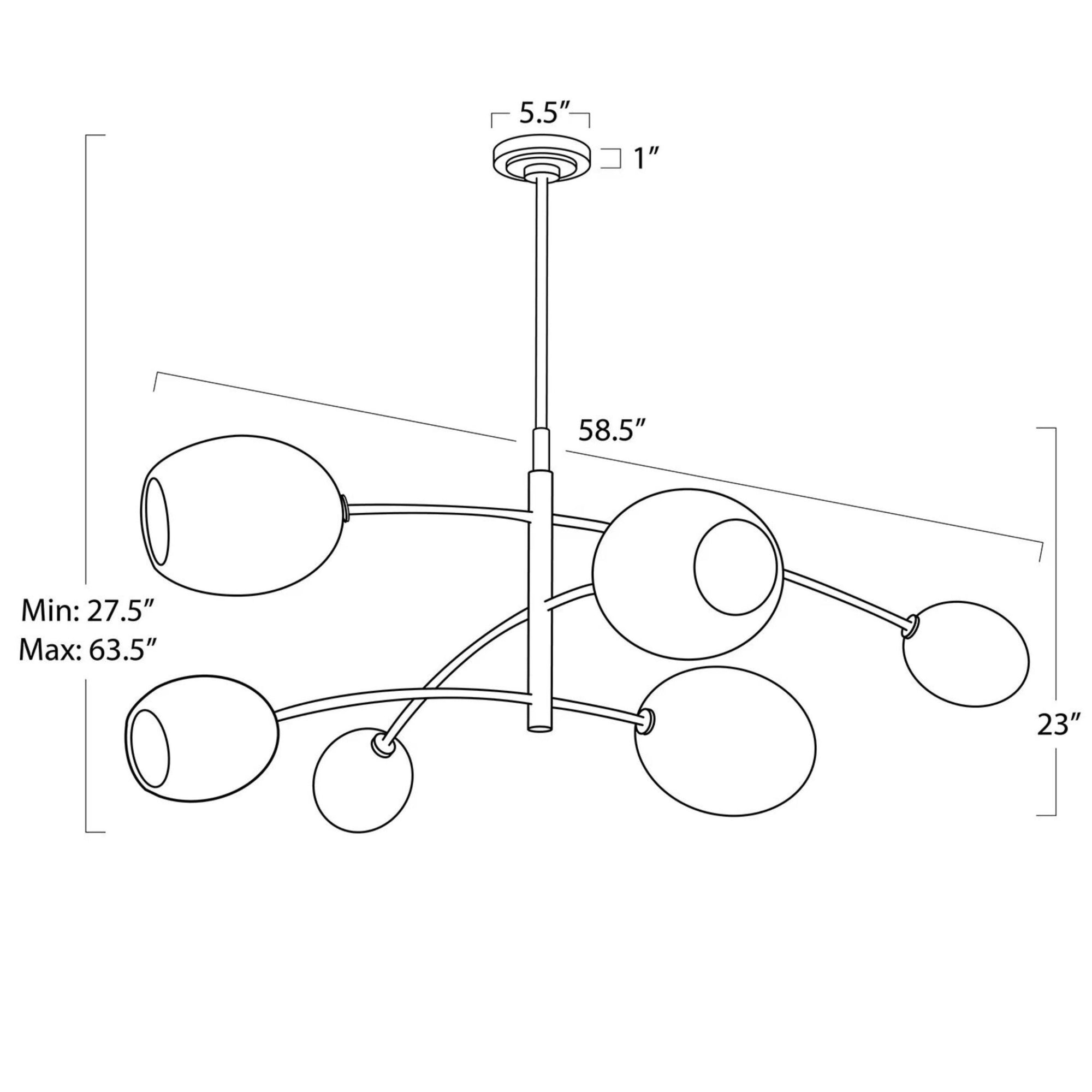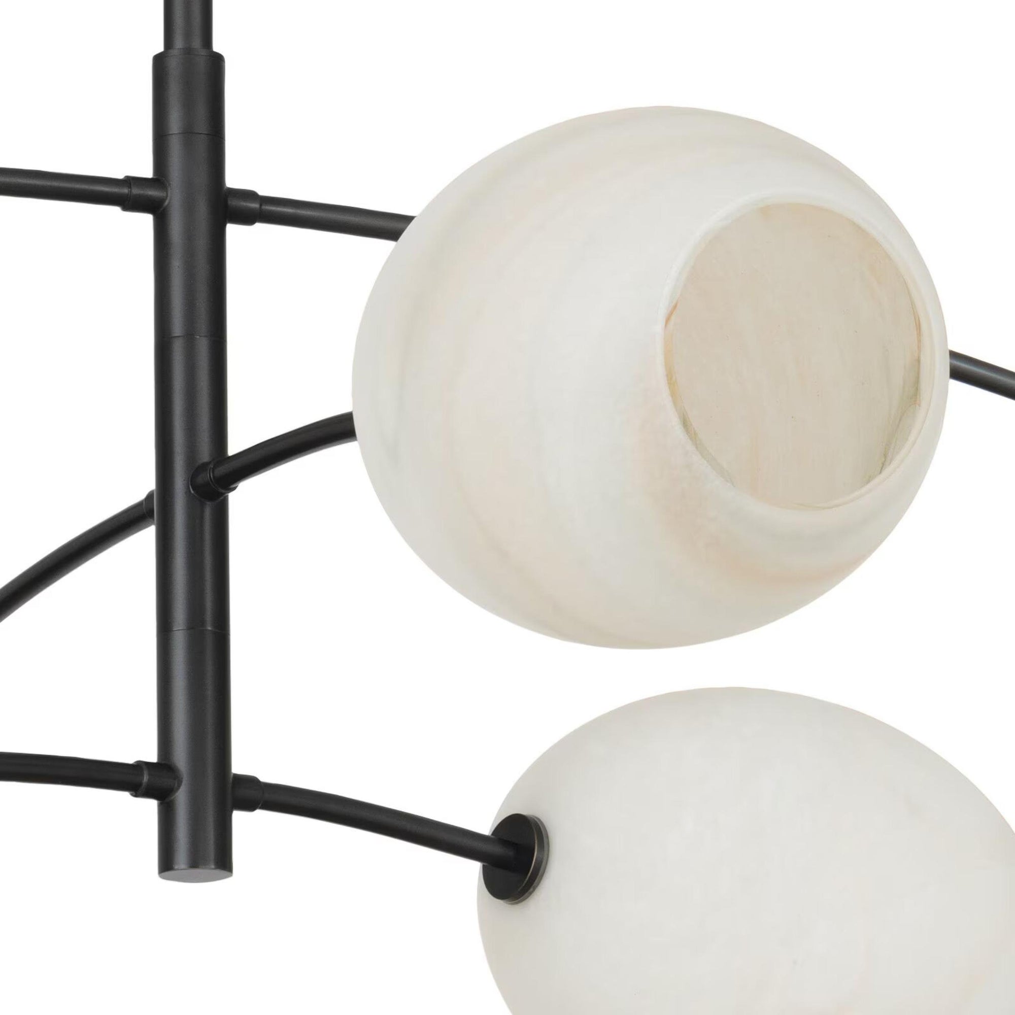 The Artemis Chandelier fuses modern design with artisanal craftsmanship for a striking statement piece. Its open-ended, alabaster-like glass globes cast a soft, moody glow, adding depth and sophistication to any room. Inspired by the fluid balance of a mobile, the chandelier’s gracefully arched arms in an oil-rubbed bronze finish create movement and visual intrigue. Both functional and sculptural, the Artemis Chandelier serves as a luminous centerpiece, bringing contemporary elegance and artistic presence to dining rooms, living areas, or entryways.