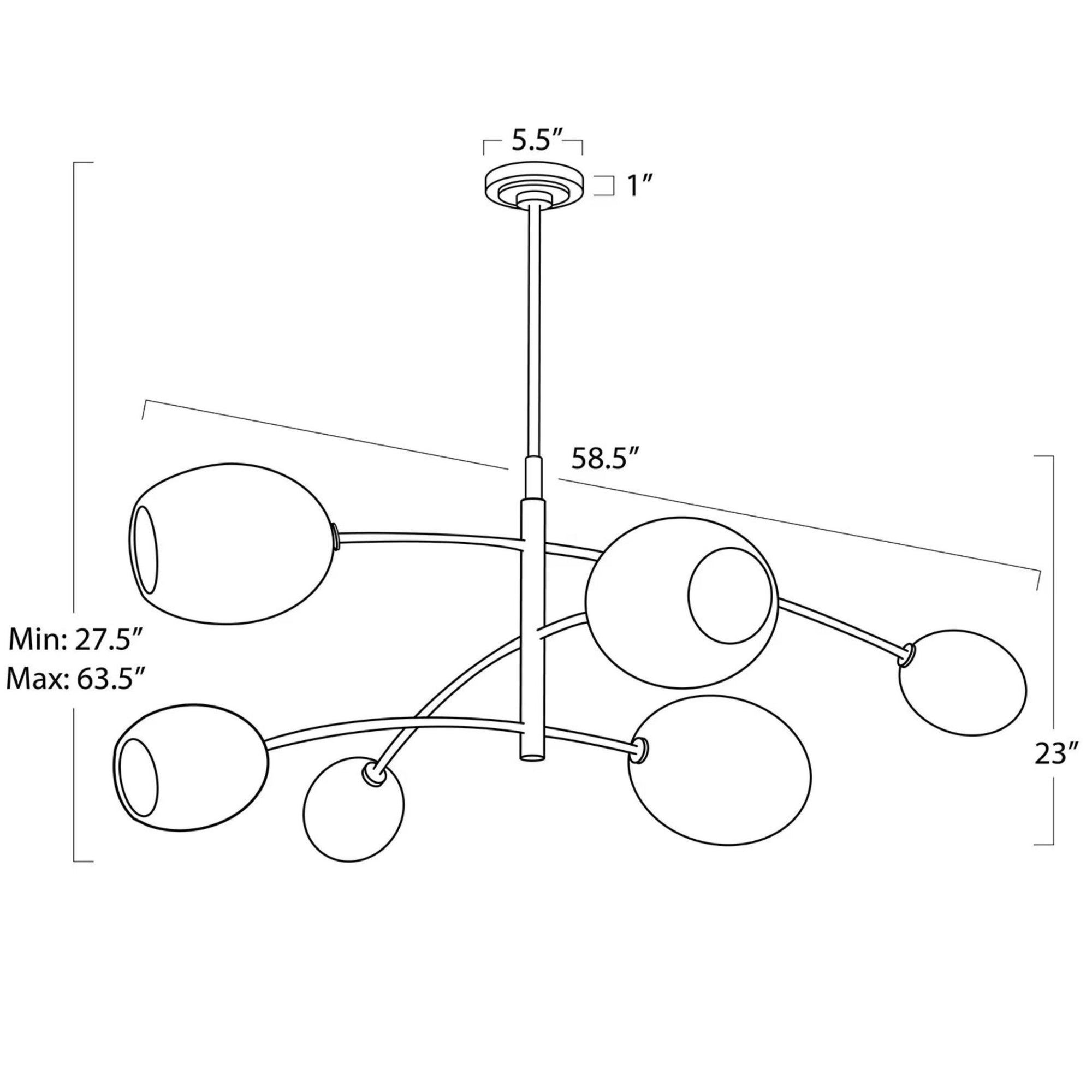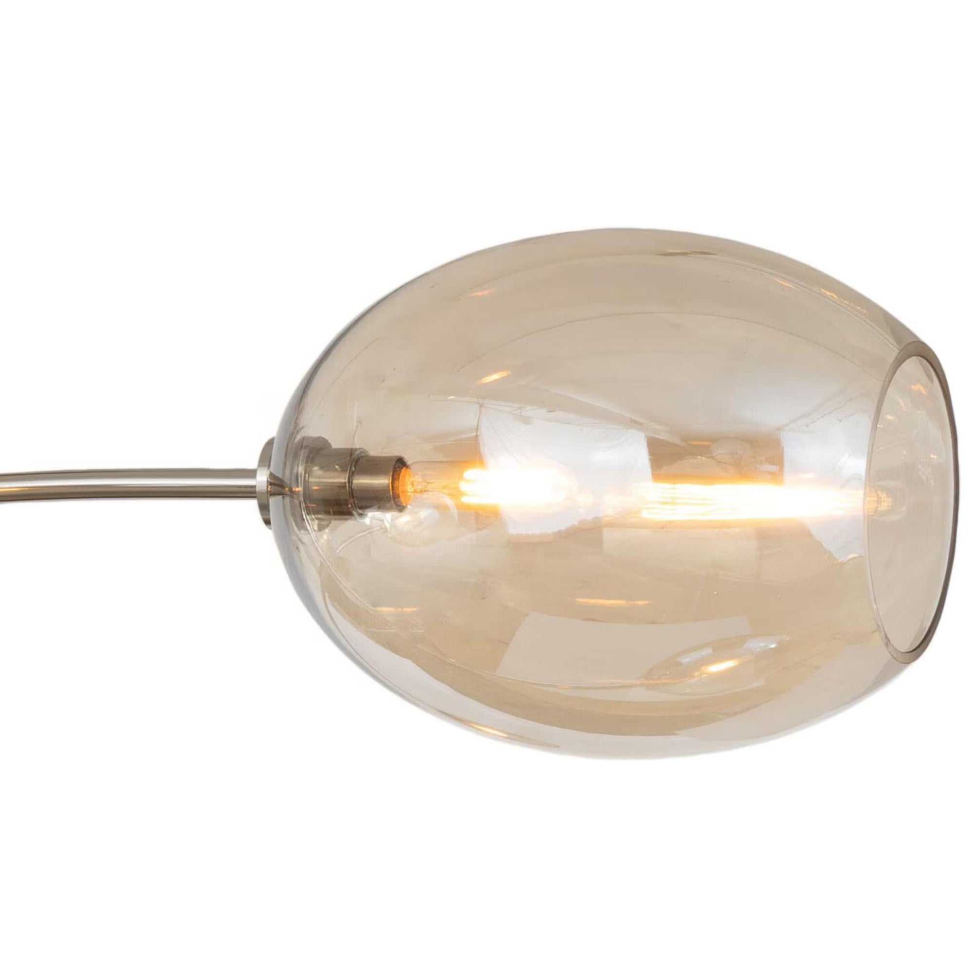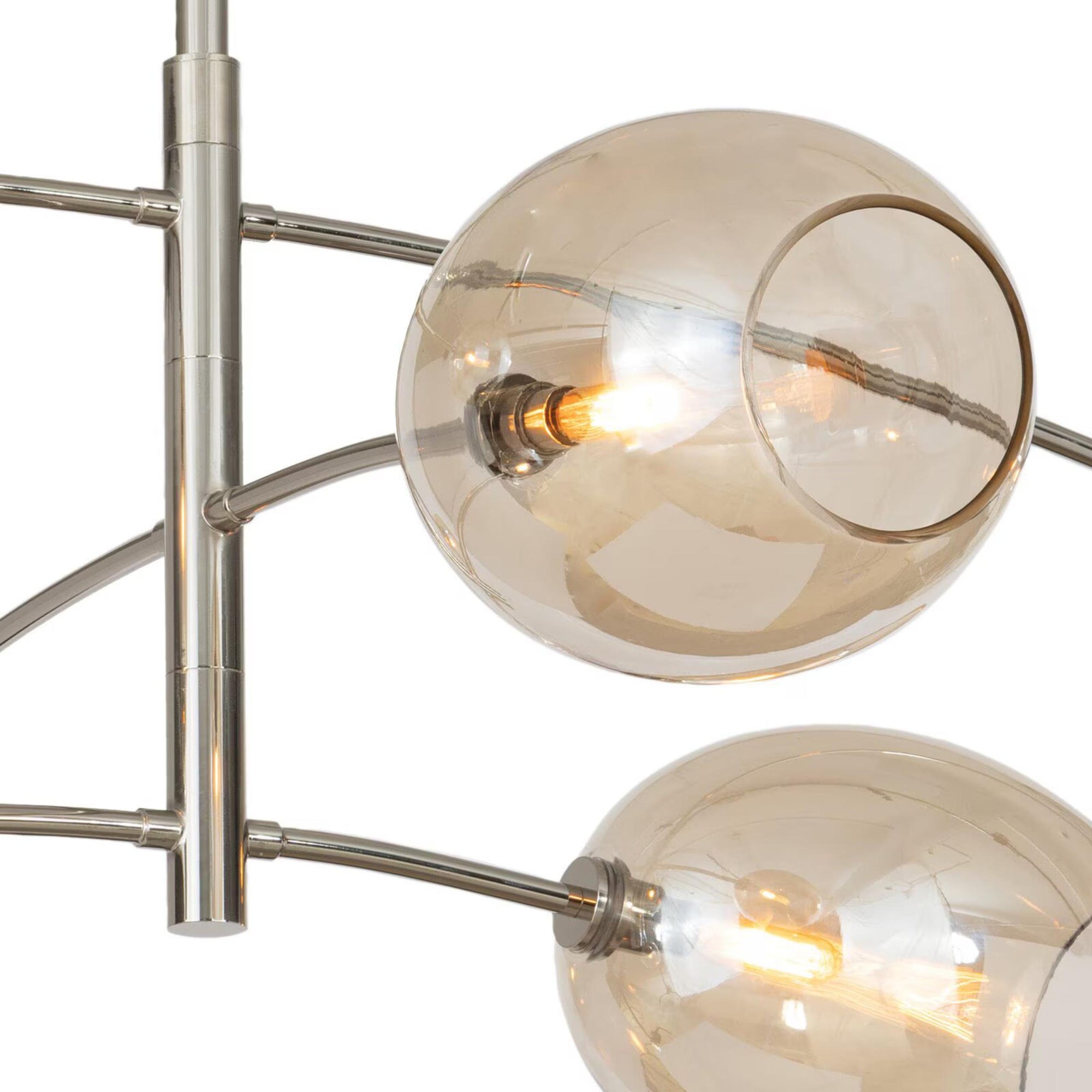 The Artemis Chandelier fuses sleek modern design with artisan-crafted elegance. Its open-ended Champagne glass globes cast a soft, moody glow, adding sophisticated ambiance to any space. Inspired by the movement and balance of a mobile, the chandelier features gracefully arched arms in polished nickel, creating a sense of fluidity and visual intrigue. Perfect as both a functional light source and a striking centerpiece, the Artemis Chandelier elevates dining rooms, living areas, or entryways with contemporary artistry and timeless style.