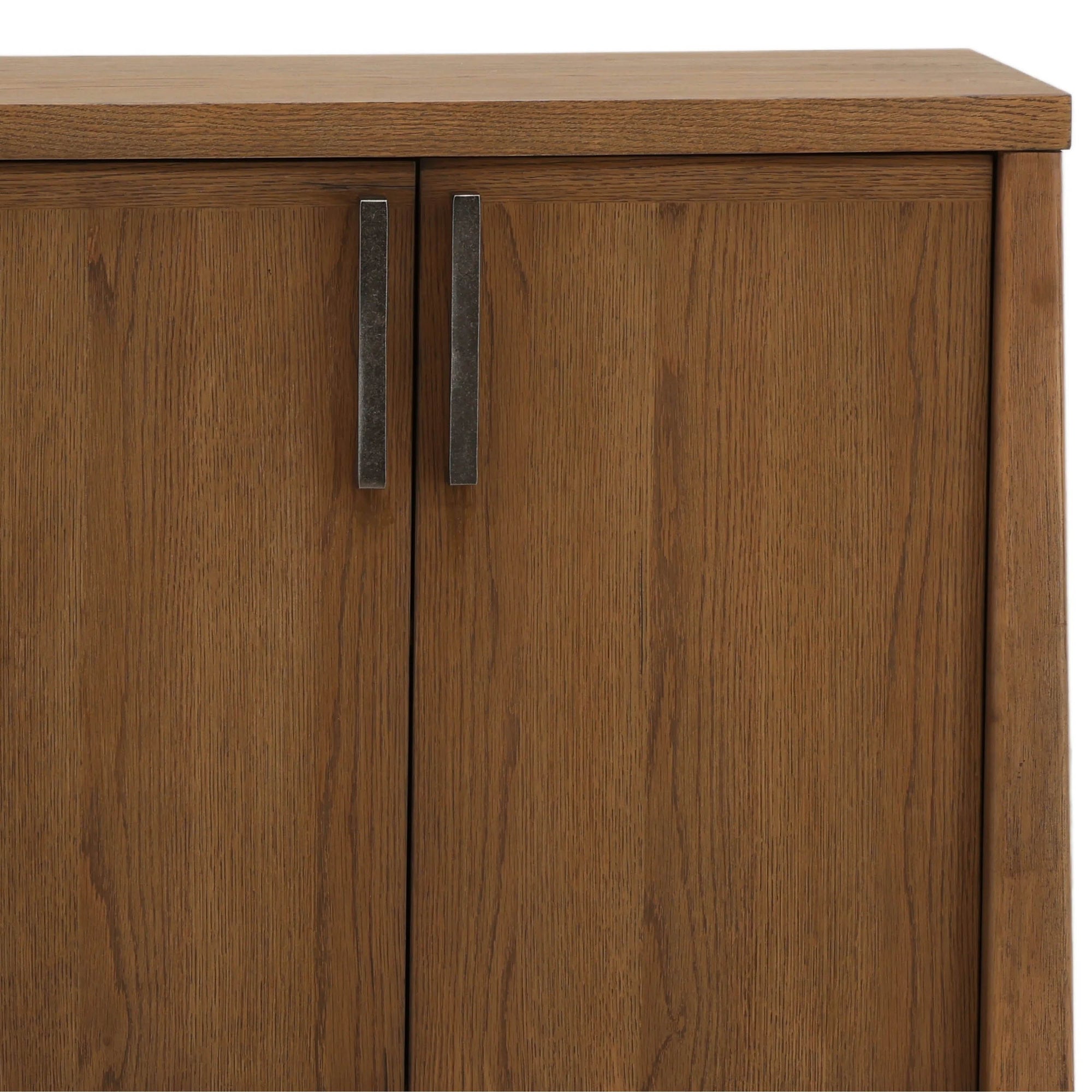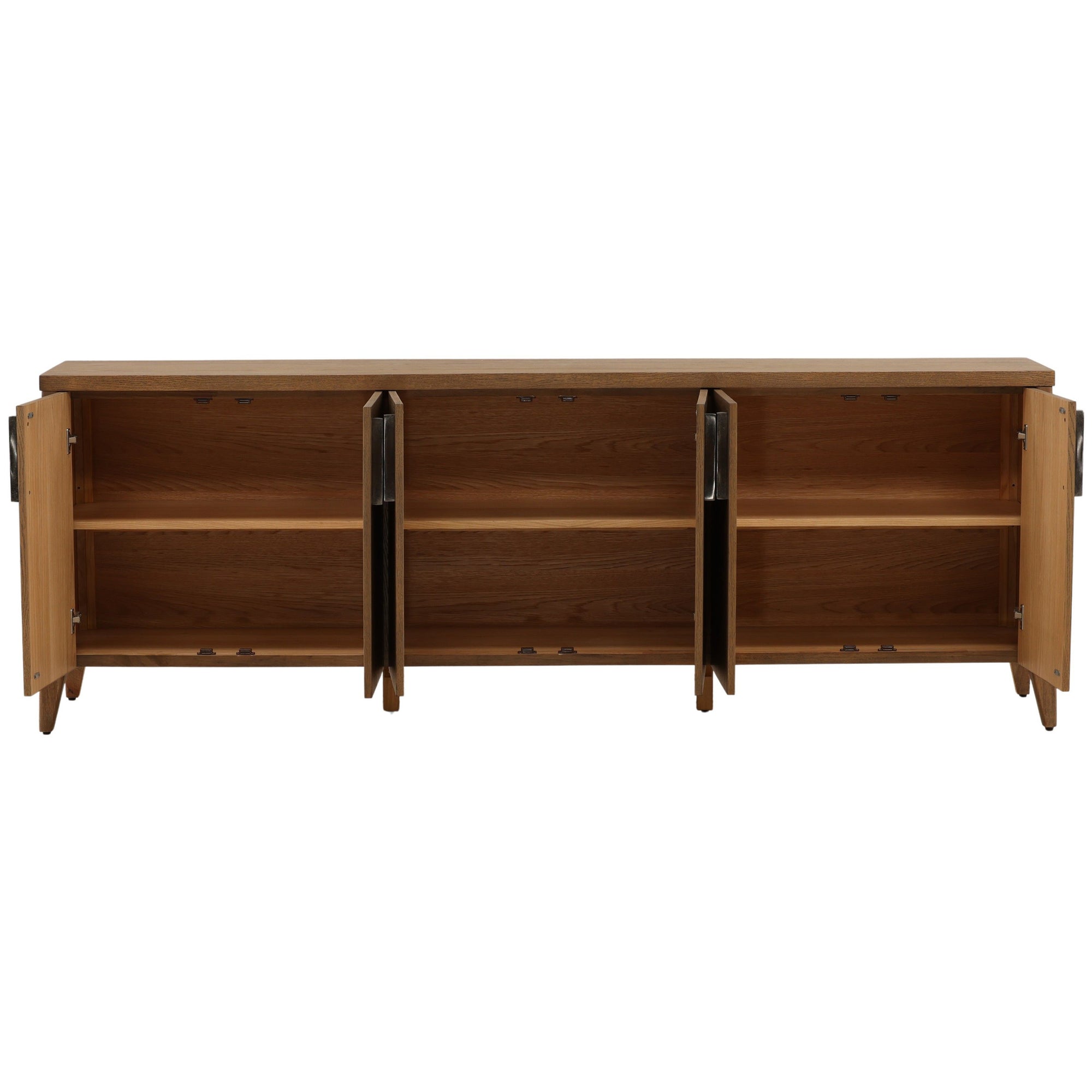 The Atley Sideboard combines natural warmth with modern simplicity. Crafted from rubber wood and oak veneer, this sideboard offers ample storage behind clean-lined doors, making it both stylish and functional. Perfect for dining or living spaces, it brings a timeless touch to contemporary interiors.