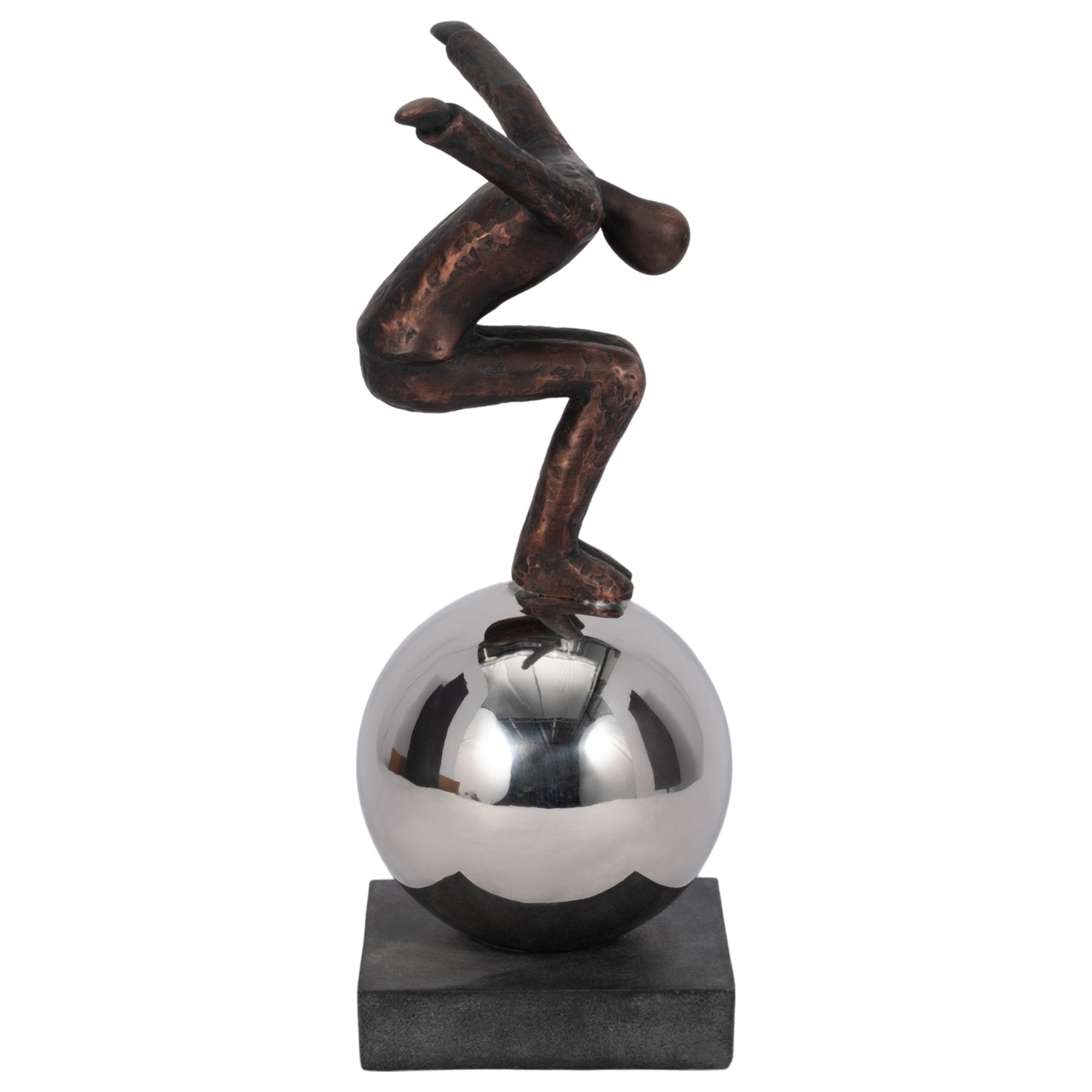 Add artistic charm to your space with the Balancing Man on Sphere, a unique sculpture that captures both motion and balance in striking form. Featuring a finely detailed figure poised gracefully atop a smooth sphere, this piece symbolizes strength, perseverance, and harmony. Its modern design and elegant finish make it a versatile accent for shelves, desks, or console tables. Perfect for adding a touch of creativity and sophistication, this sculpture serves as both décor and conversation starter in any home or office setting.