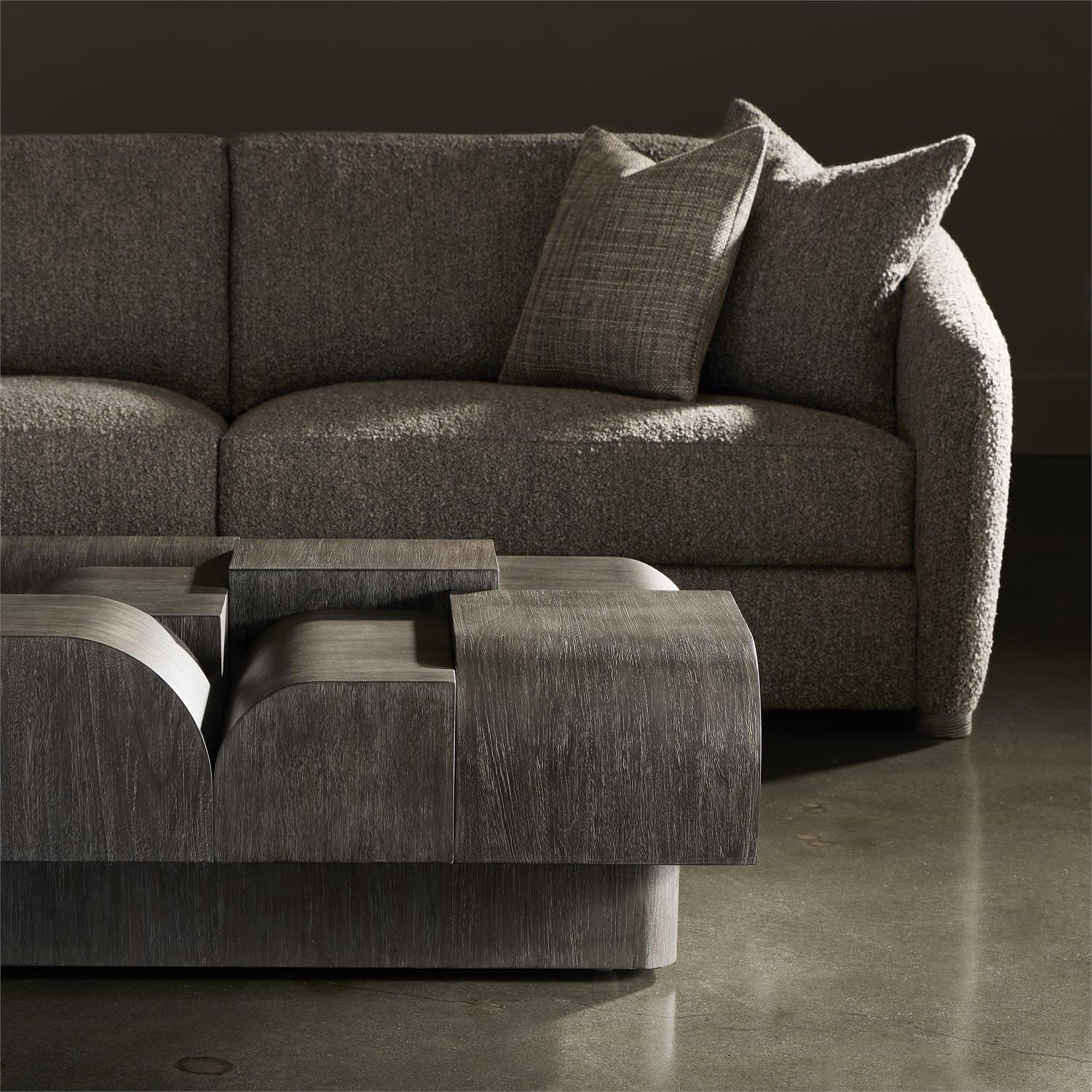 The Basi Cocktail Table brings sculptural elegance to the living room with its tiered geometric surfaces. Crafted from rich mahogany in a Bracken finish, its rising and falling forms highlight the natural woodgrain, creating a play of light and shadow. Resting on a plinth base and fitted with hidden casters, this table merges modern artistry with practical design.