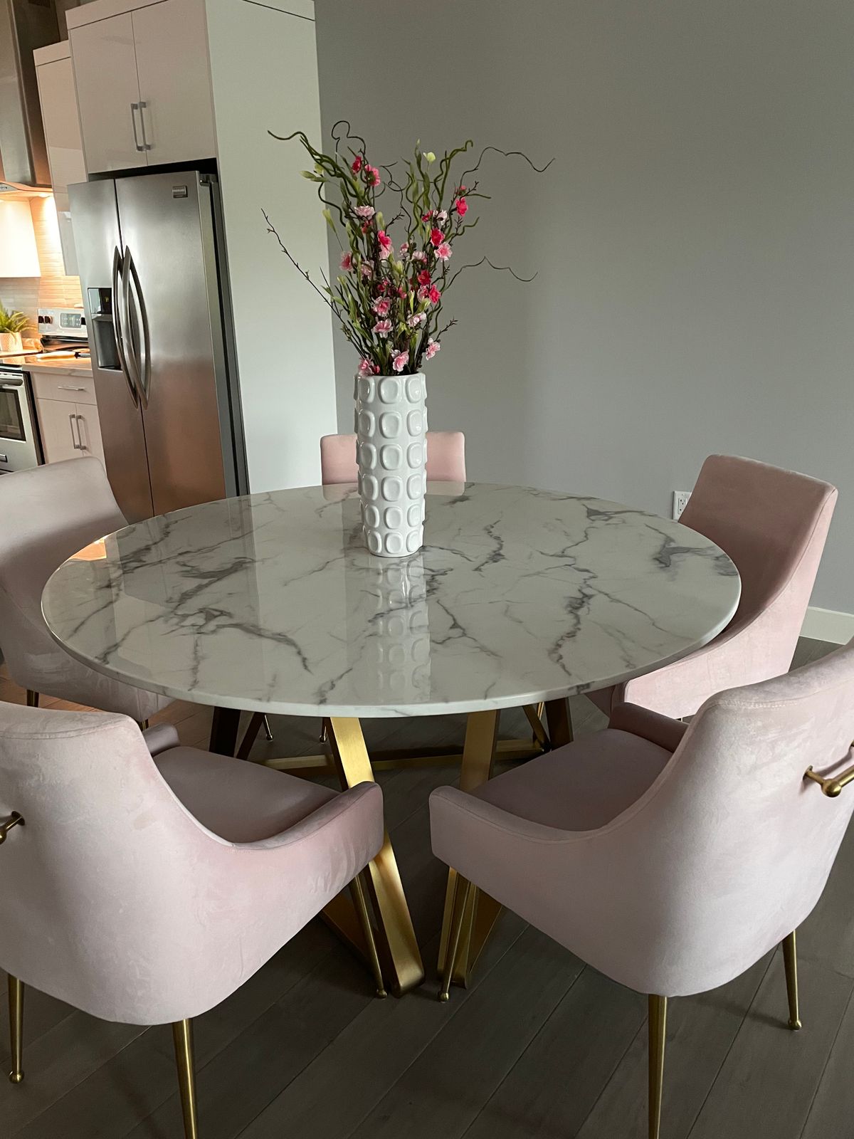 Had been eyeing these chairs for the better part of two years. My husband was even supportive of the blush color but yet I was reticent on ordering without seeing them in person ... what if they were too pink?? Finally had the chance this summer to swing through the Houston showroom —- boy, it did not disappoint! The chairs were in the entryway and immediately confirmed my love for them. As I only had limited time before my flight departed I quickly browsed the showroom with lustful eyes. So many beautiful and unique pieces!! But once home, time got the better of me and I still hadn’t pulled the trigger on my order. On Black Friday my email tempted me with a phenomenal deal I couldn’t turn down and the chairs are now proudly displayed and at home in my dining room! They’re gorgeous, comfy and just the statement piece we needed. Don’t waste as much time as I did —- proceed to checkout ASAP!!! You won’t be disappointed!