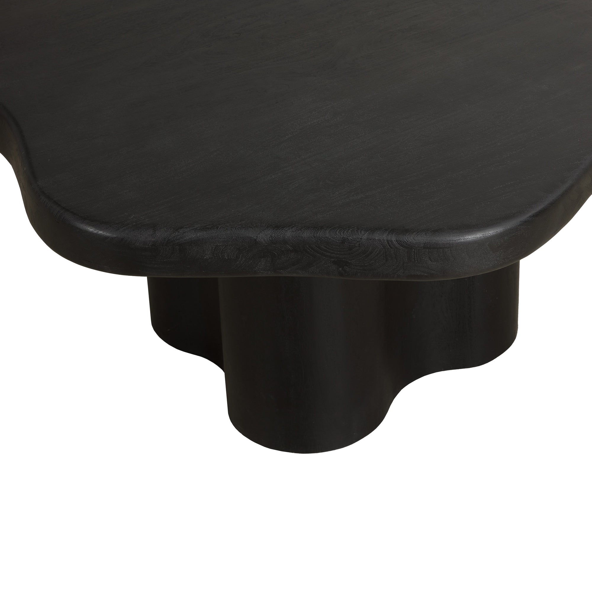 The Bellona Dining Table, Coal Black combines natural beauty with modern design. Crafted from solid acacia wood, its organically shaped top rests gracefully on a curved pedestal base. Ideal for family gatherings or entertaining guests, this dining table adds a sculptural touch while offering durable and functional dining space.