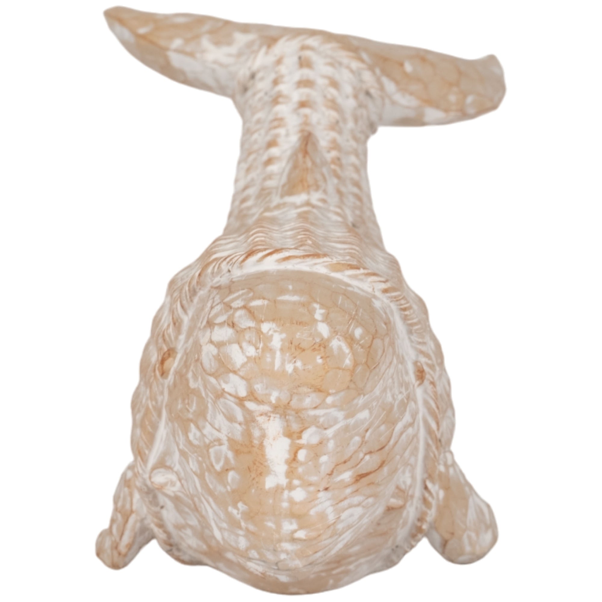 Enhance your coastal home decor with the stunning Beluga Whale, a perfect accent piece that brings the tranquility of the ocean into your living space. This intricately detailed whale statue showcases superior craftsmanship with delicate textures and a whitewashed finish that complements any nautical or beach-inspired decor. Add a serene coastal vibe to your home today and let this beautifully designed whale figurine serve as a reminder of the peaceful wonders of the sea.