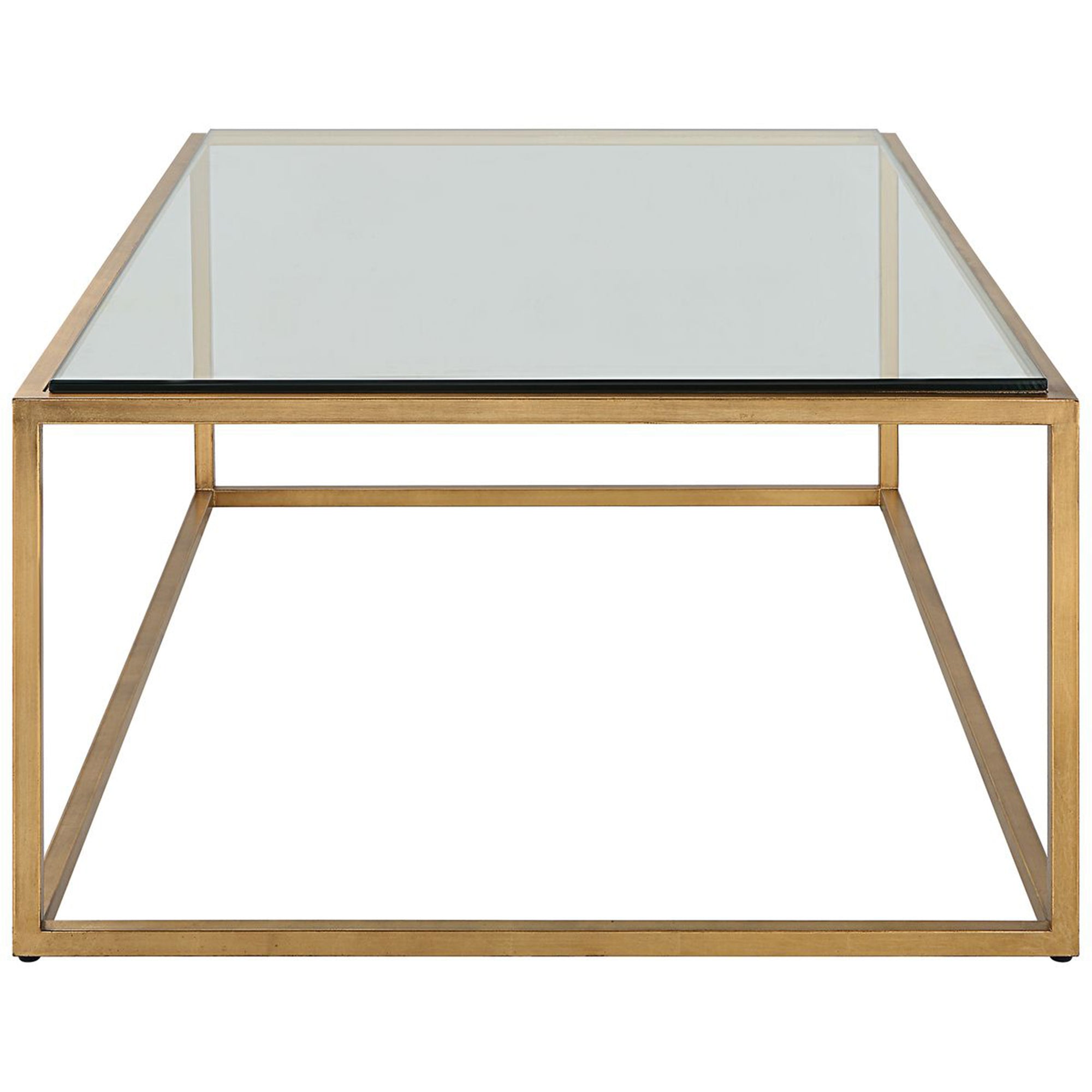 The Bravura Coffee Table features a sleek, minimalist silhouette that brings a highly refined, contemporary presence to any seating arrangement. It showcases a spacious, perfectly flat transparent top seamlessly inset within a clean-lined rectangular framework, providing an elegant and unobstructed surface for resting beverages, books, or decorative accents. The piece is defined by its remarkably airy open-frame base, consisting of slender, straight vertical legs connected by a continuous floor-level stretcher that securely mirrors the top profile. This beautifully balanced architectural design effortlessly grounds a living room while maintaining a light, space-saving visual footprint.