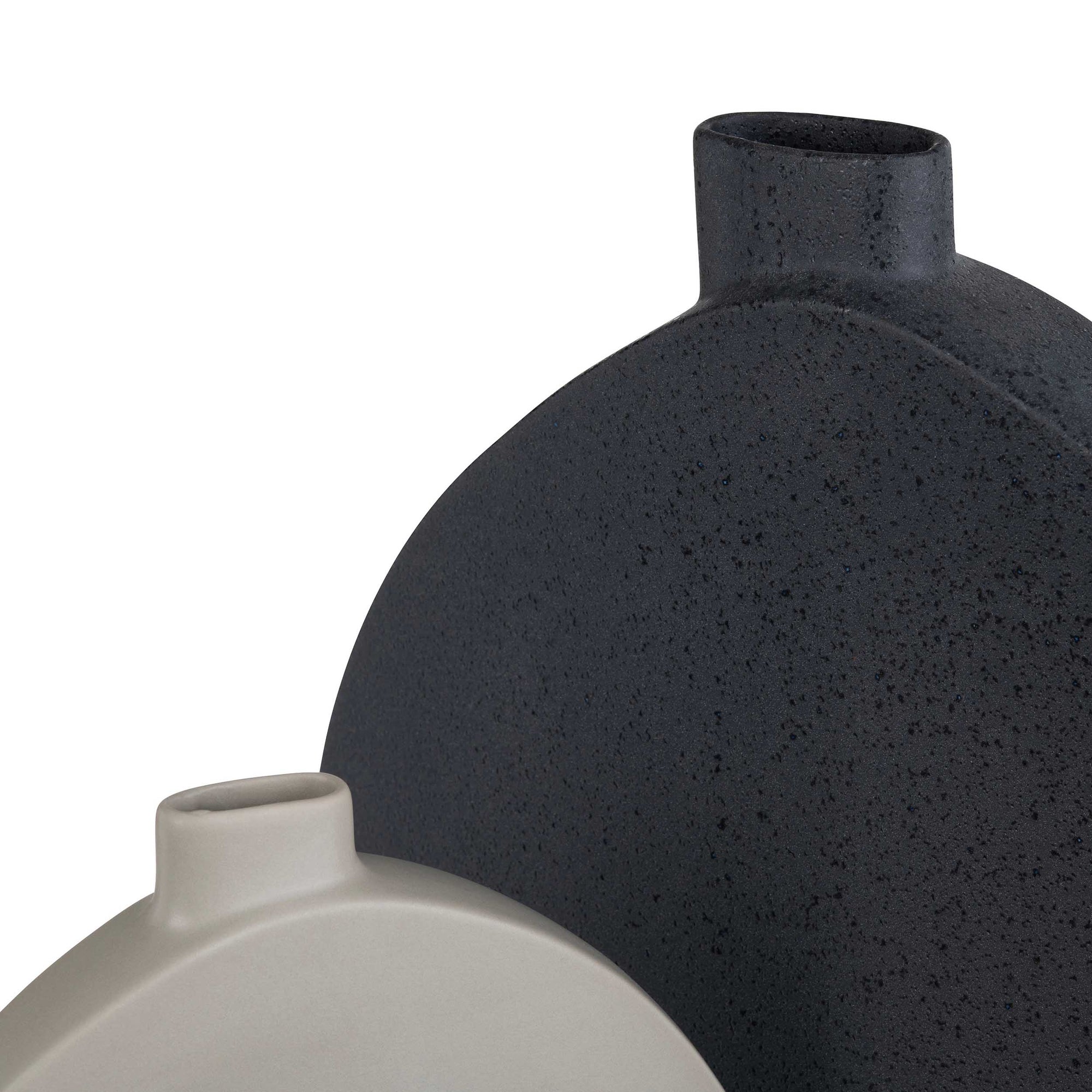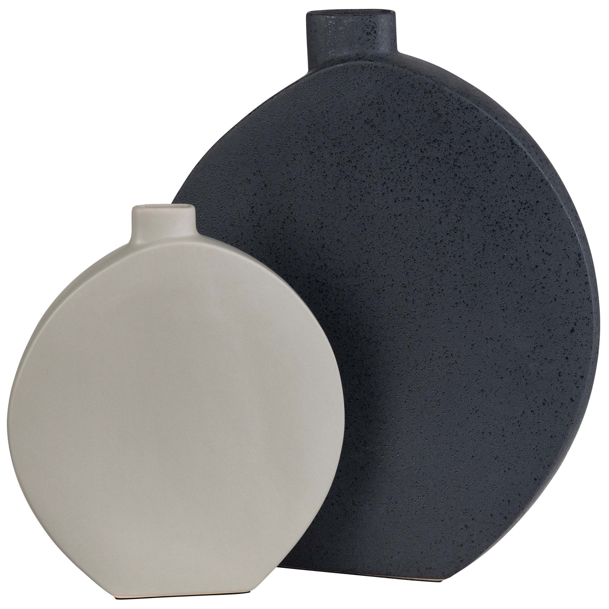 The Braxton Vases feature a contemporary ovoid design crafted in ceramic. With contrasting matte black and tan finishes, these vases bring modern sophistication and a stylish accent to any tabletop, console, or shelf.