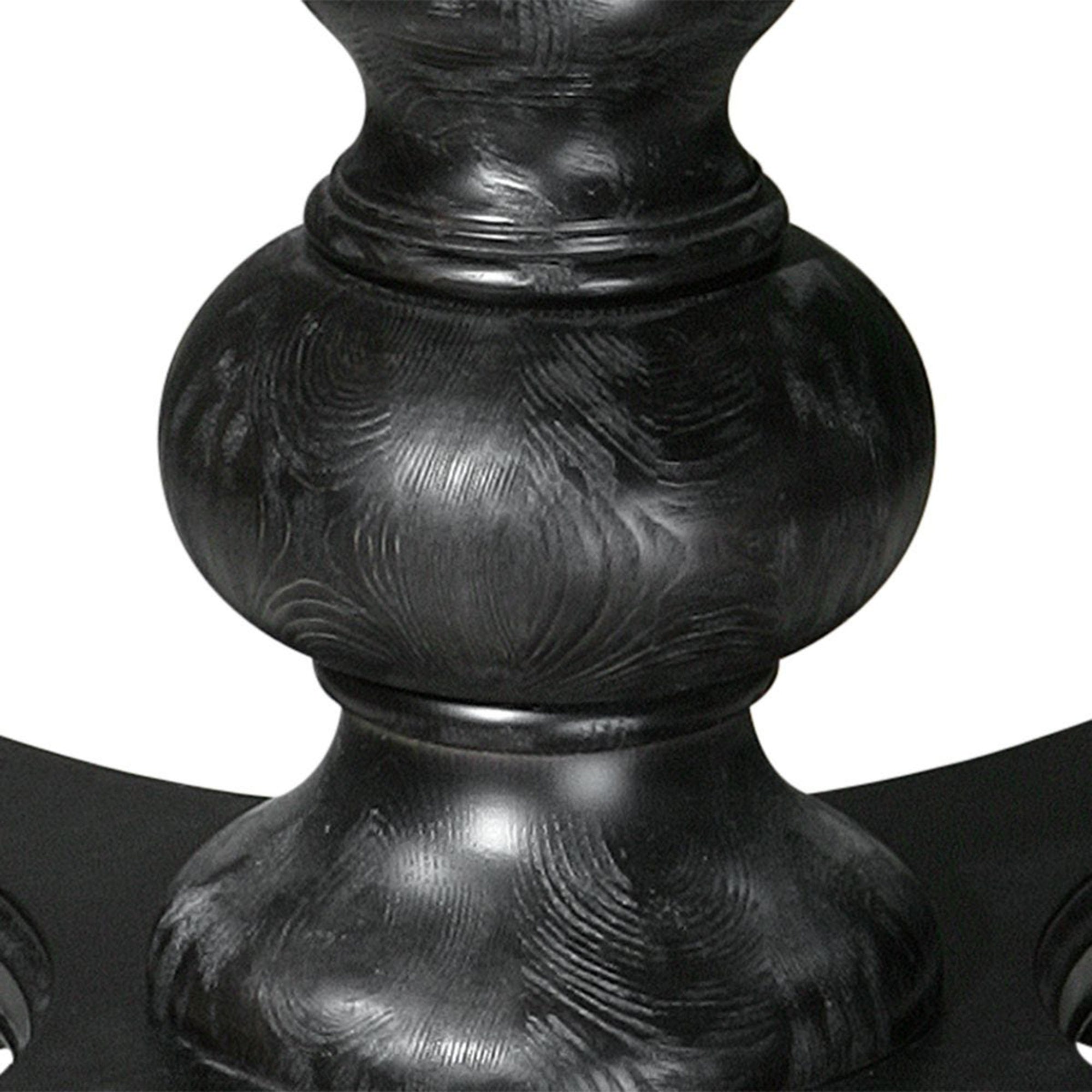 The Brynmore Dining Table serves as an elegant foyer centerpiece or a sophisticated small dining table. This piece features detailed moldings and a classically styled turned baluster base, all finished in a sleek satin black that reveals subtle pine wood grain. Its timeless silhouette and sturdy construction bring a refined, traditional aesthetic to entryways or intimate dining spaces.