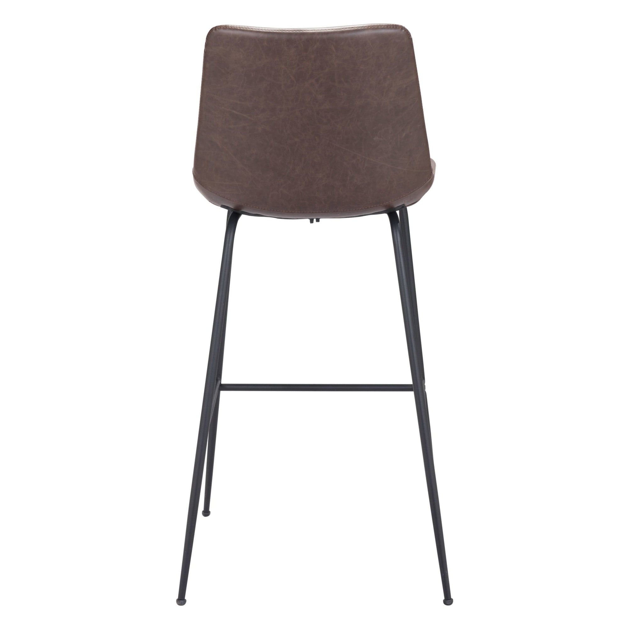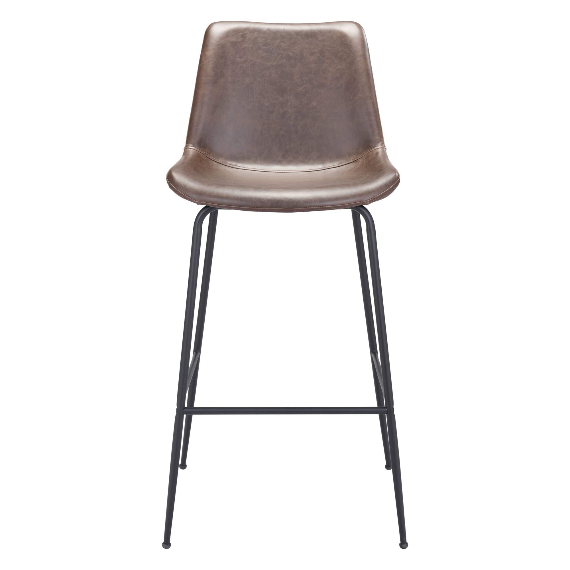 The Bryon barstool has mid-century modern urban lines and looks great in any space. With a heavy-duty vinyl covering and a sturdy steel frame, this barstool fits in any home kitchen, dining area, or bar. The legs are finished in a matte black coating that is durable for hospitality use.