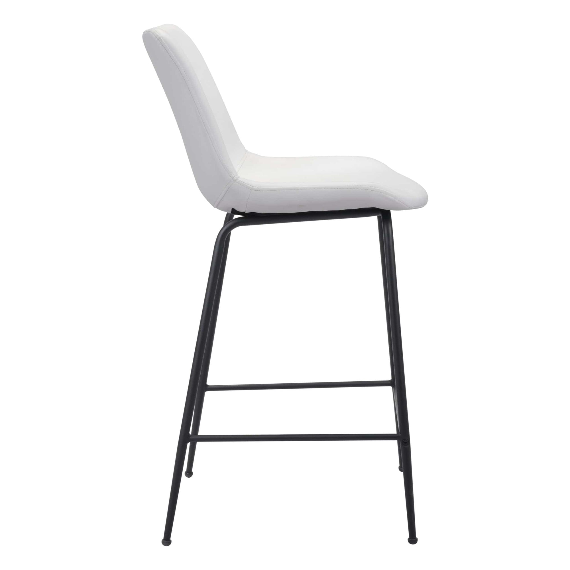 The Bryon counter stool has mid-century modern urban lines and looks great in any space. With a heavy-duty vinyl covering and a sturdy steel frame, this counter stool fits in any home kitchen, dining area, or bar. The legs are finished in a matte black coating that is durable for hospitality use.