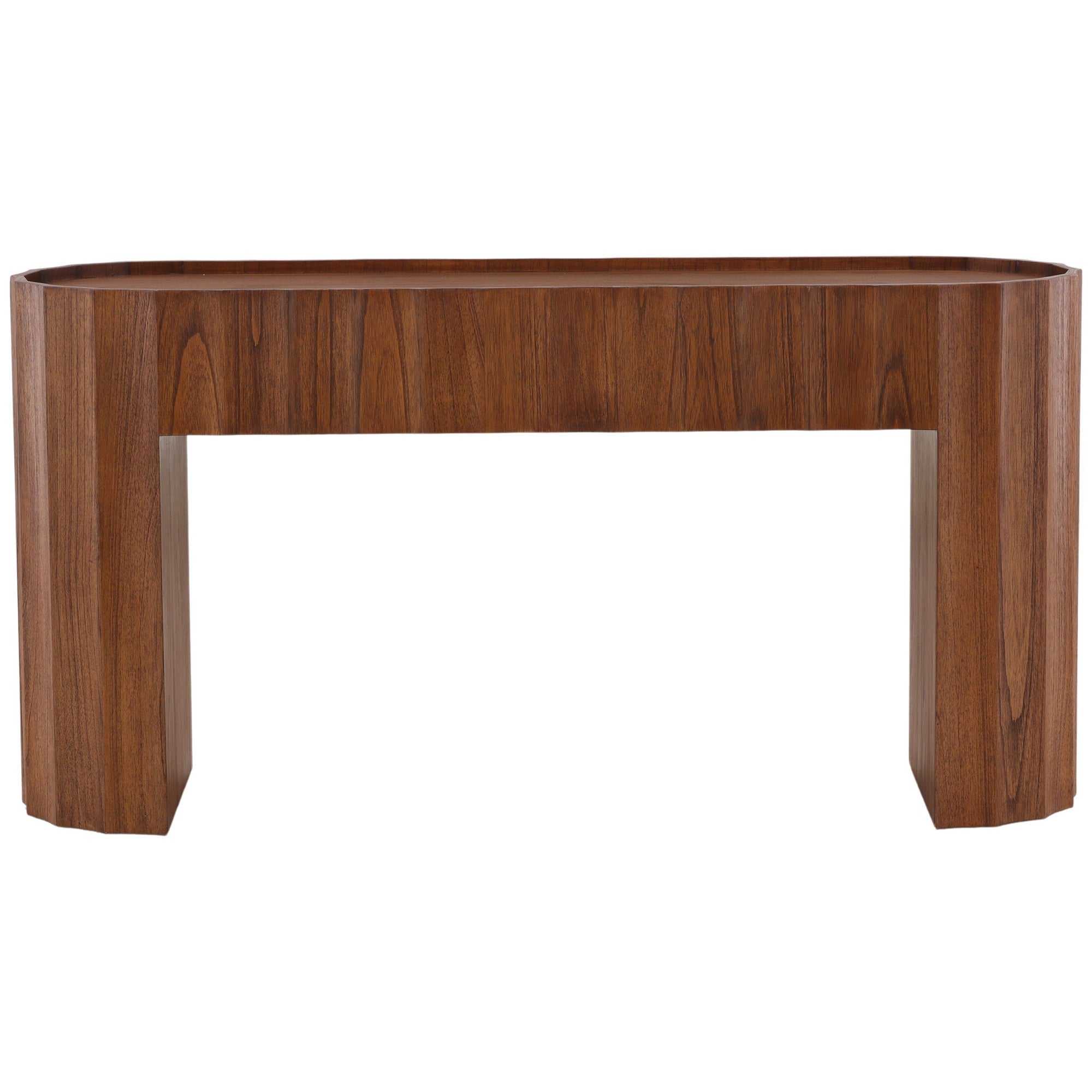 The Cadwell Console Table showcases clean lines and timeless craftsmanship. Made from Mindi wood veneer with a warm brown finish, this versatile table adds natural elegance to entryways or living spaces. Its minimalist silhouette makes it a perfect complement to a variety of interior styles.
