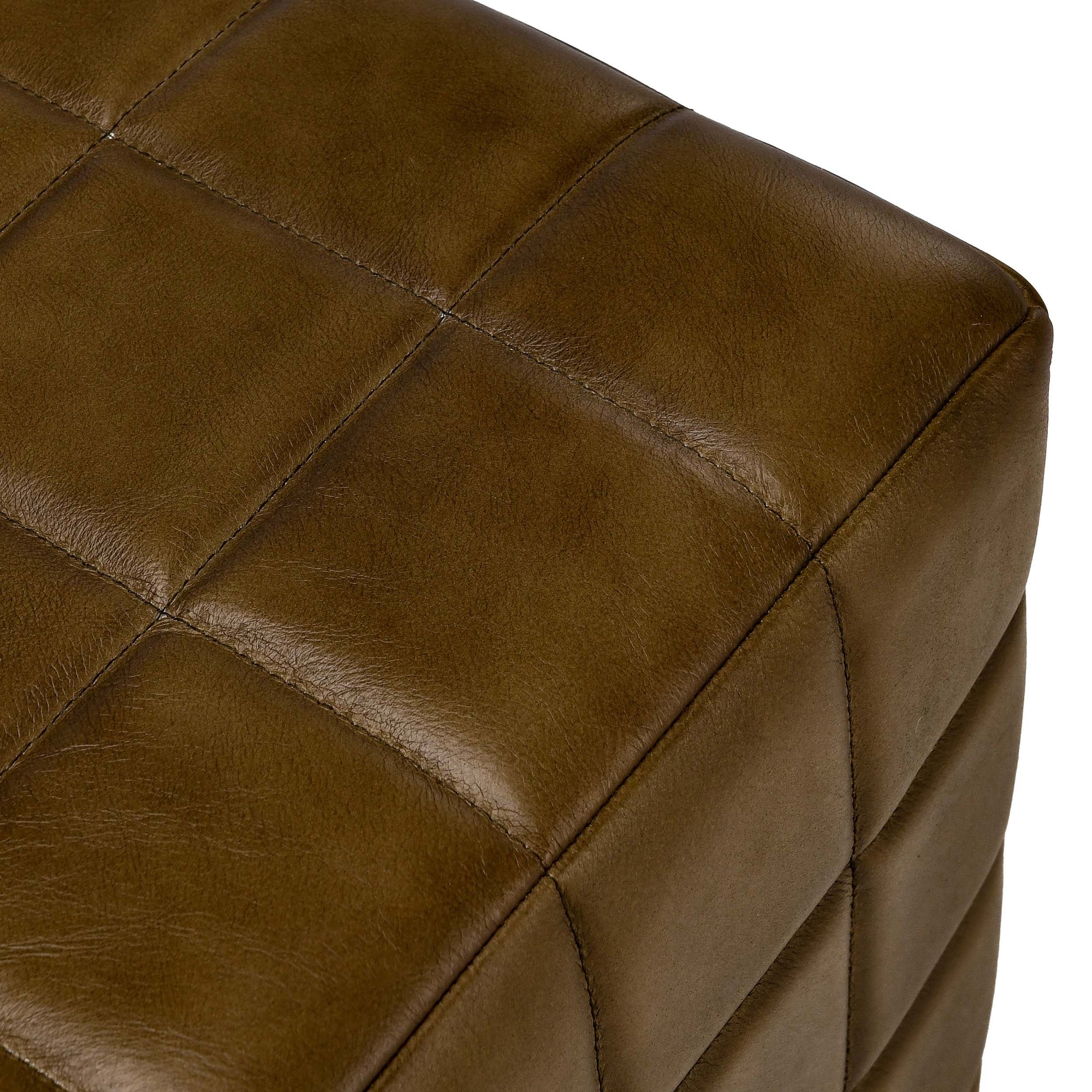 The Carlo Leather Square Ottoman, Antique Brown, combines timeless style with versatile functionality. Upholstered in rich top-grain leather, its biscuit-tufted design adds texture and sophistication. Ideal as a footrest, extra seating, or accent piece, this ottoman brings modern elegance and practicality to any space.
