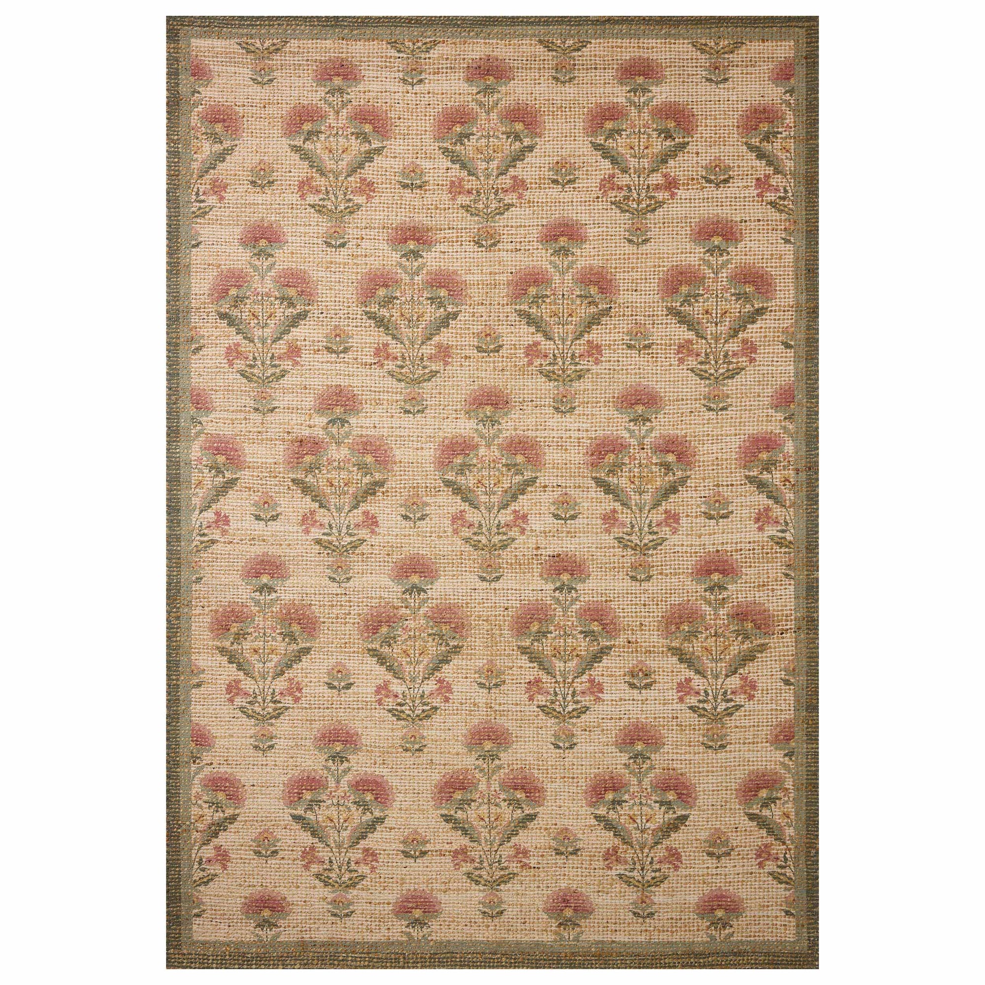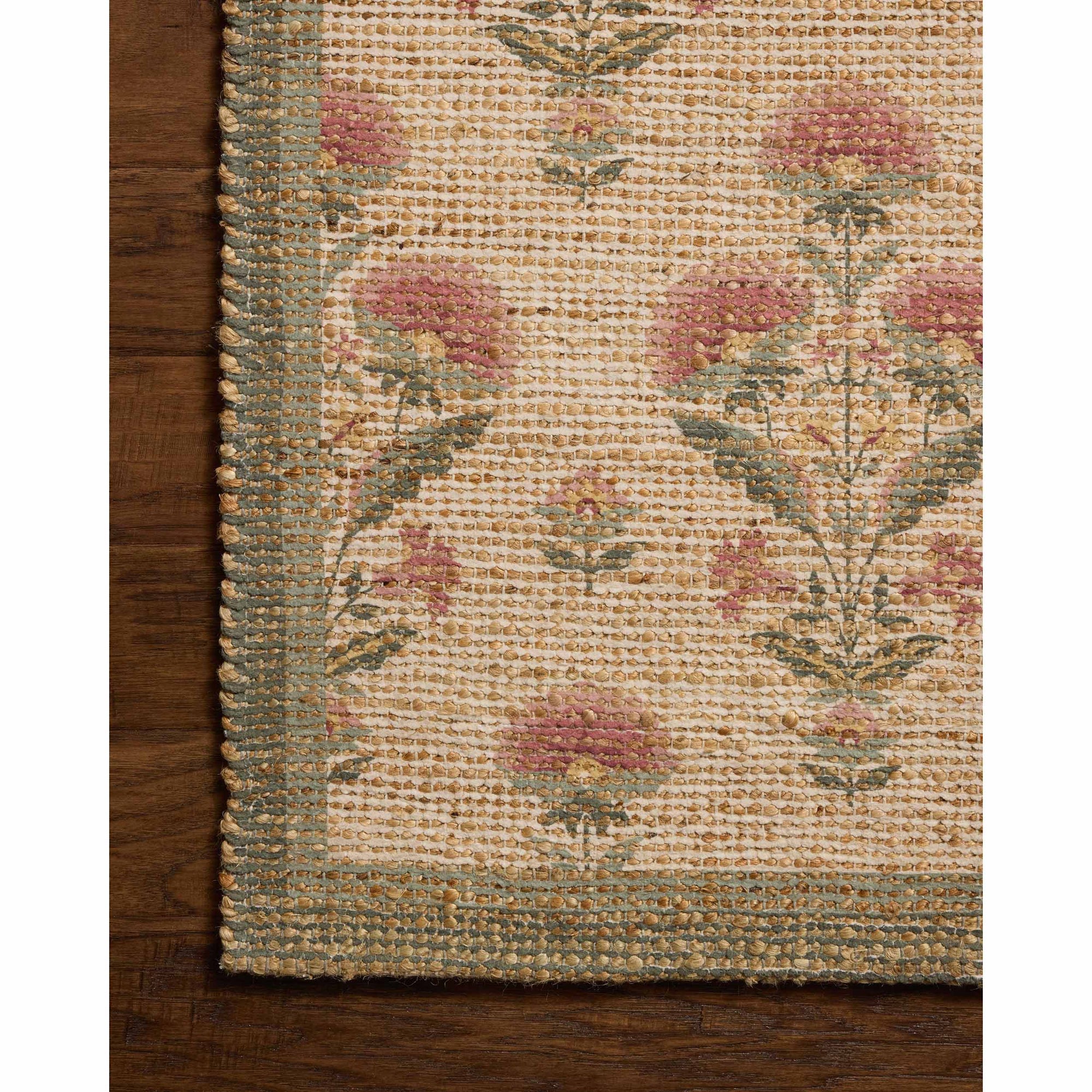 The Rue Collection by Chris Loves Julia × Loloi is a handwoven area rug inspired by classic English cottage style. Featuring a charming block-print floral design on a blended pile of jute, polyester, and cotton, it brings natural-toned warmth to living rooms, bedrooms, dining rooms, and more. Handwoven in India and GoodWeave-certified, this rug supports ethical production and weaving communities. Some loose threads may occur due to jute fibers; simply trim with scissors if needed.
