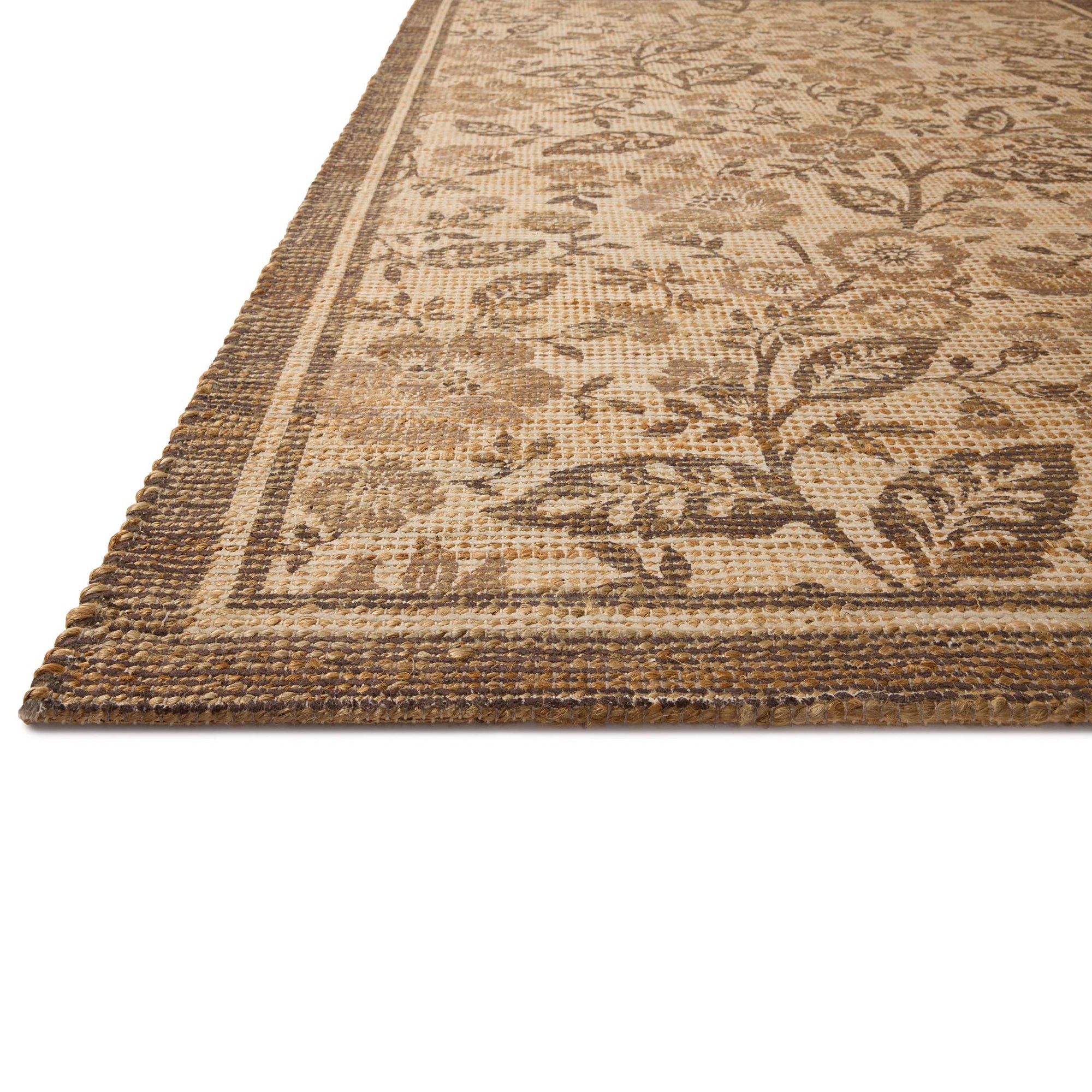 The Rue Collection by Chris Loves Julia × Loloi is a handwoven area rug inspired by classic English cottage style. Featuring a charming block-print floral design on a blended pile of jute, polyester, and cotton, it brings natural-toned warmth to living rooms, bedrooms, dining rooms, and more. Handwoven in India and GoodWeave-certified, this rug supports ethical production and weaving communities. Some loose threads may occur due to jute fibers; simply trim with scissors if needed.