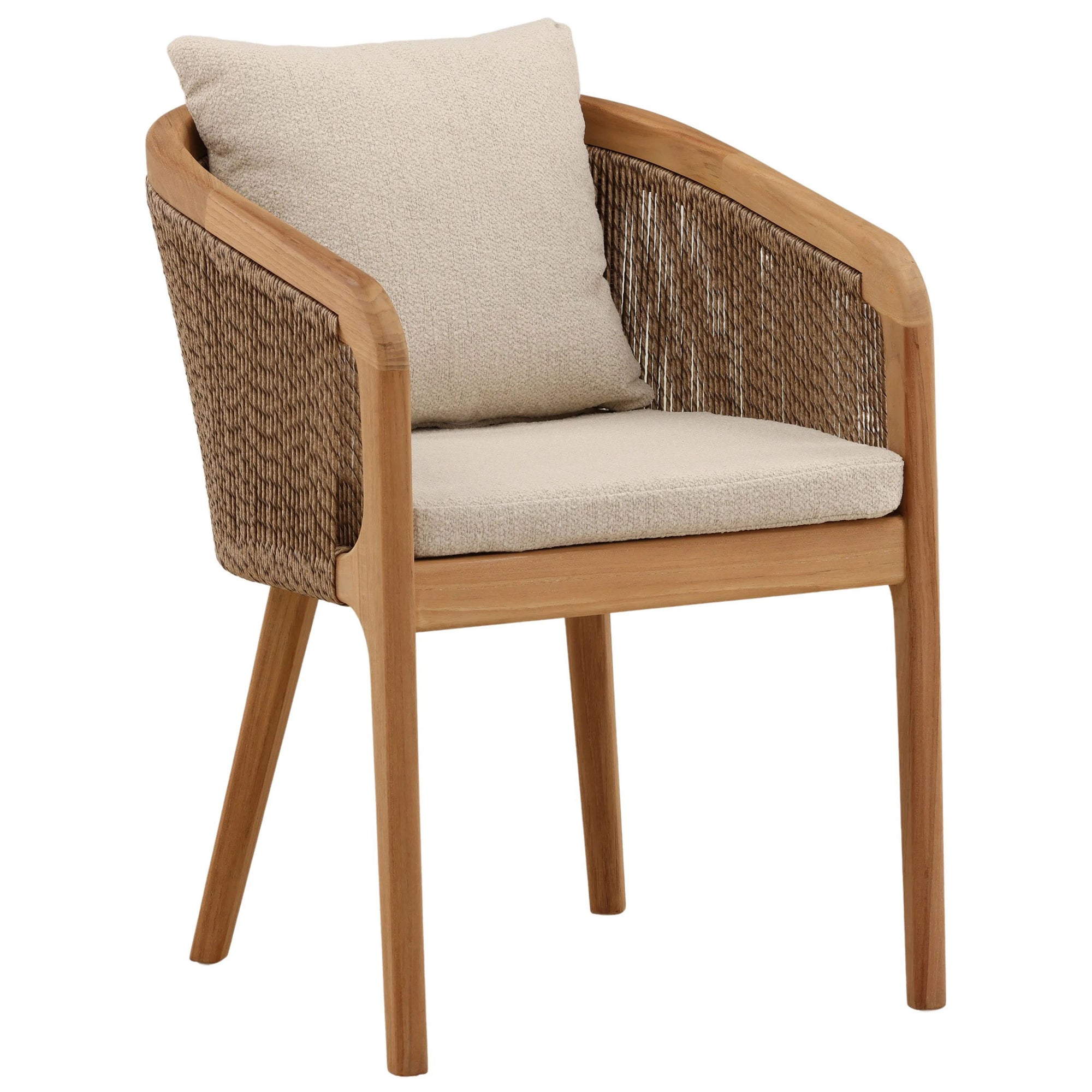 The Cian Outdoor Dining Chair is a beautifully scaled seating option that combines a durable frame with striking woven details, making it perfect for al fresco dining. Sold as a set, these chairs offer a refined, natural aesthetic with a distinct, curved back profile that promotes comfort. They provide a stylish and resilient seating solution for any exterior dining space.