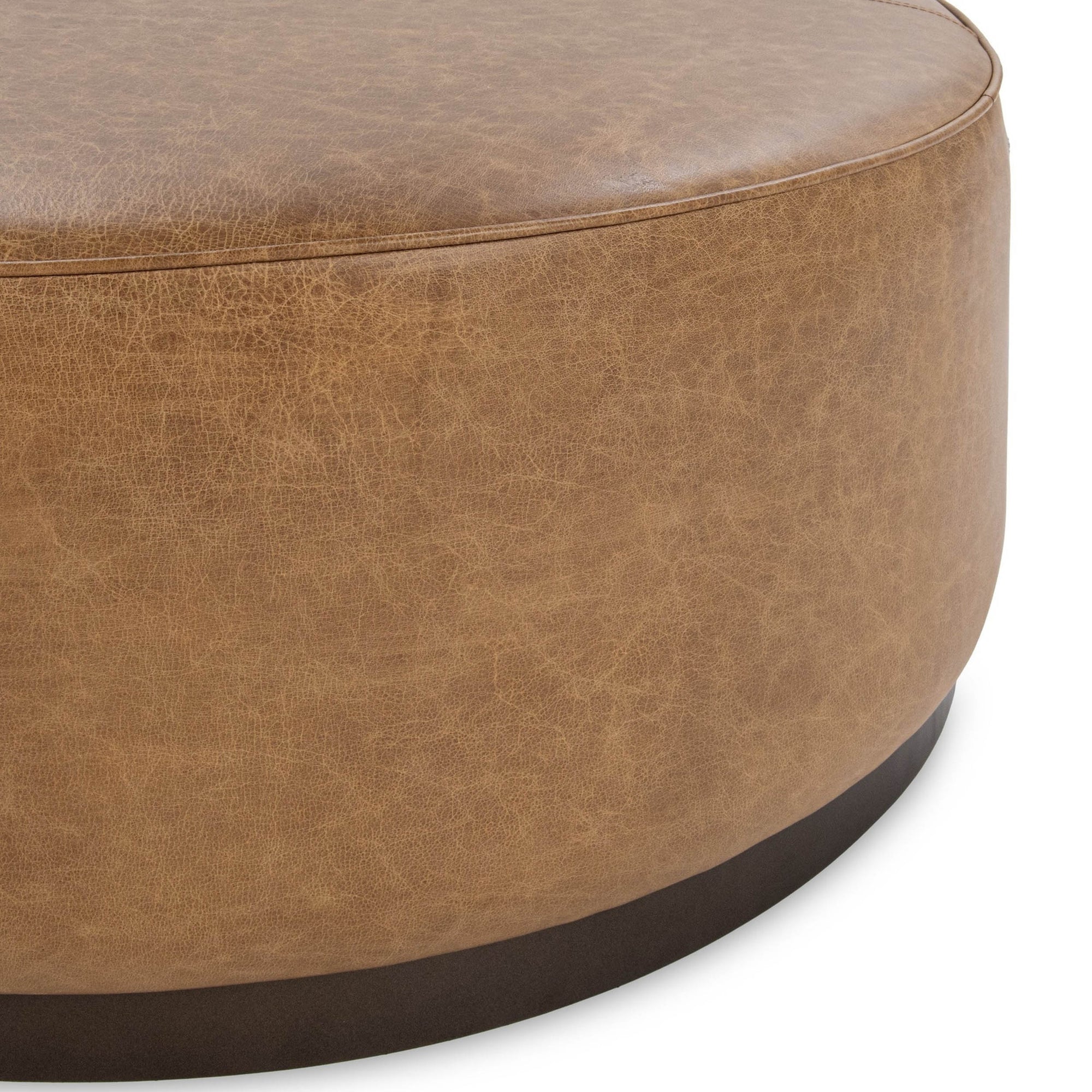 The Clair Round Leather Ottoman makes a bold statement, crafted with luxurious top grain leather for timeless style and durability. Perfect as a coffee table alternative, extra seating, or a chic accent piece, it offers both function and sophistication. The smooth leather surface and sturdy base create a versatile centerpiece that blends seamlessly into modern, rustic, or classic interiors.