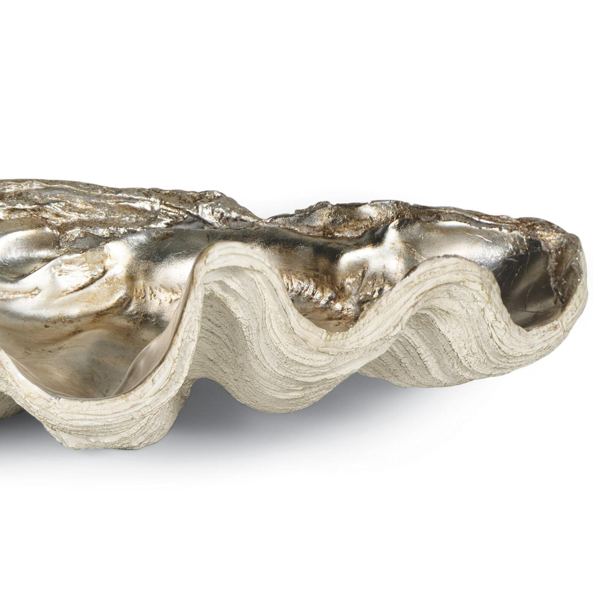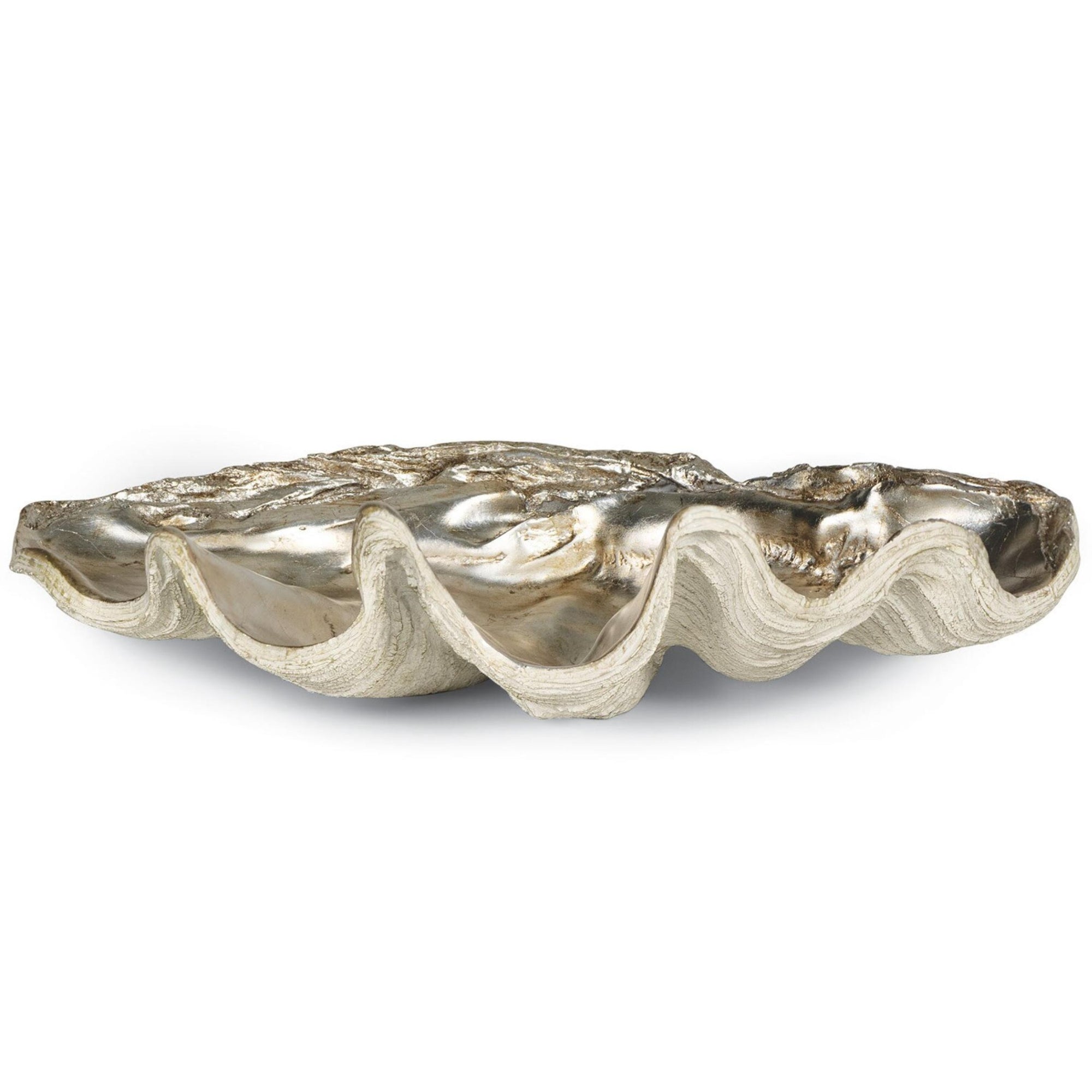 The Clam Shell Large Bowl combines natural elegance with striking design. Inspired by the graceful form of a clamshell, its ambered silver leaf interior highlights intricate detailing, capturing the serene beauty of the coast. Perfect as a statement piece or functional bowl, it adds texture and charm to a sideboard, coffee table, or console, bringing a touch of shoreline sophistication to any living space.