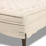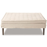 A design collaboration by Amber Lewis and Four Hands.This European vintage-inspired ottoman brings quiet luxury to any space. Featuring a skirted French mattress style cushion with subtle tufting and S-spring suspension, it provides both comfort and versatility. Oversized, it can function as a coffee table or extra seating, elevating the rooms style and functionality.