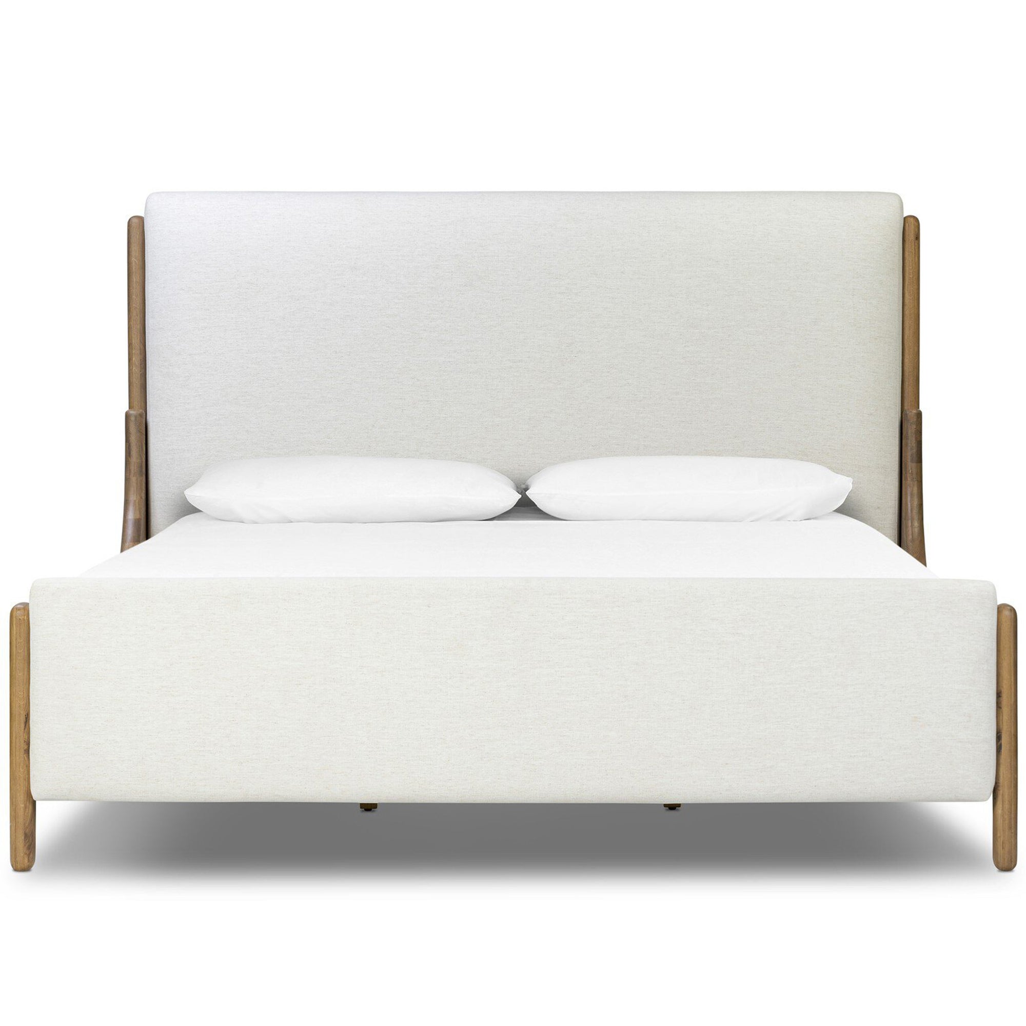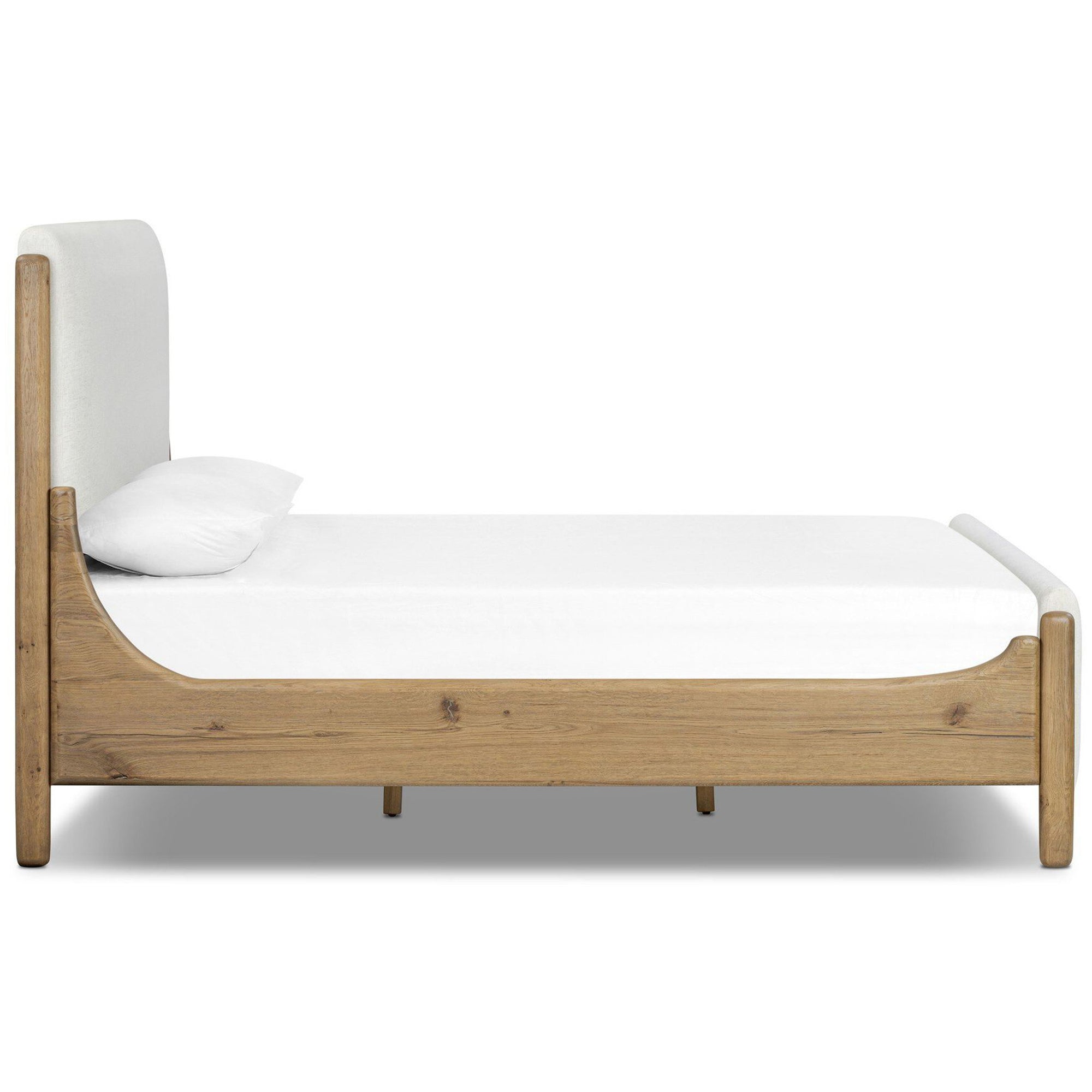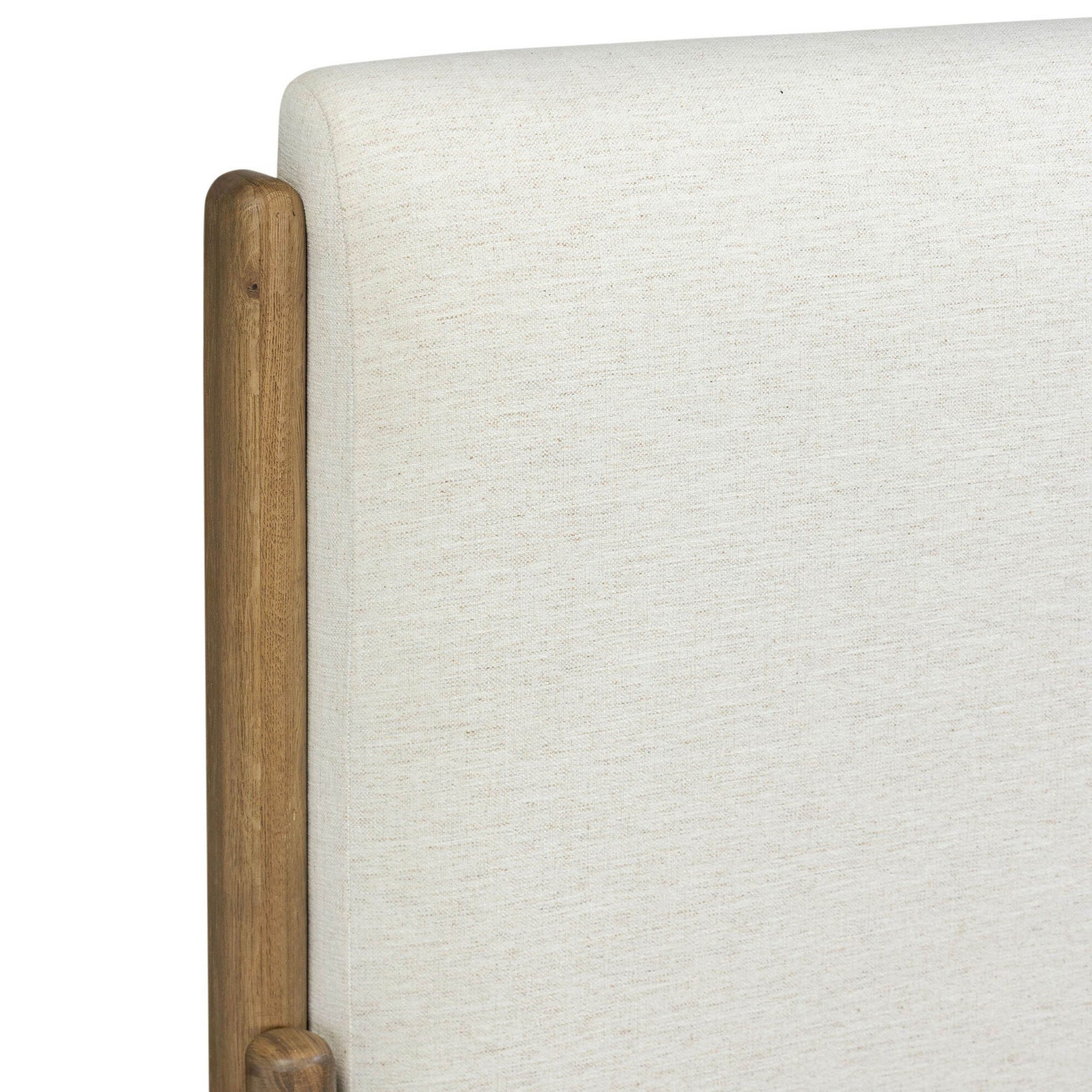 The Savall Bed blends contemporary sleigh bed design with tailored upholstery for a refined, livable look. A warm, rustic oak frame with gently curved corners softens the silhouette while providing durable support. Compatible with standard mattresses, this bed features a slatted base and reinforced construction for long-lasting comfort and style.