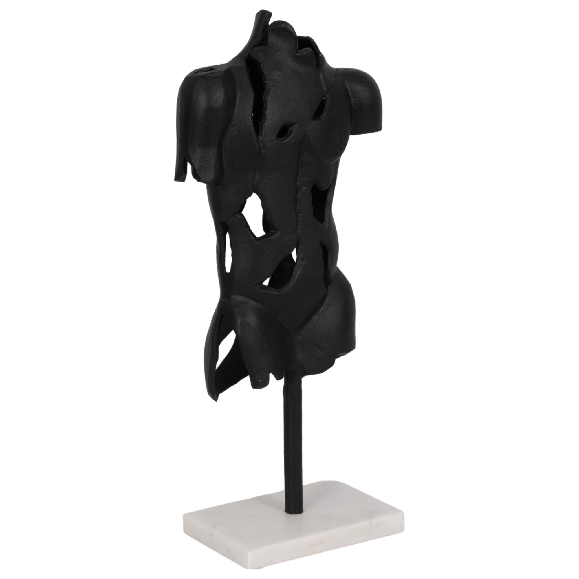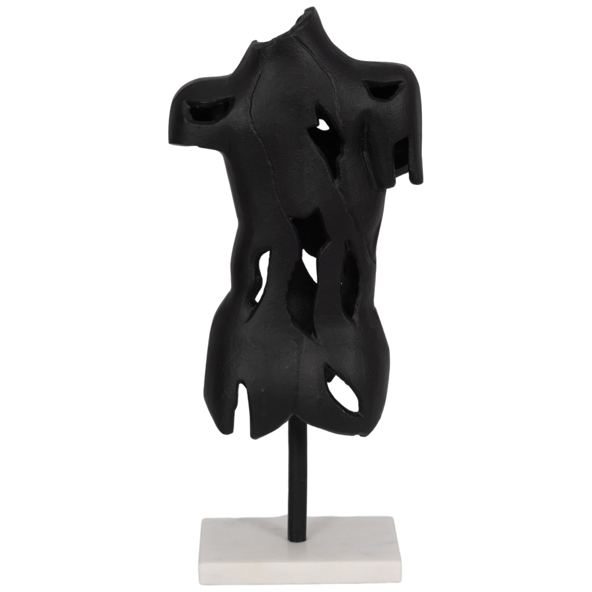 The Cracked Bust on Stand is a striking modern sculpture that fuses artistry with sophistication. Crafted from high-quality aluminum, its abstract torso form features intricate cut-out details that create depth and visual intrigue. Finished in sleek black, the design is elevated by a sturdy white marble base, offering a bold contrast that enhances its contemporary appeal. Perfect for display on consoles, shelves, or pedestals, this unique piece brings a refined edge to minimalist, modern, and glam-inspired interiors.