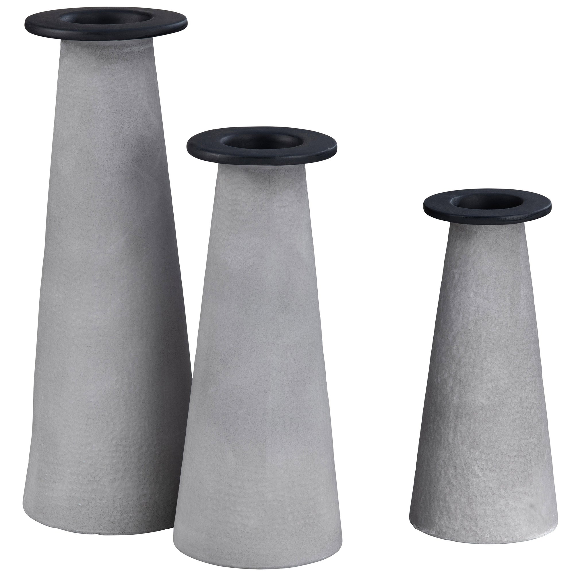 Crosby Column Vases/Candleholders, Grey, Set of 3