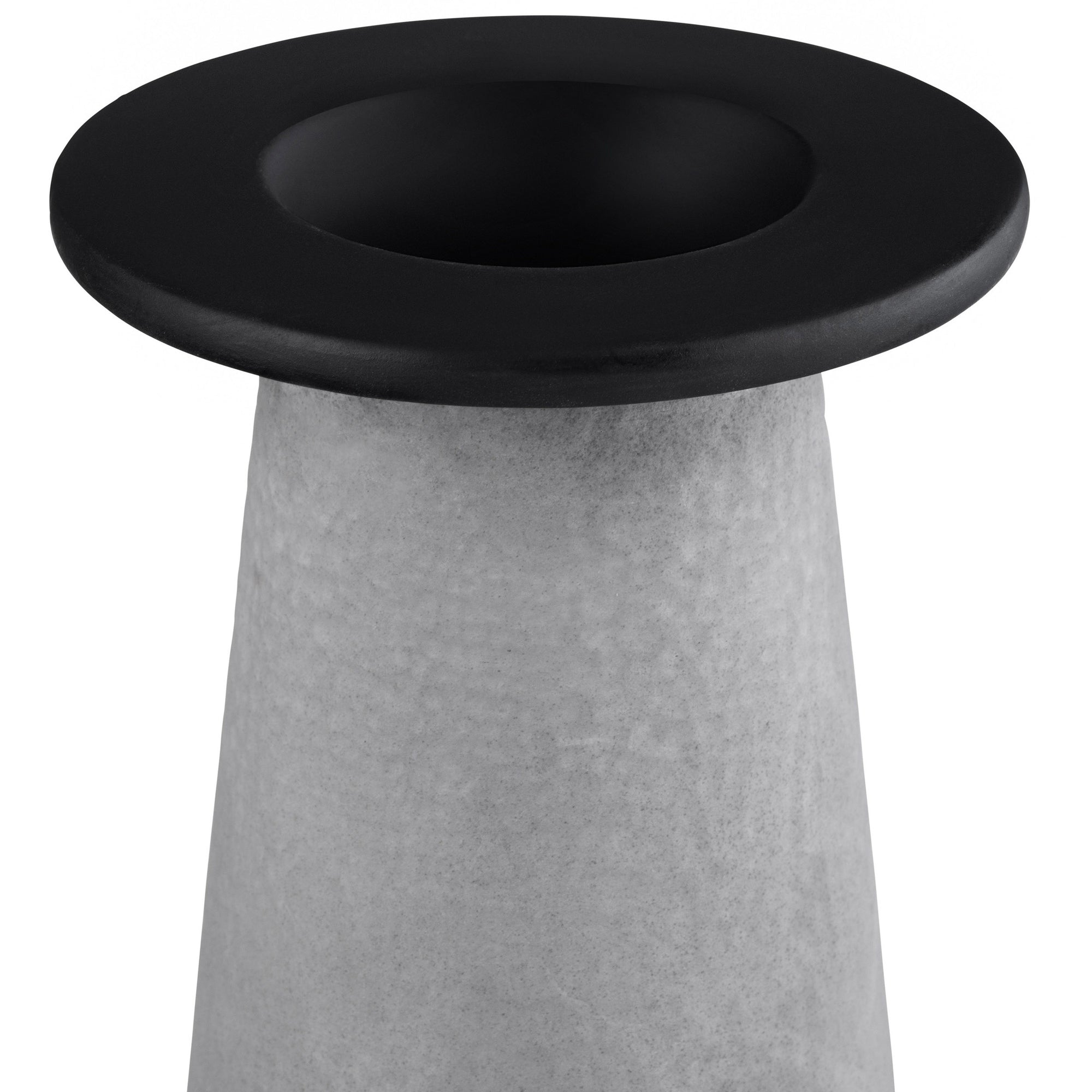 The Crosby Column Vases/Candleholders feature a sleek ceramic design in a grey finish. Perfect for displaying flowers or holding candles, these versatile pieces add a transitional and stylish accent to any tabletop or mantel.