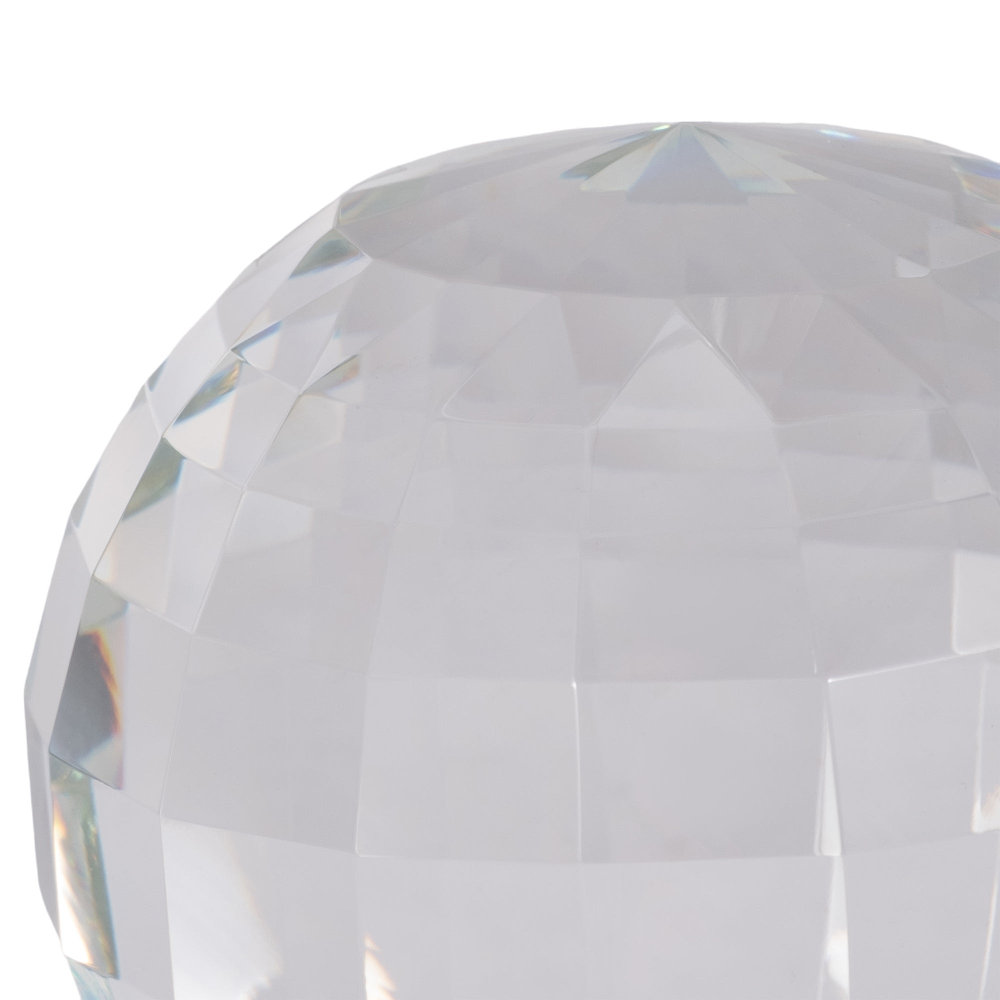 Radiant and refined, the Crystal Orb is a dazzling accent that captures light from every angle. Its faceted surface creates a stunning prism effect, scattering brilliance and depth throughout your space. Perfect as a decorative statement on a coffee table, bookshelf, or desk, this orb embodies both elegance and modern charm. A symbol of clarity and harmony, it brings a touch of sophistication while reflecting timeless beauty in any setting.