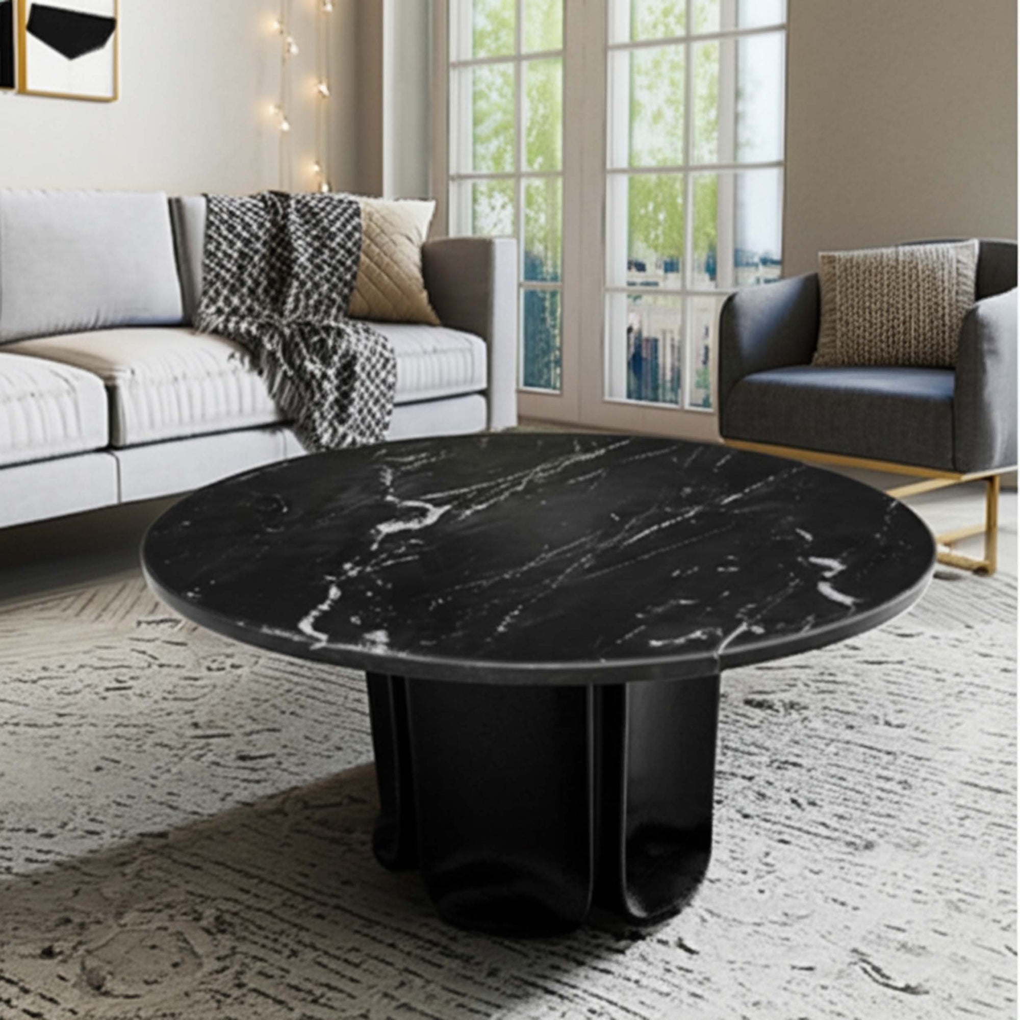 The Curved Base Marble Top Coffee Table is a sophisticated centerpiece that blends modern design with lasting durability. Featuring a striking black-and-white marble and stone top, it adds elegance and visual interest to any living space. The durable black aluminum and metal base provides sturdy support while complementing the table’s contemporary aesthetic. Perfect for holding drinks, décor, or everyday essentials, this coffee table balances functionality with refined style. Its sleek design and bold marble pattern make it an ideal addition to modern, minimalist, or transitional interiors, creating a statement piece that elevates your home décor with both beauty and practicality.