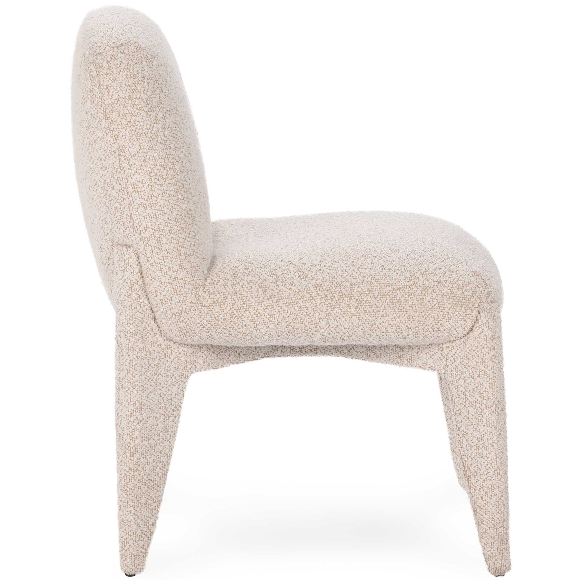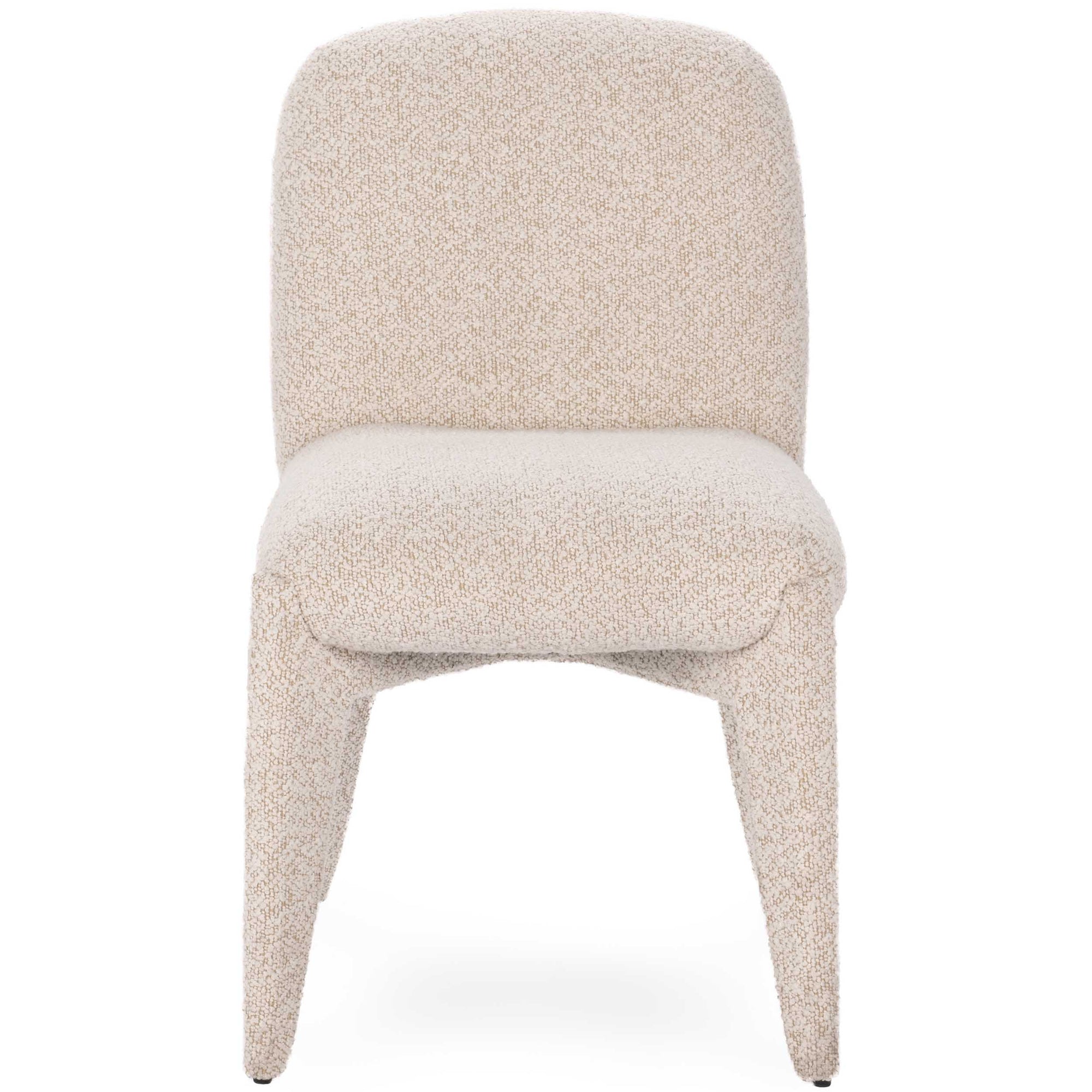 The Danson Dining Chair in Fallow Ivory brings a refined, modern touch to your dining space. Its sleek silhouette features smooth lines, padded seating, and angled legs for a contemporary look. Upholstered in premium 100% polyester fabric with a high rub count for durability, this set of two chairs combines timeless style with everyday comfort.