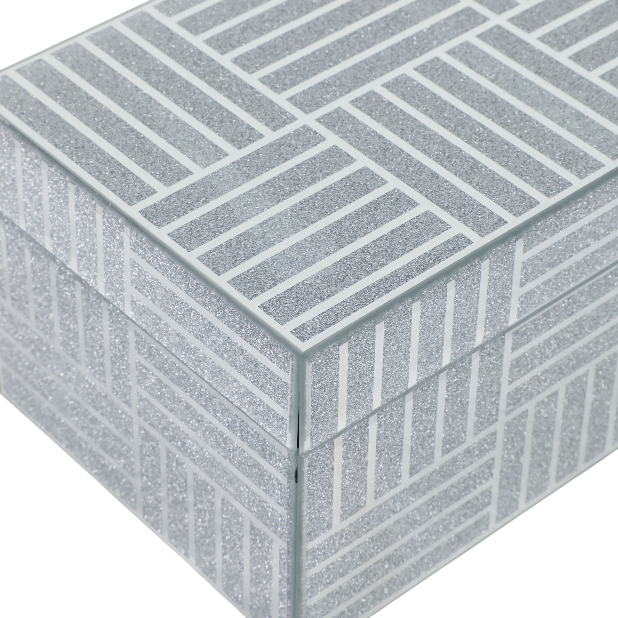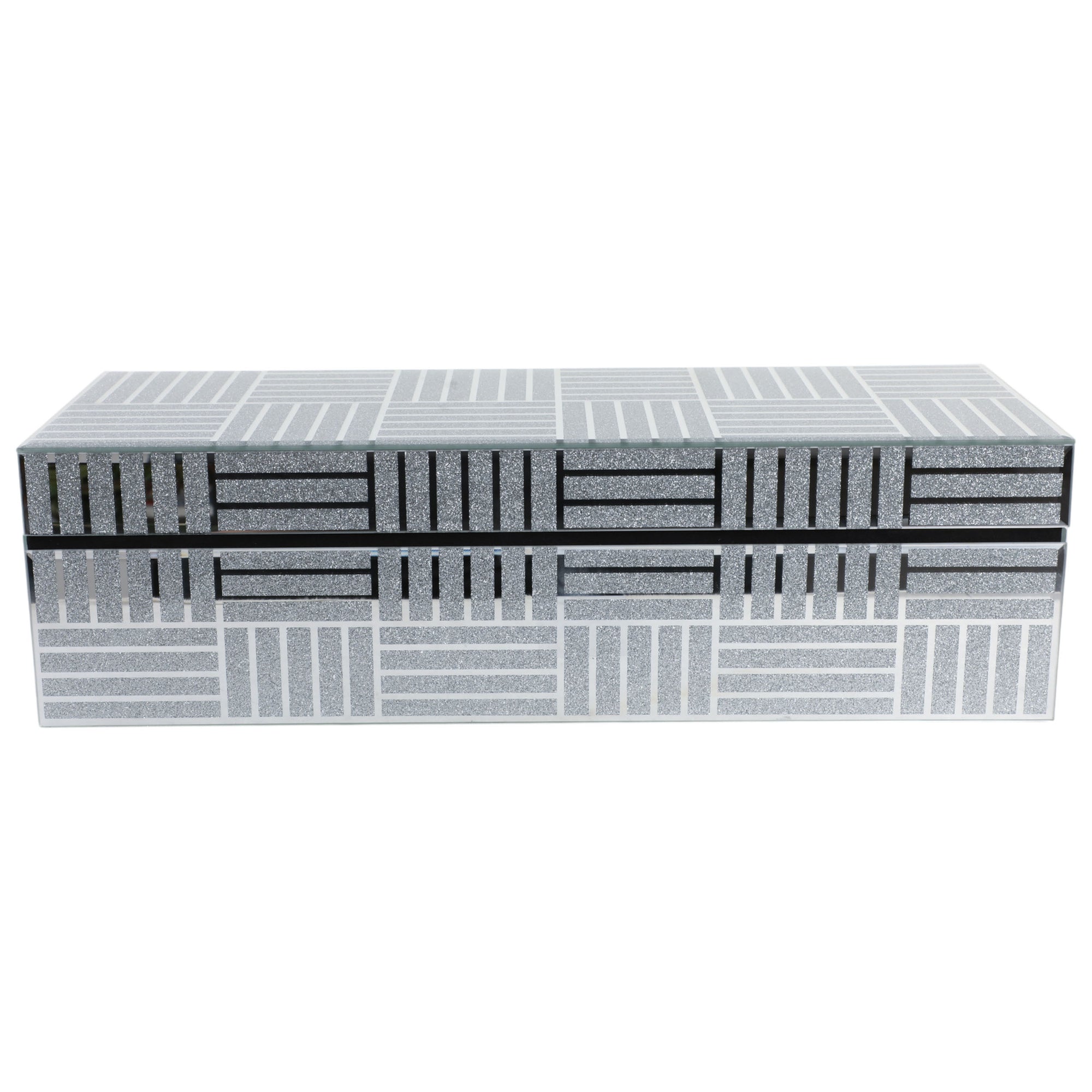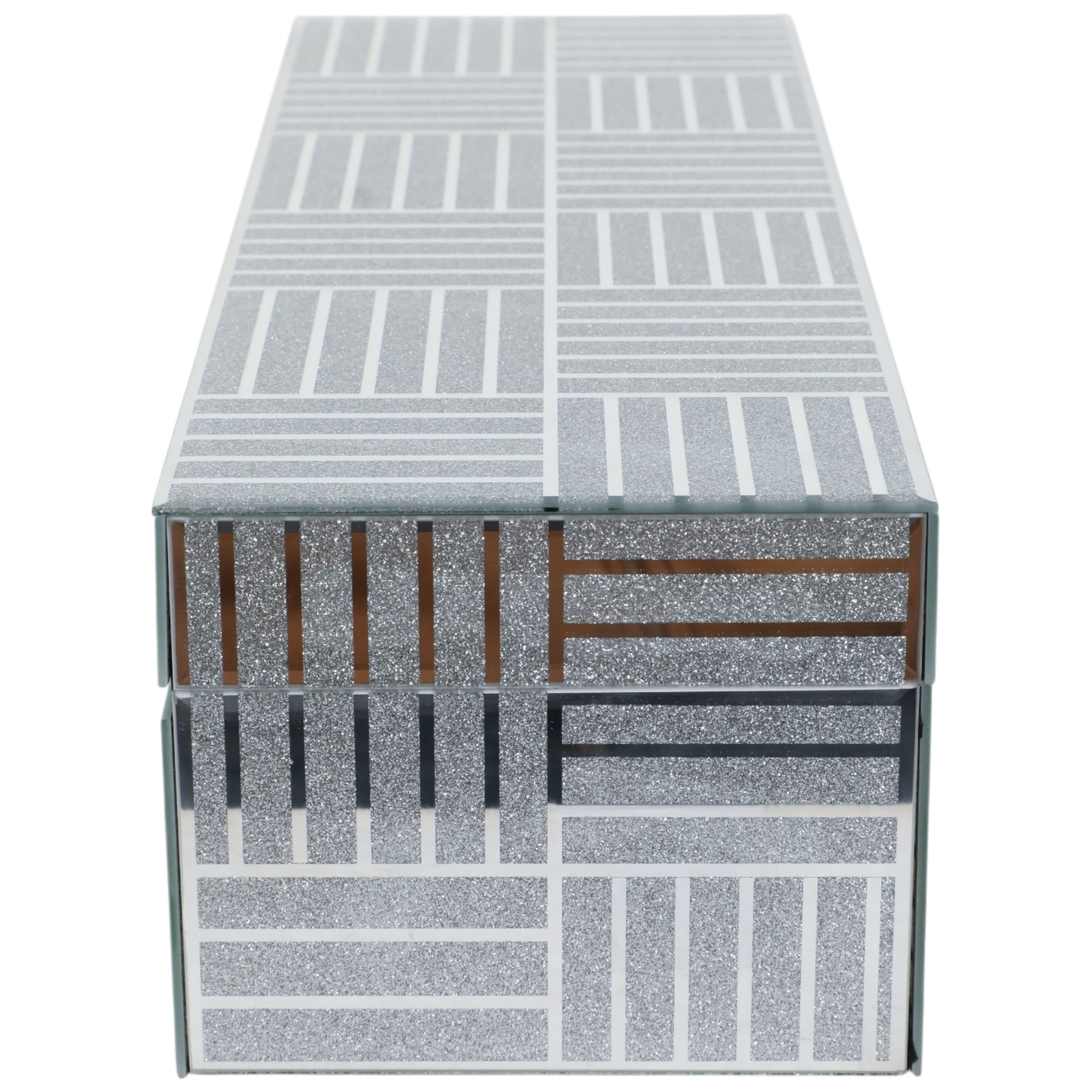 Sleek, modern, and artfully detailed, the Dashes Glass Box brings subtle sophistication to your space. Its clean rectangular form is adorned with a striking geometric dash pattern, creating a mesmerizing play of texture and reflection across its mirrored surface. Perfect for storing keepsakes, jewelry, or small treasures, this box balances functionality with design-forward elegance. Whether displayed on a vanity, console, or coffee table, it adds a refined shimmer and contemporary edge to any setting.