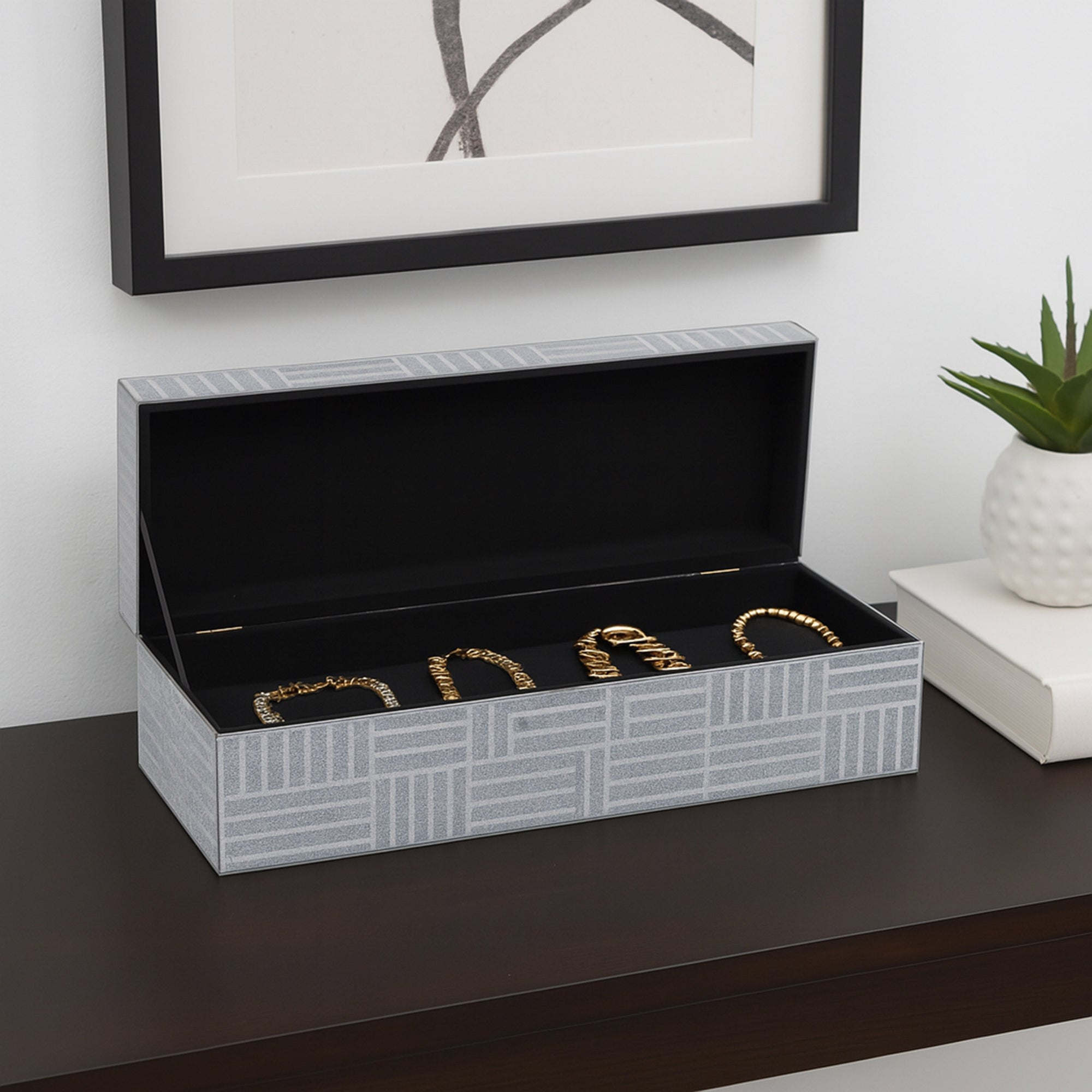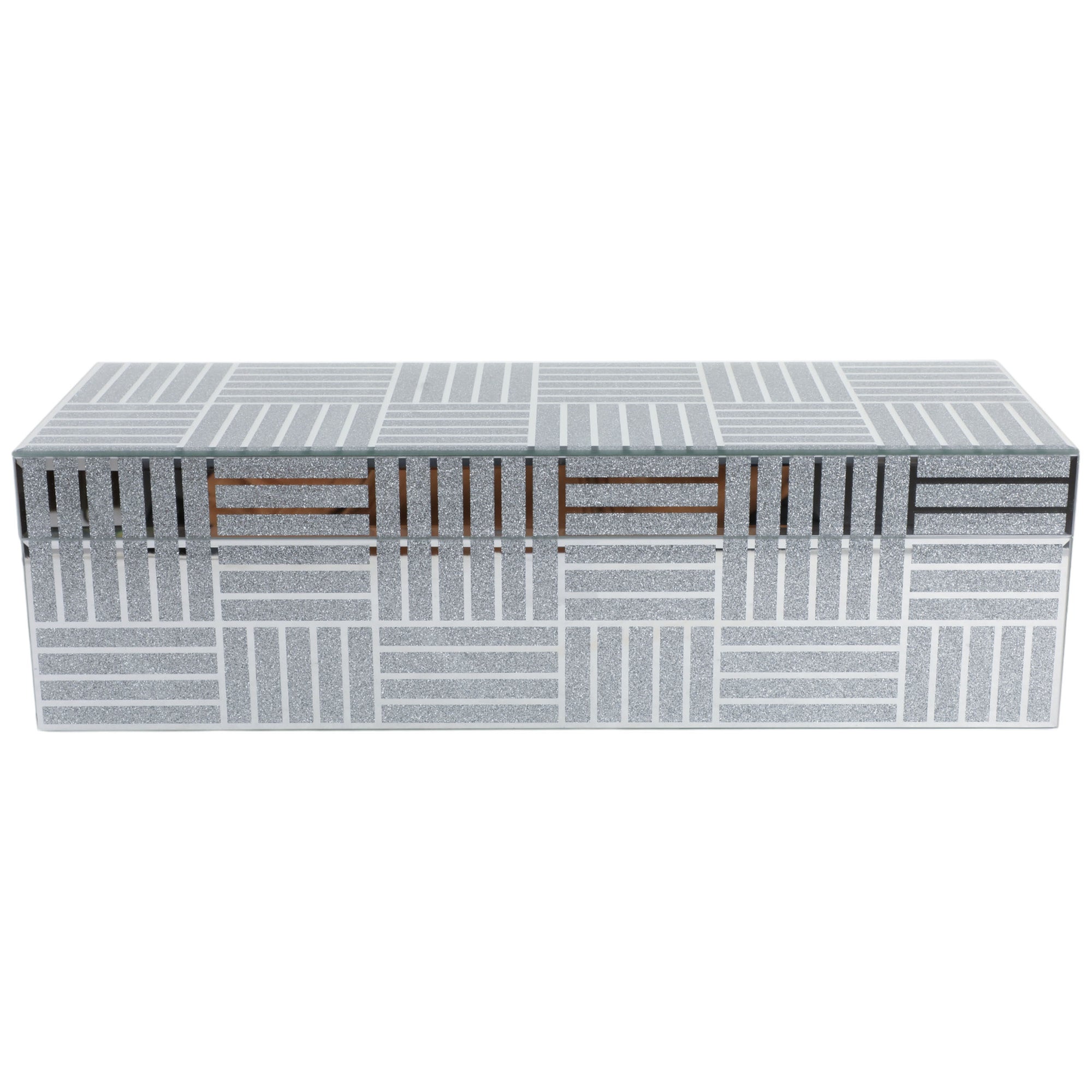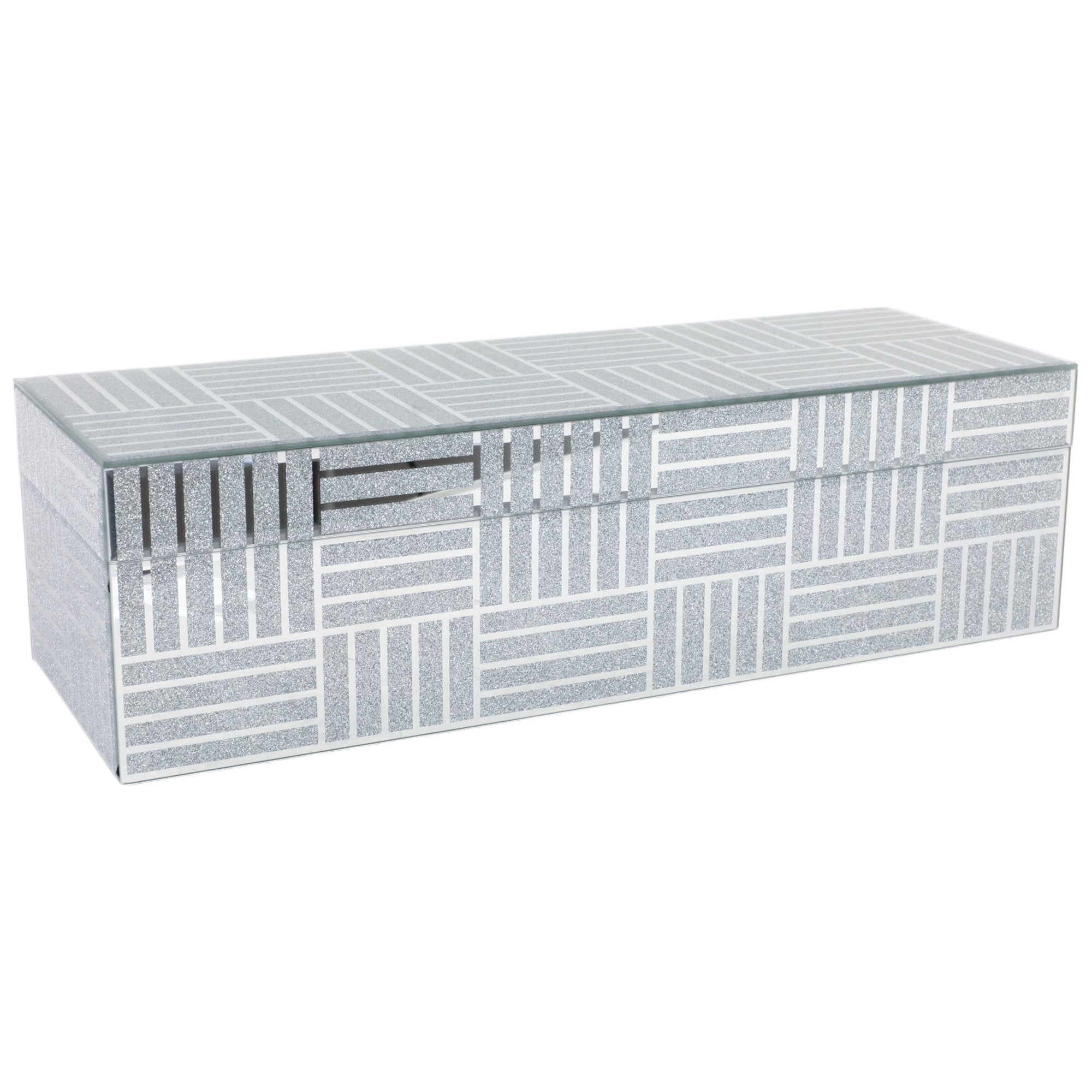 Sleek, modern, and artfully detailed, the Dashes Glass Box brings subtle sophistication to your space. Its clean rectangular form is adorned with a striking geometric dash pattern, creating a mesmerizing play of texture and reflection across its mirrored surface. Perfect for storing keepsakes, jewelry, or small treasures, this box balances functionality with design-forward elegance. Whether displayed on a vanity, console, or coffee table, it adds a refined shimmer and contemporary edge to any setting.