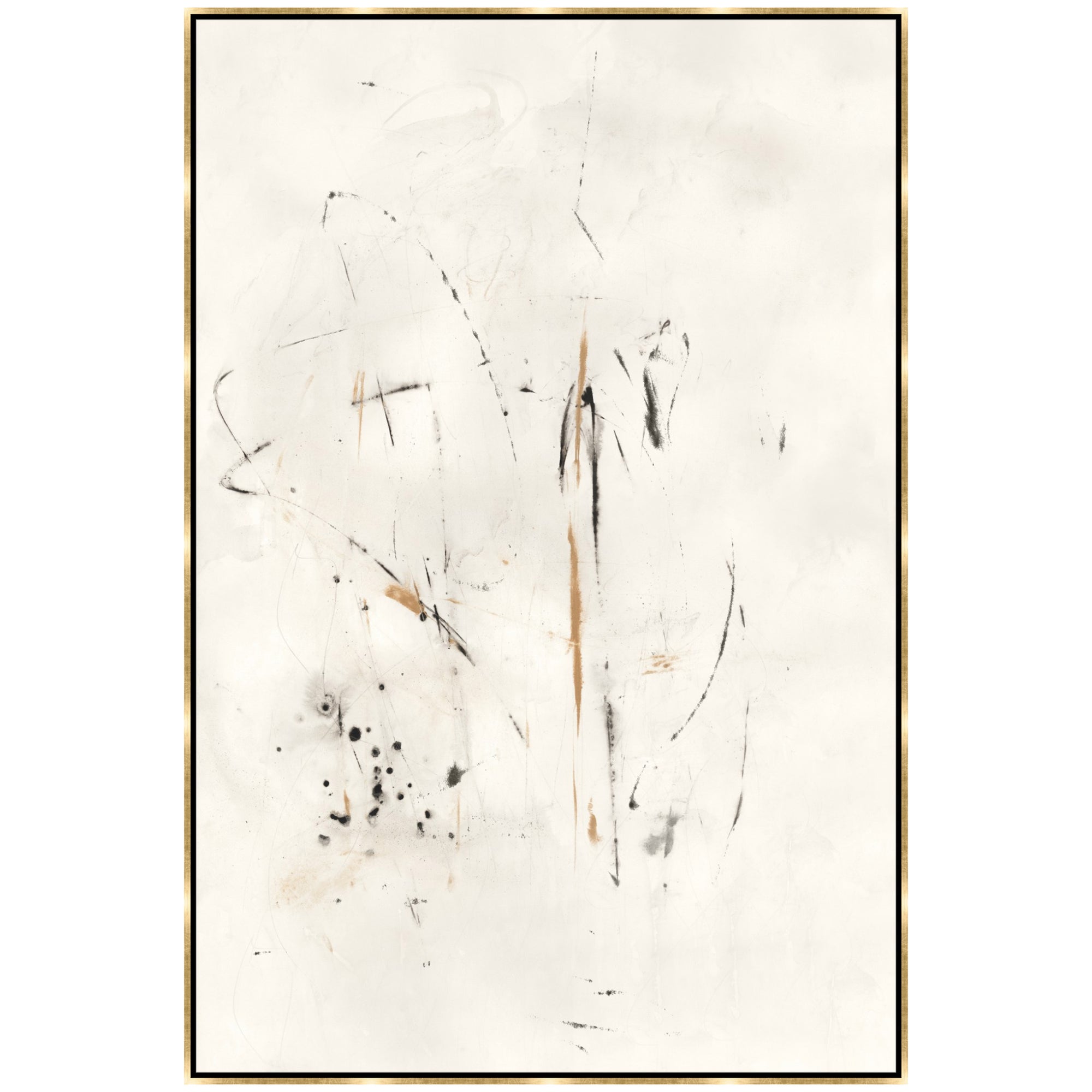 The Dear II Framed artwork by Van Garret is a compelling and richly textured abstract piece. The composition features sweeping, expressive brushstrokes in a serene palette of soft greens and purples, beautifully contrasted by shimmering gold embellishments. This dynamic yet calming artwork provides a luxurious and artistic focal point, lending a sophisticated sense of contemporary design to any space.