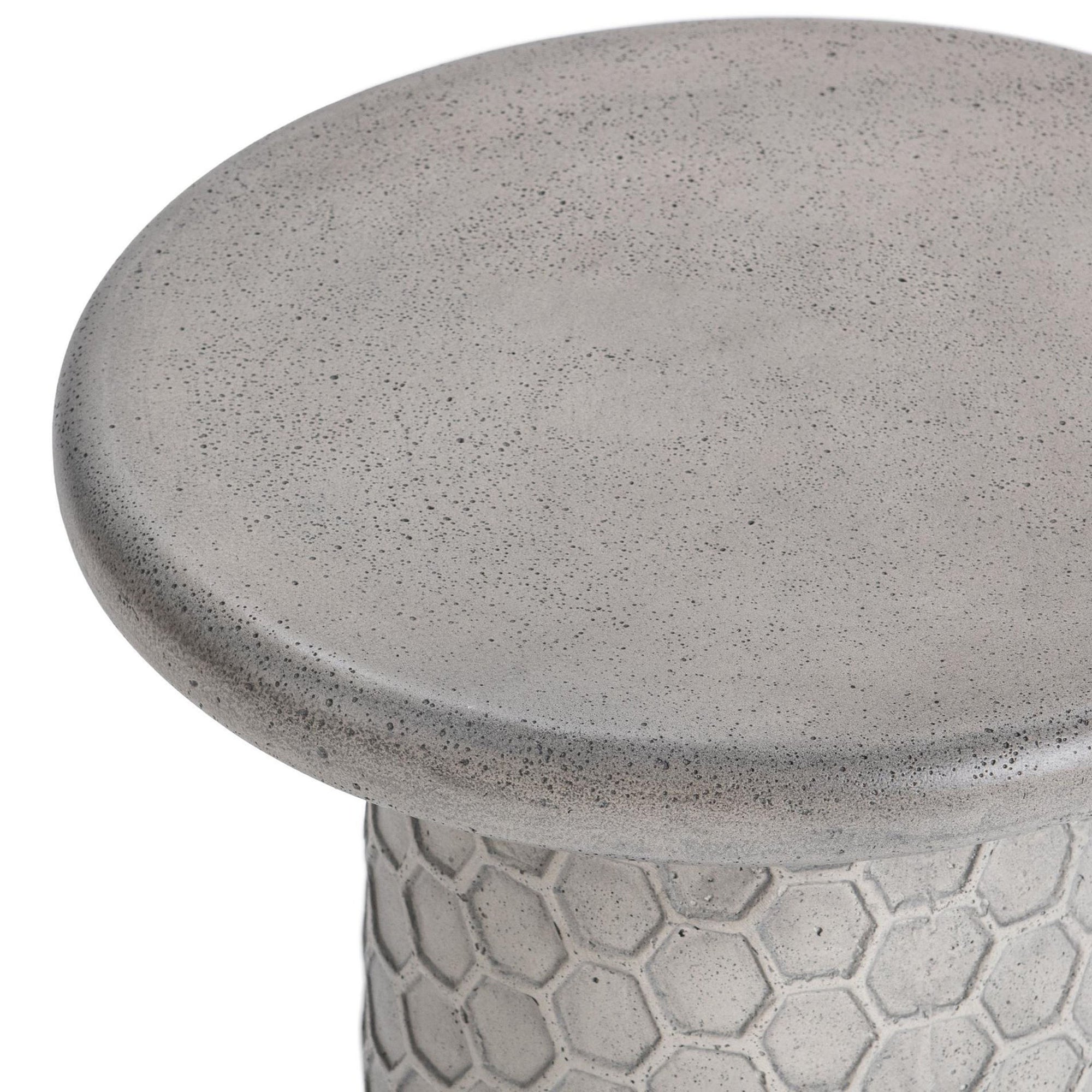 The Delaine Outdoor Accent Table is sculptural and striking, crafted from durable materials for durability and style. The honeycomb-textured base adds bold dimension, while the smooth round top offers the perfect surface for cocktails, candles, or décor. Designed to withstand the elements, it blends functionality with artistry.