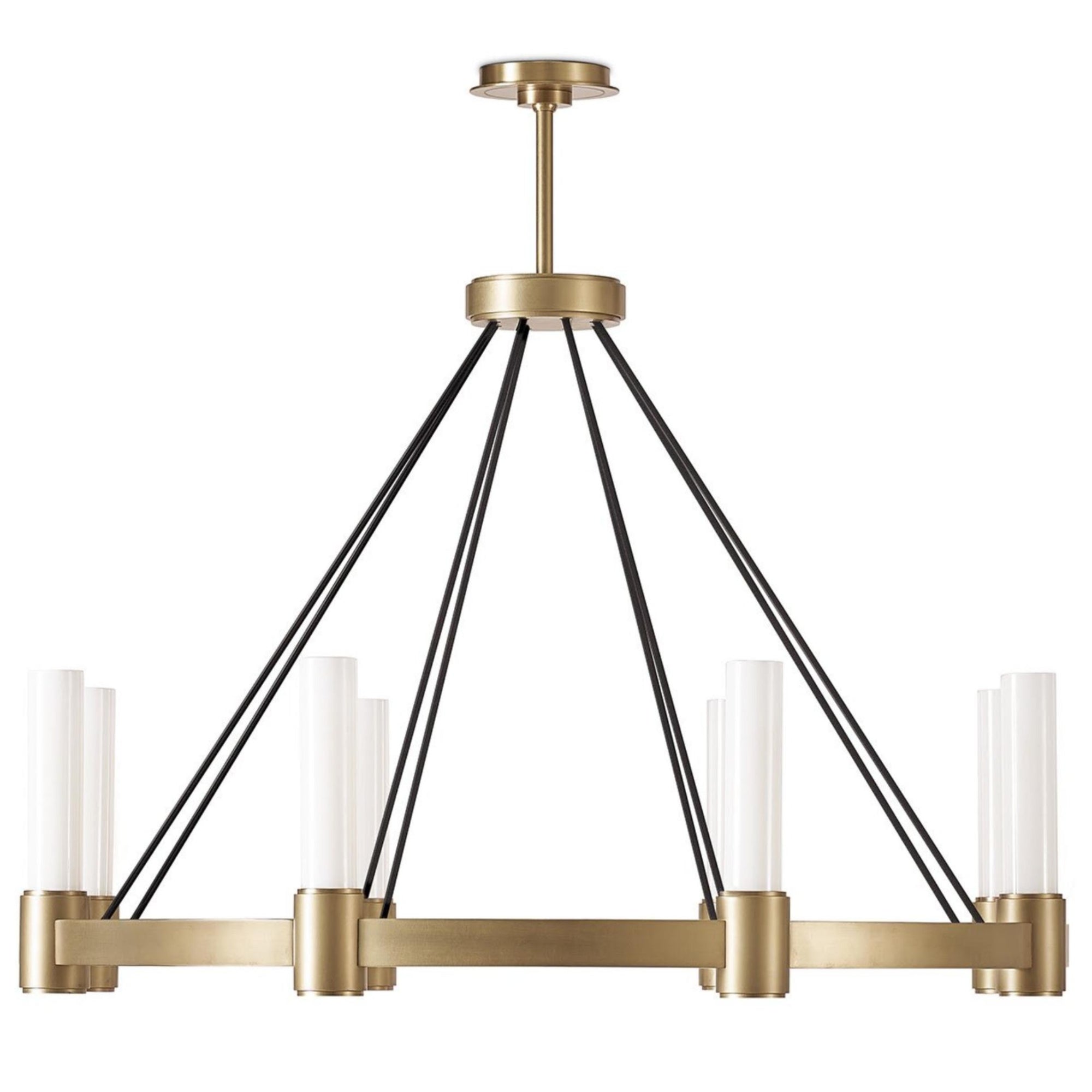 The Dixon Chandelier exudes understated strength and modern elegance. Its eight opal white glass pillars are held aloft in sleek arms, with each cylinder open at both ends to cast light upward and downward, creating a balanced, luminous glow. Simple yet striking, this chandelier makes a sophisticated statement in dining rooms, while also adding bold style to kitchens or open-concept spaces. With its clean lines and versatile design, the Dixon Chandelier combines functionality and timeless beauty in one refined centerpiece.