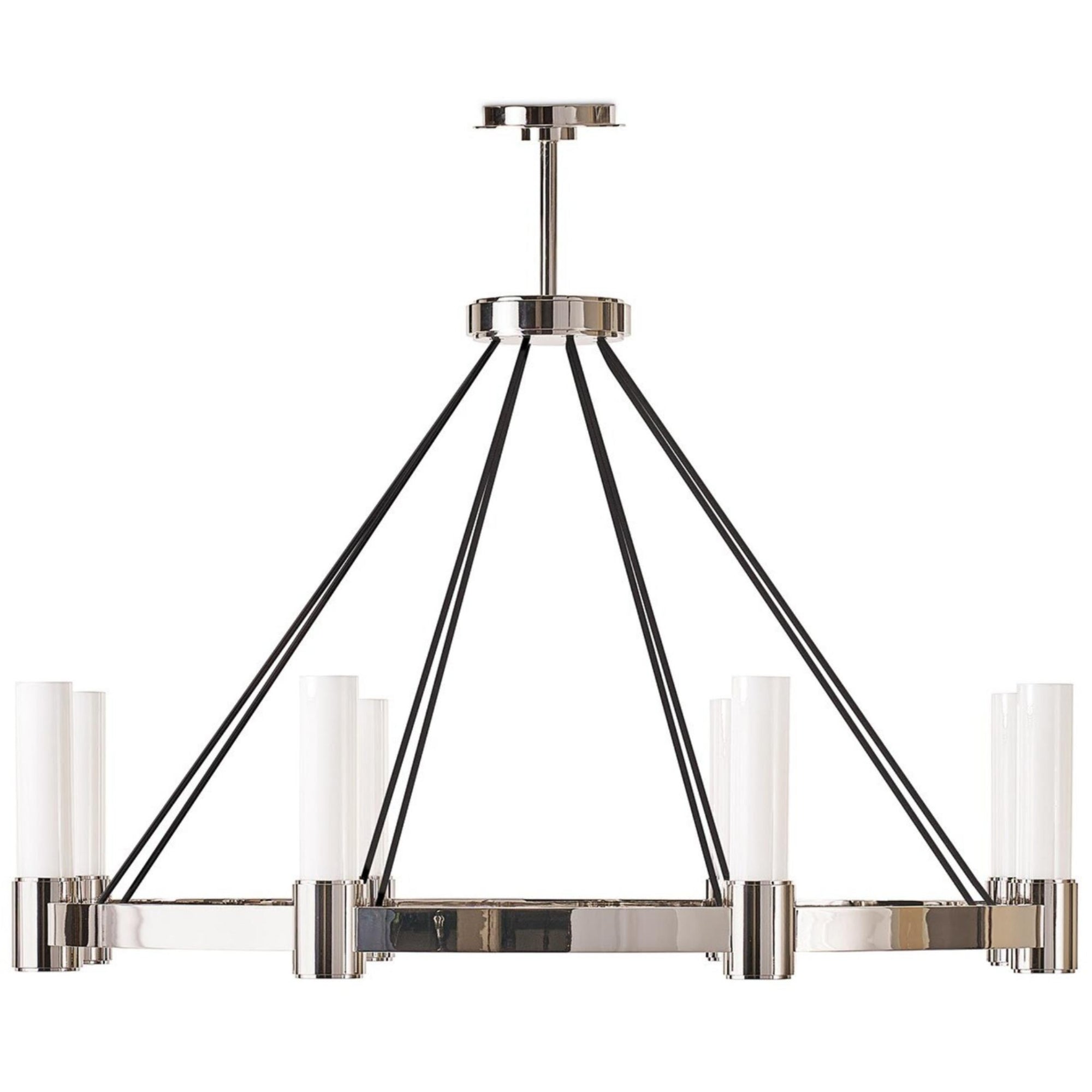 The Dixon Chandelier exudes understated strength and modern elegance. Its eight opal white glass pillars are held aloft in sleek arms, with each cylinder open at both ends to cast light upward and downward, creating a balanced, luminous glow. Simple yet striking, this chandelier makes a sophisticated statement in dining rooms, while also adding bold style to kitchens or open-concept spaces. With its clean lines and versatile design, the Dixon Chandelier combines functionality and timeless beauty in one refined centerpiece.