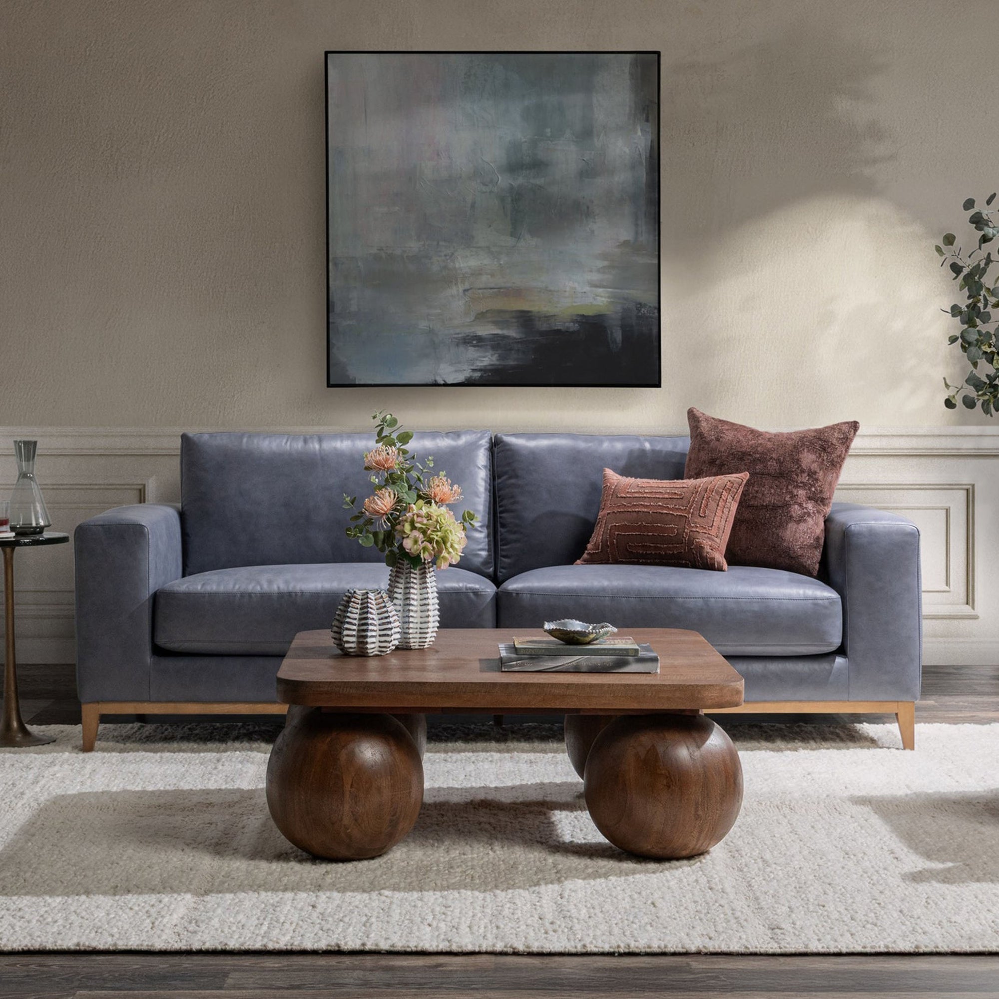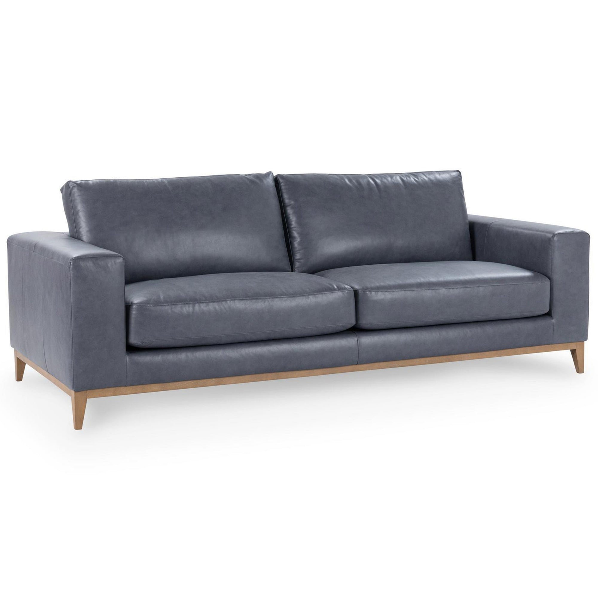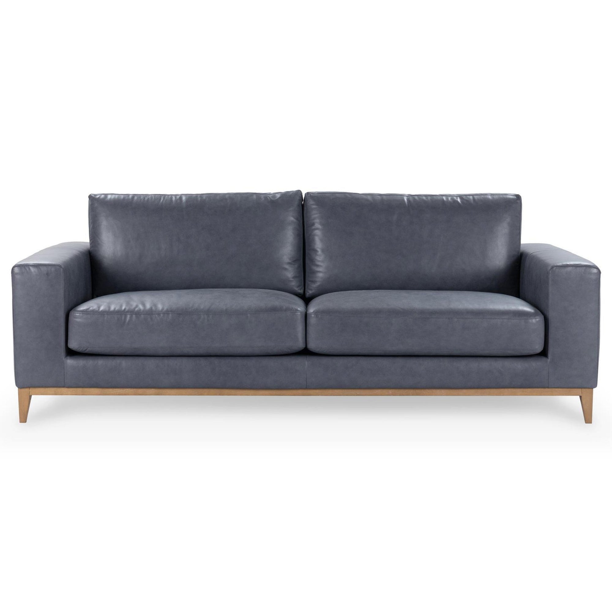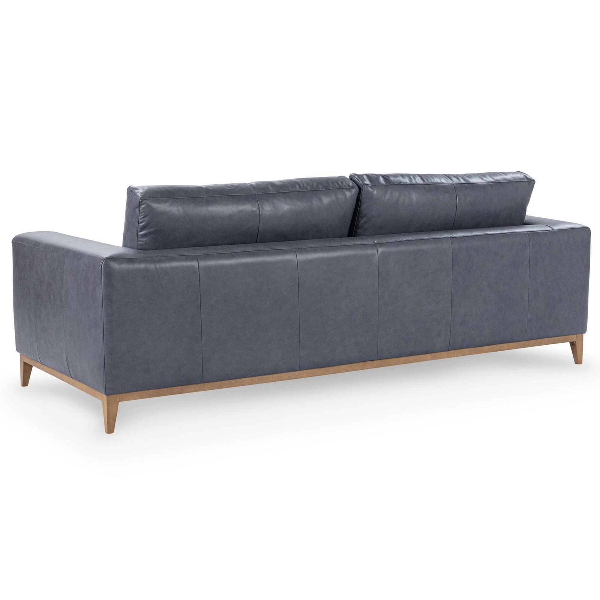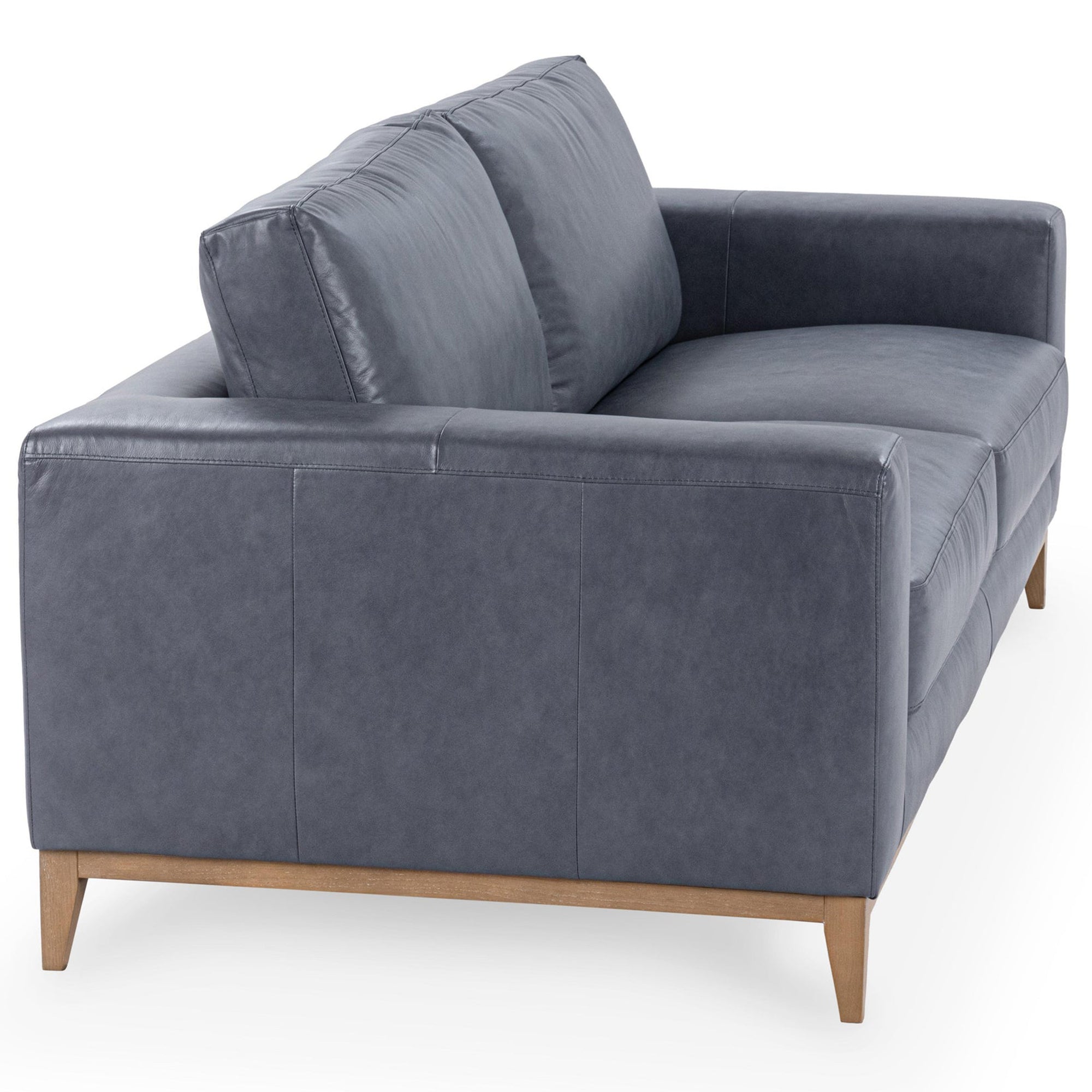 The Donovan Leather Sofa blends mid-century modern design with everyday comfort. Upholstered in premium top grain leather, it showcases clean lines, tapered wood legs, and plush cushions. The durable construction and sleek silhouette make it a standout piece, perfect for a contemporary, retro, or minimalist living room.