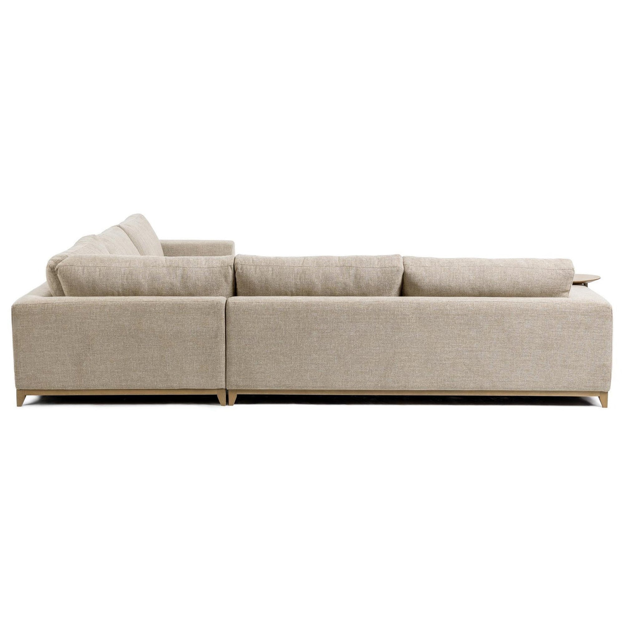 The Donovan Sectional transforms your living space, combining plush comfort and refined design. Upholstered in soft, durable fabric, it offers deep seating perfect for family gatherings. The wood base adds a warm, natural accent, while the built-in side table brings effortless convenience. Its modern silhouette and inviting texture make it the ultimate centerpiece for contemporary, cozy living.