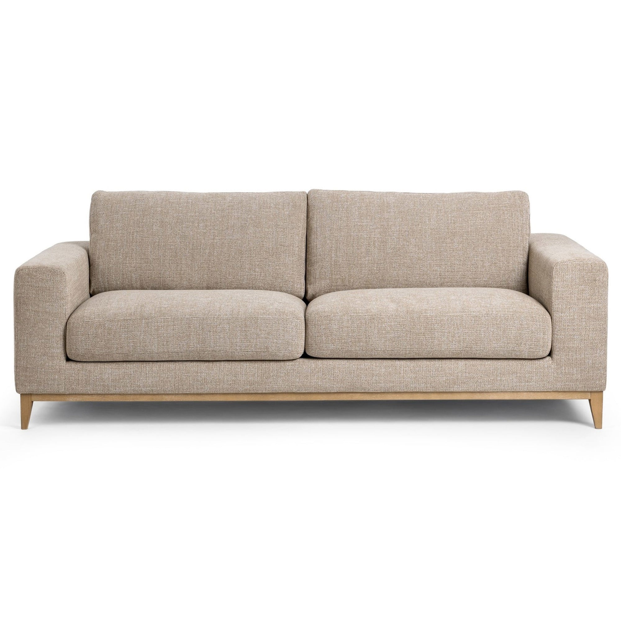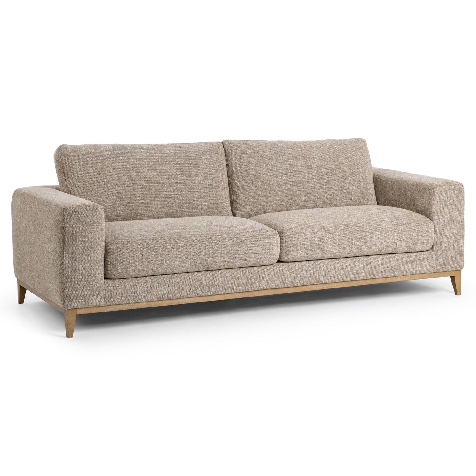 The Donovan Sofa elevates your living room, where comfort meets sophistication. Wrapped in soft, durable polyester, it offers a plush seating experience perfect for relaxing or entertaining guests. The sleek wood base adds warmth and natural charm, grounding its clean-lined silhouette. Ideal for contemporary or transitional spaces, this sofa invites effortless elegance and timeless comfort into your home.