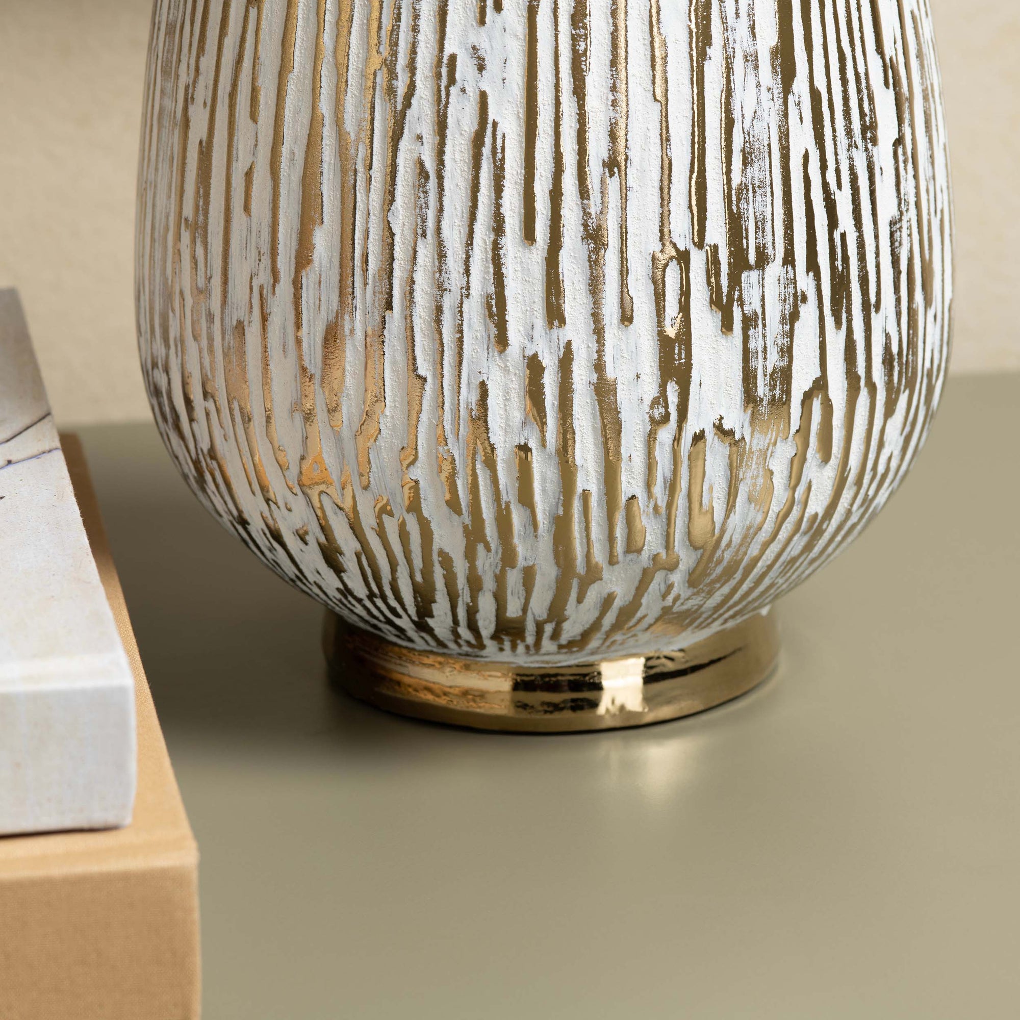 The Dozier Vases are contemporary-style ceramic vases with a sleek gold finish. Perfect for displaying flowers or as standalone decorative accents, they bring elegance and modern sophistication to any tabletop, shelf, or console.